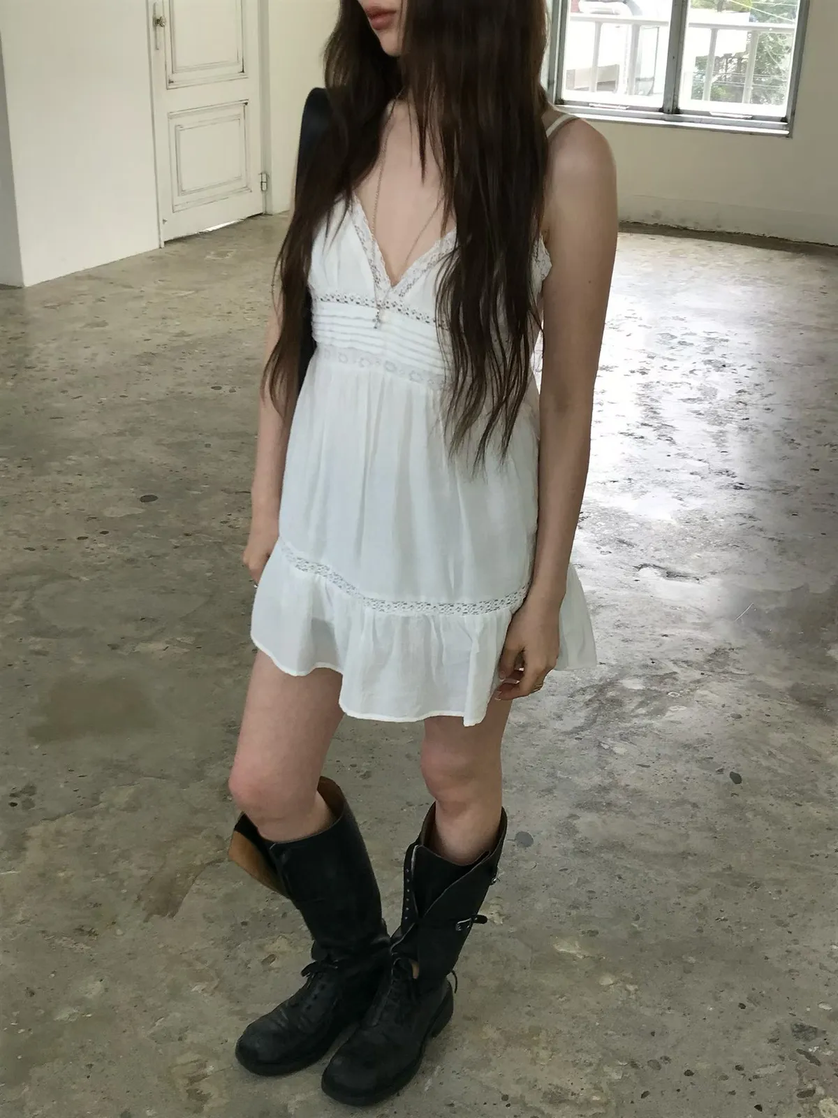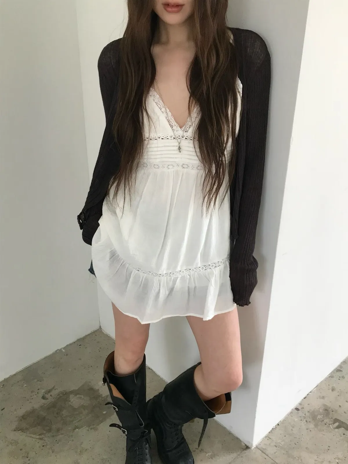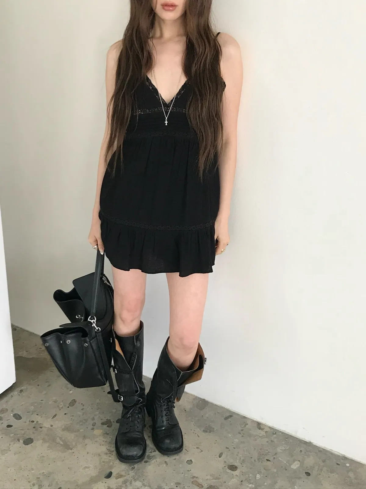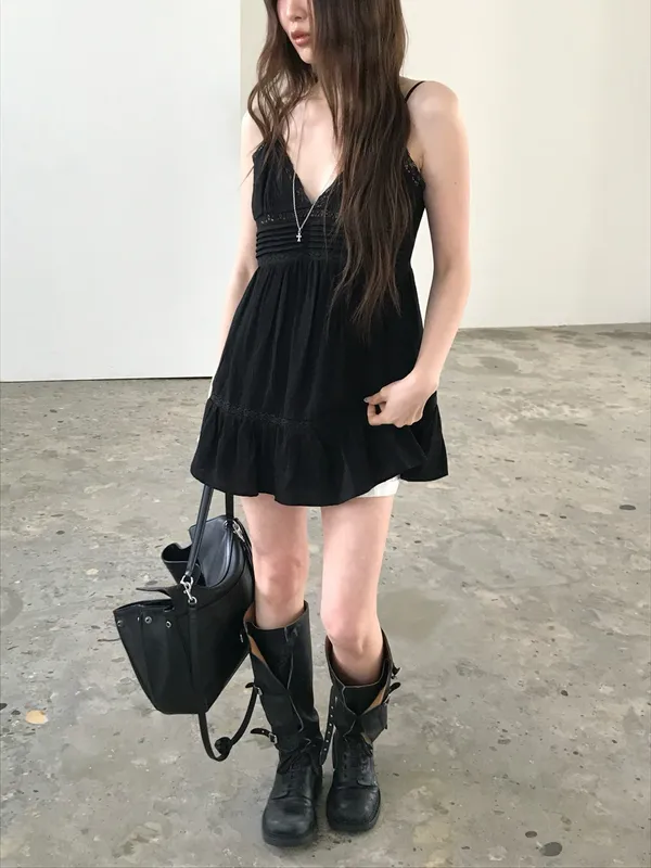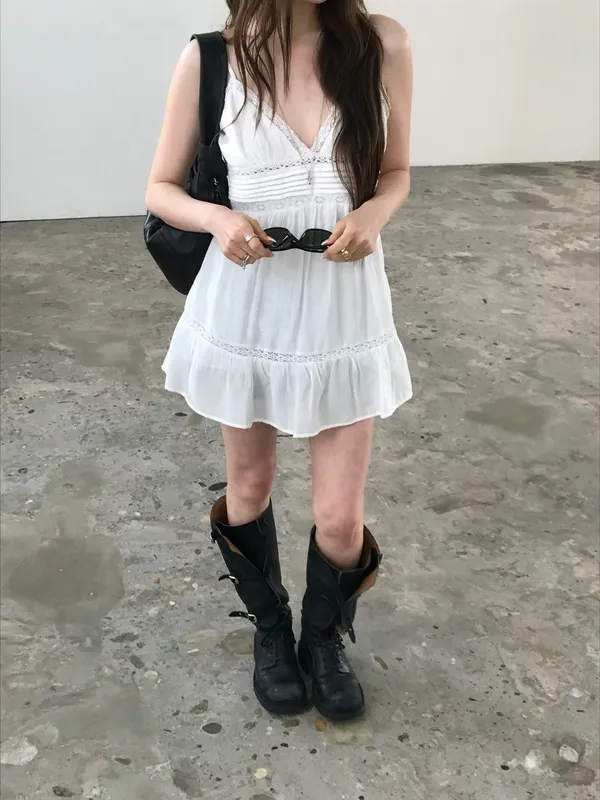 26EJ01 必買)桃心V領蕾絲背心短洋裝 2色