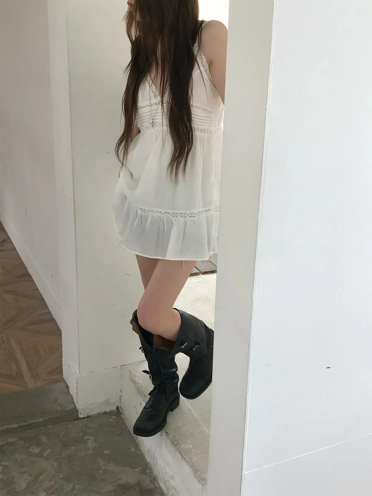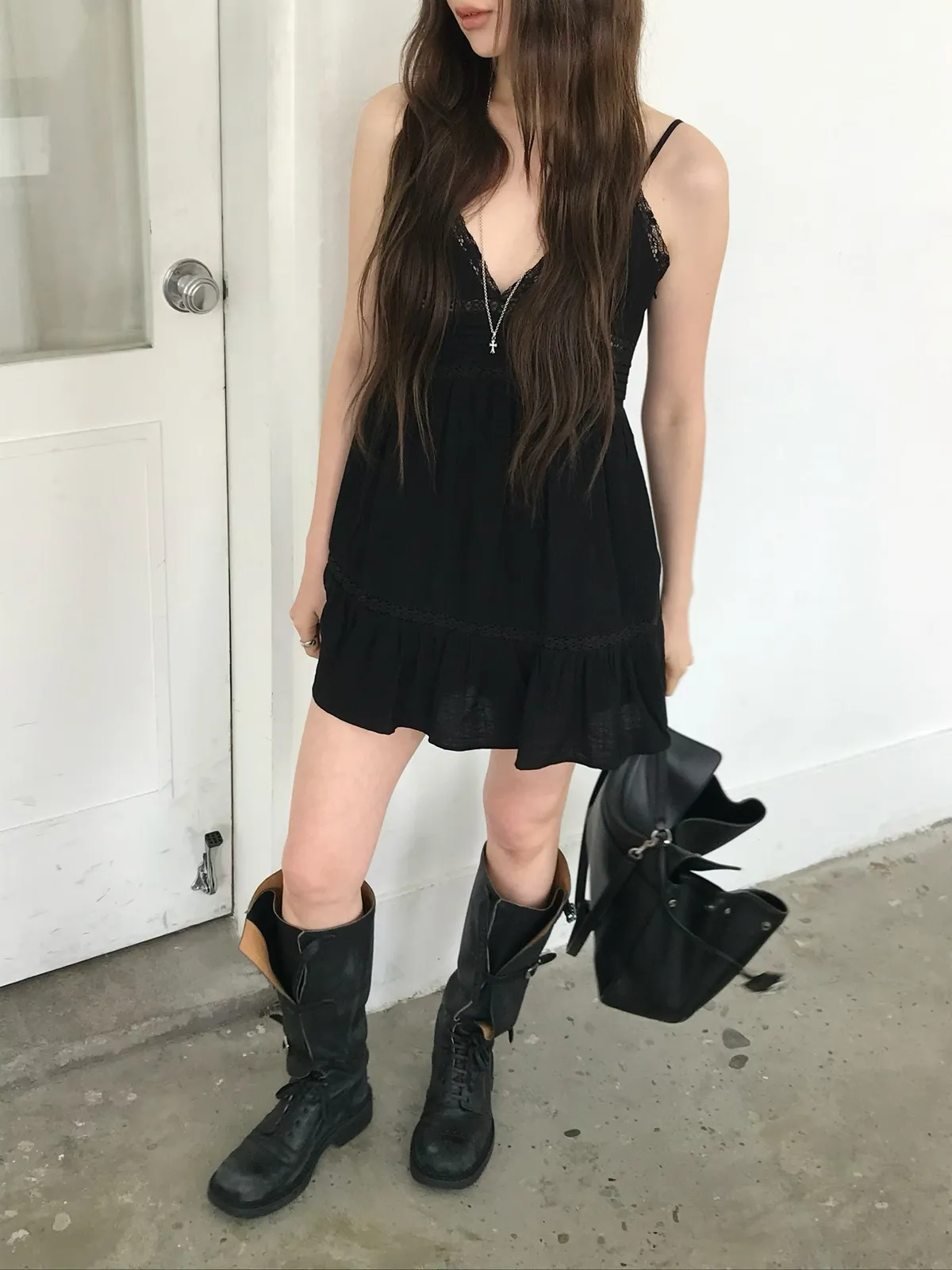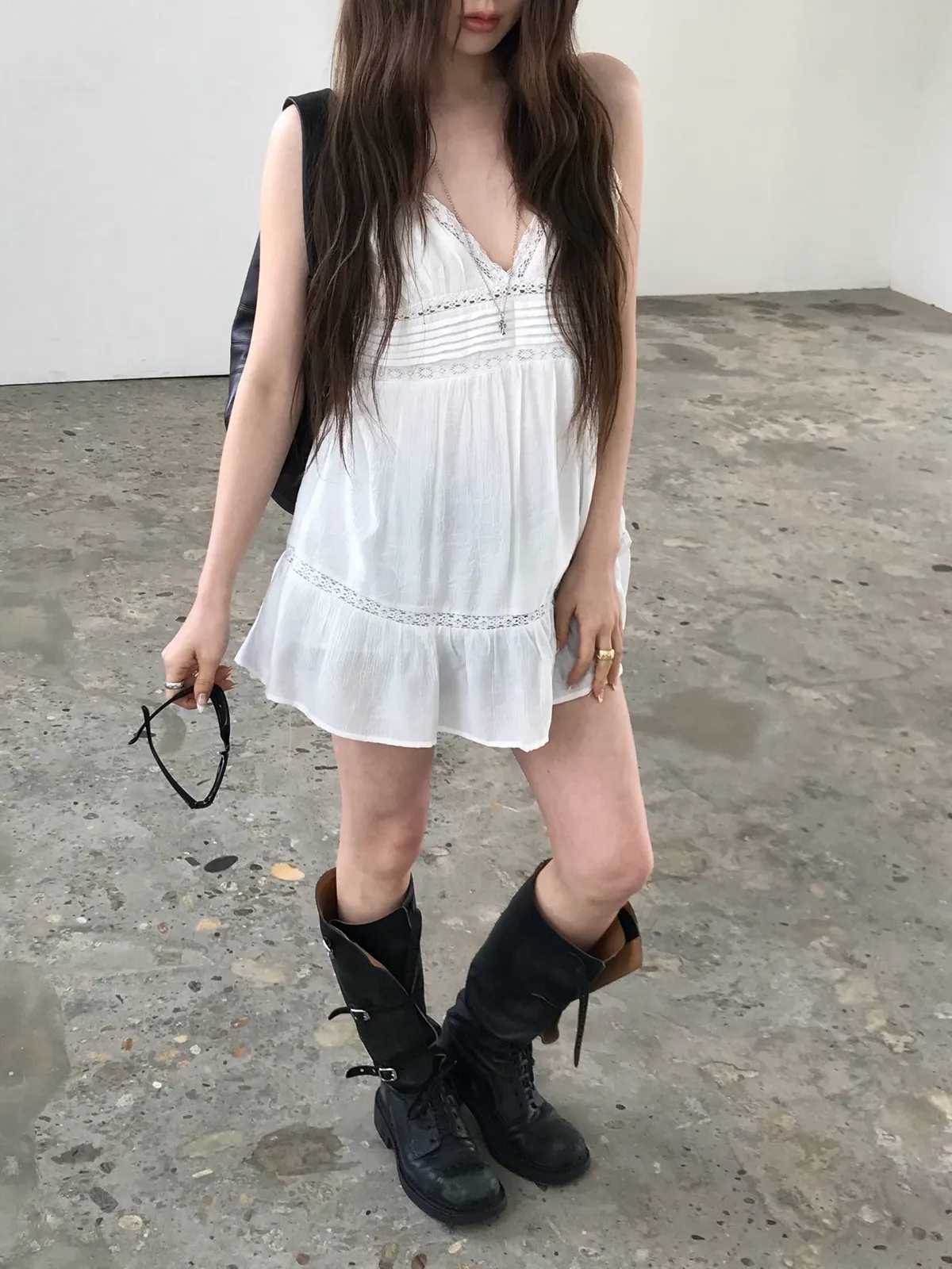 26EJ01 必買)桃心V領蕾絲背心短洋裝 2色