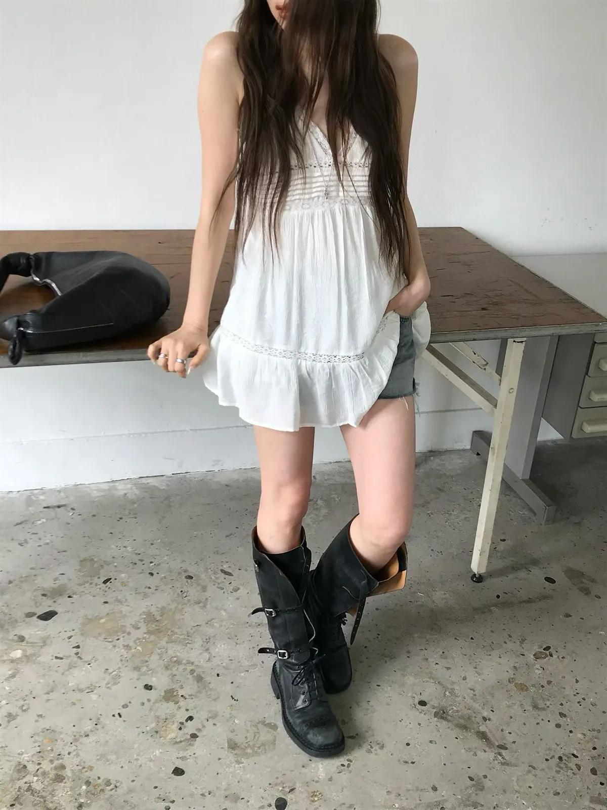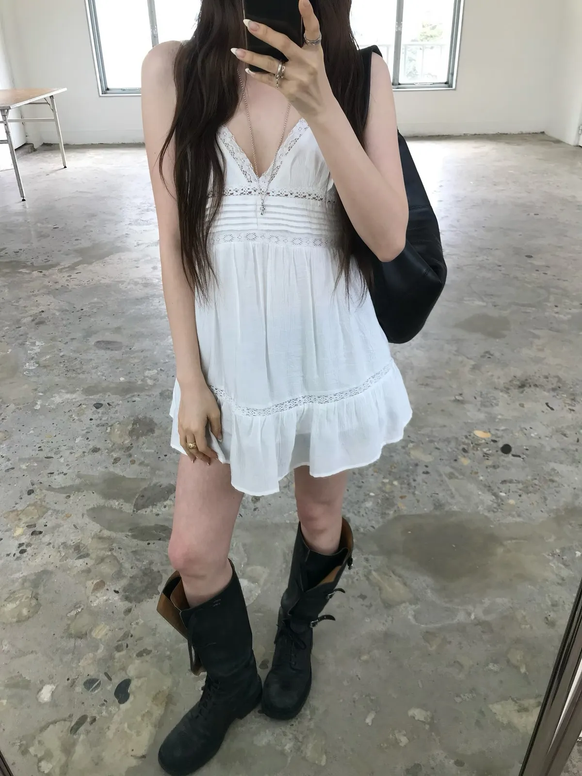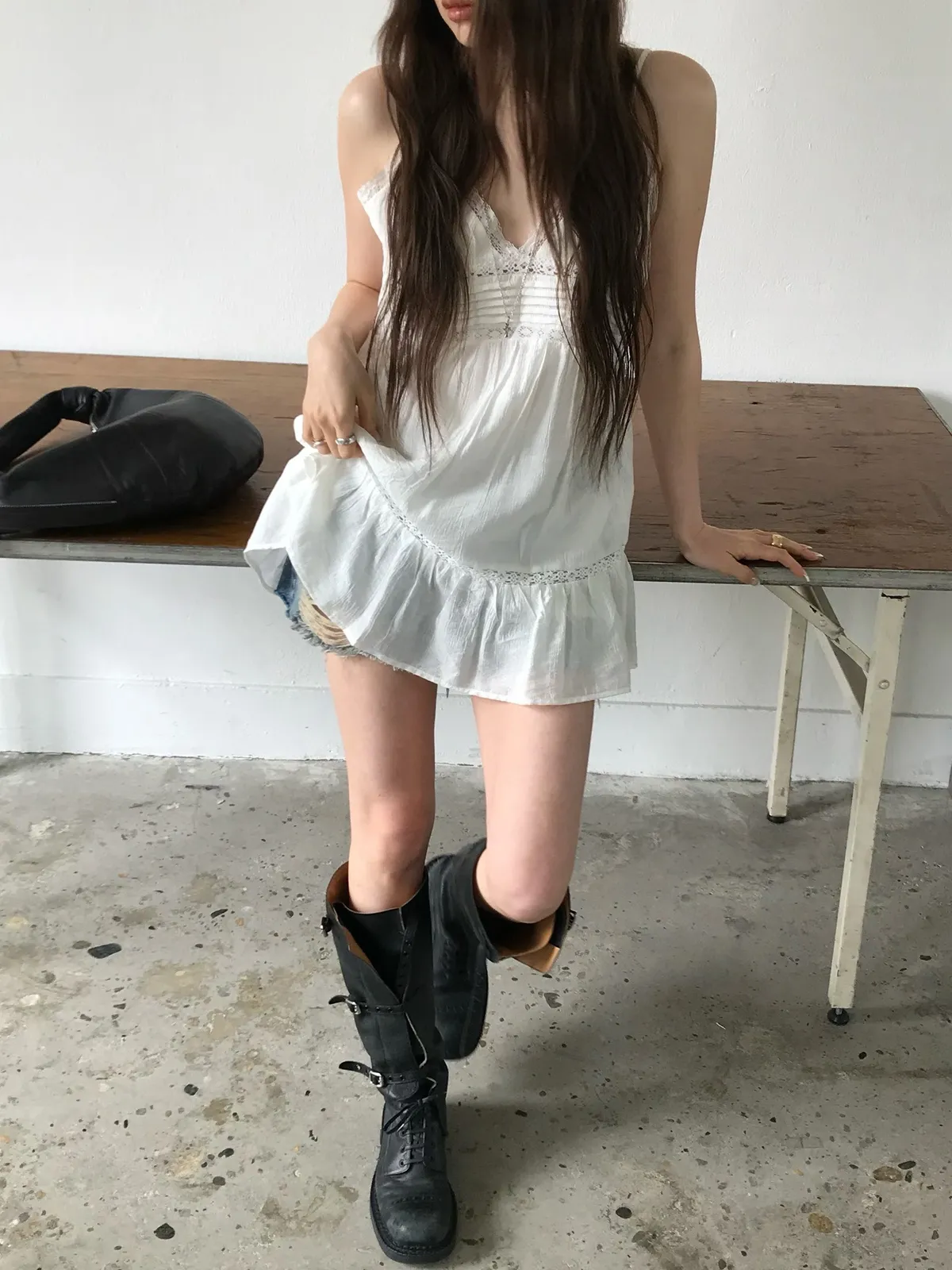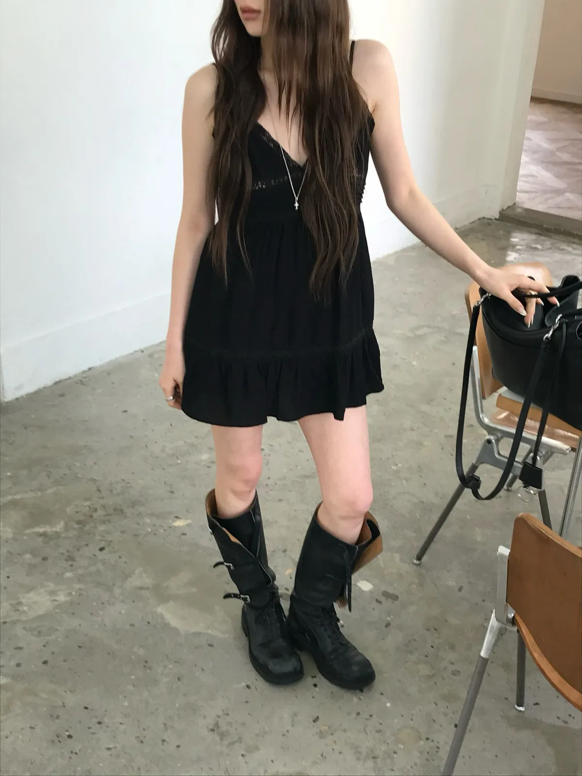 26EJ01 必買)桃心V領蕾絲背心短洋裝 2色