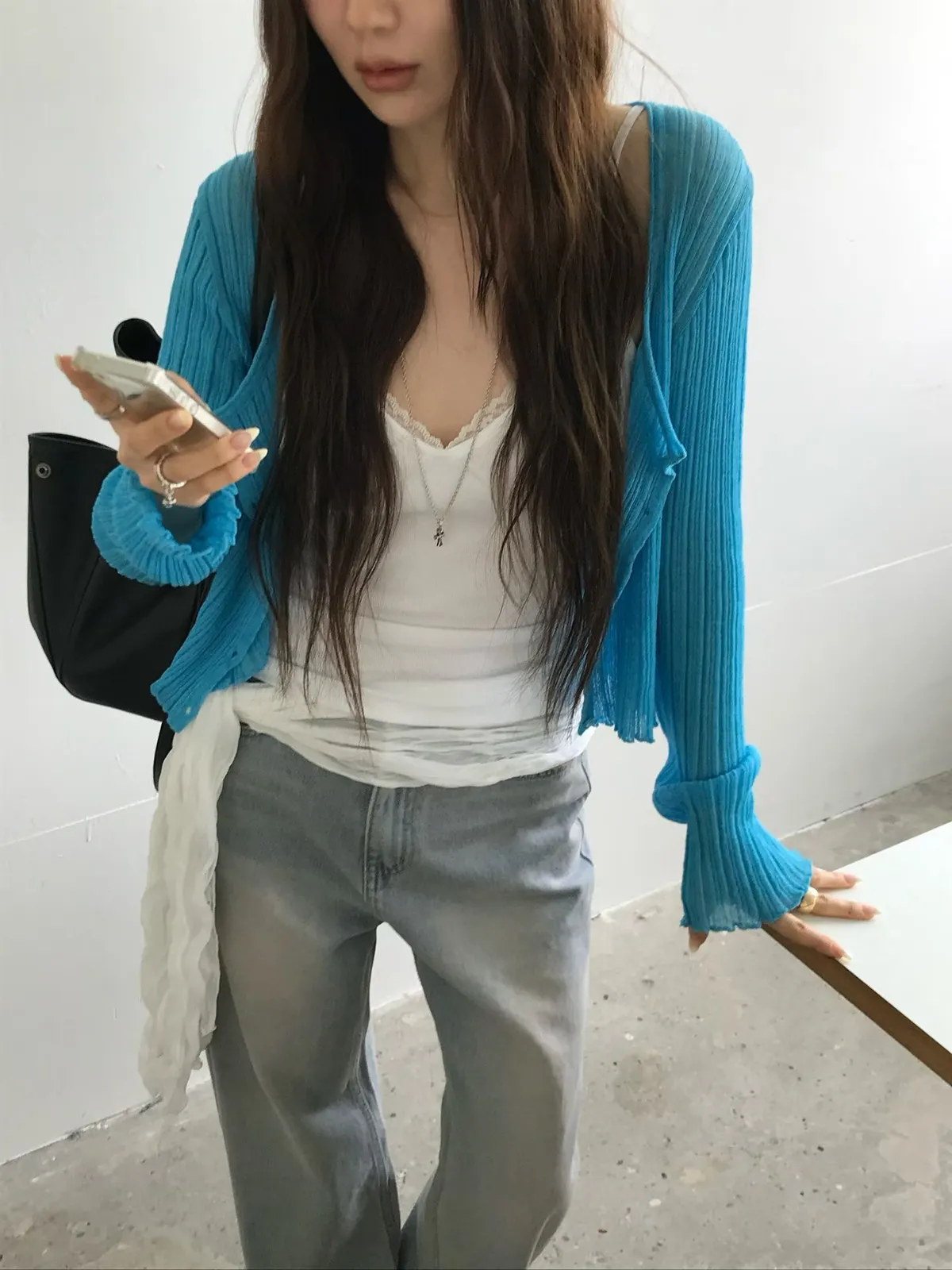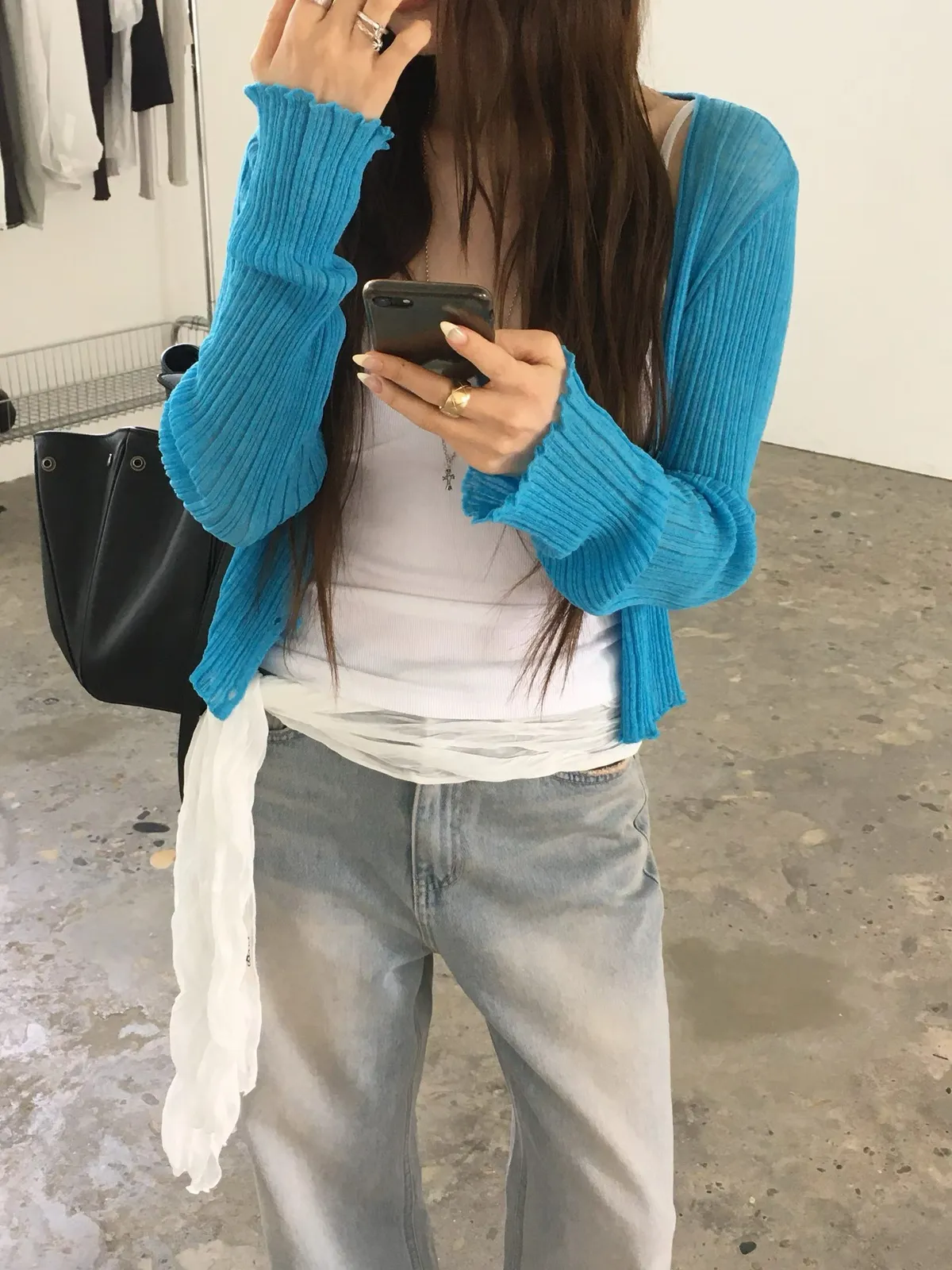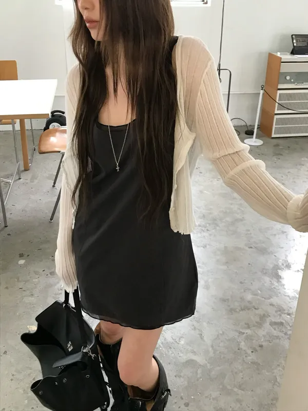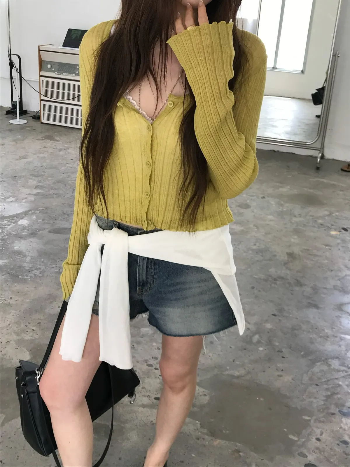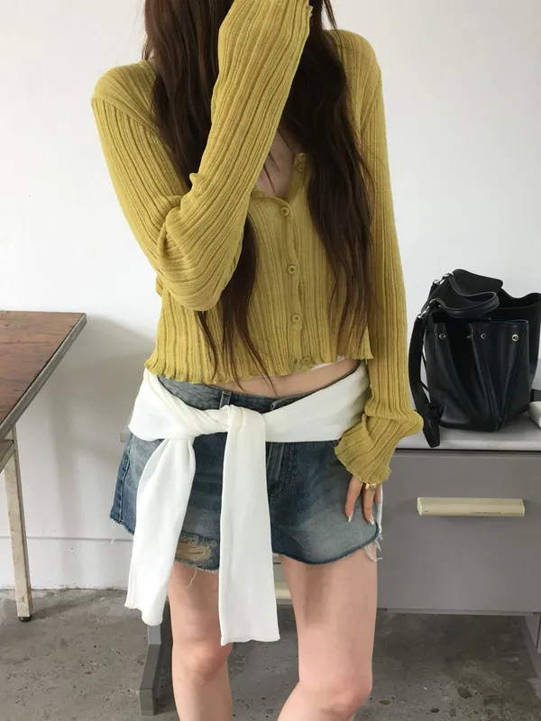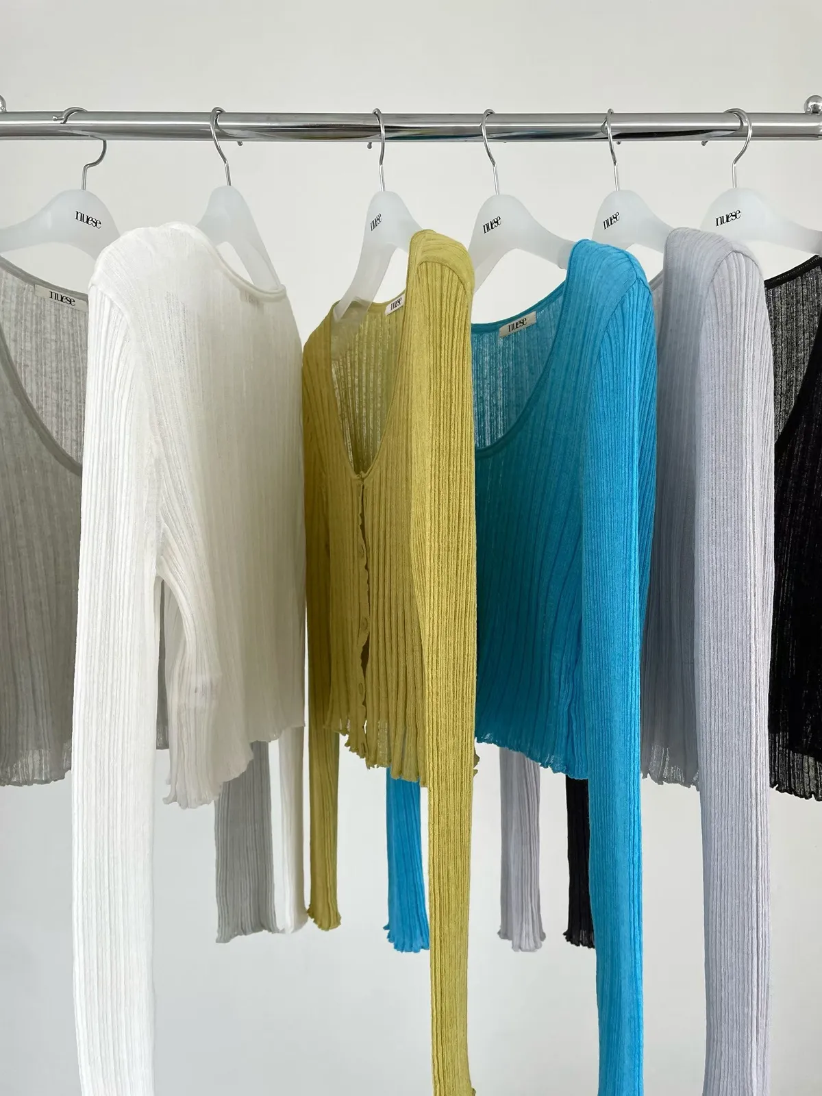 26EJ02 鉤織織線透紗坑條排扣外罩 6色