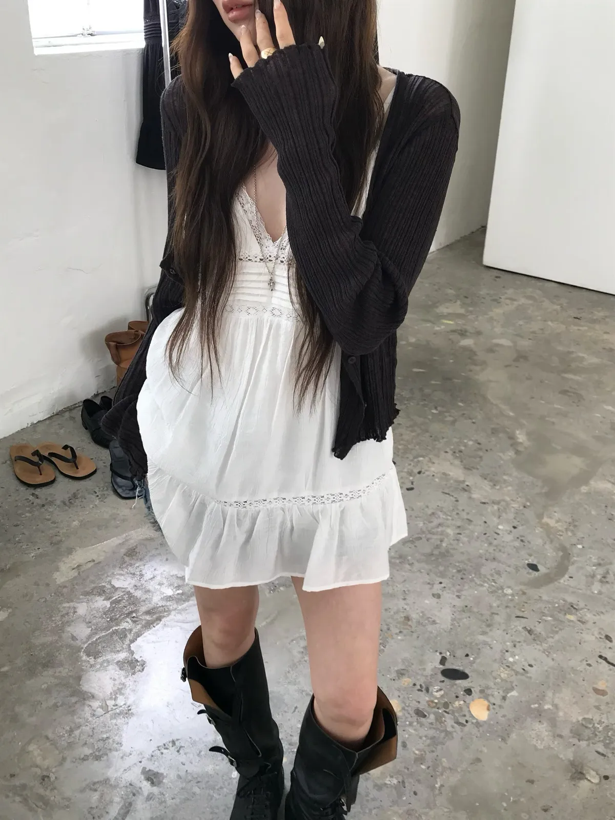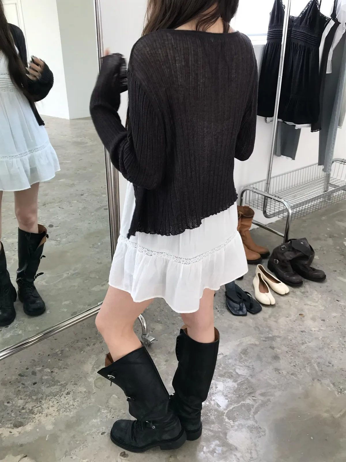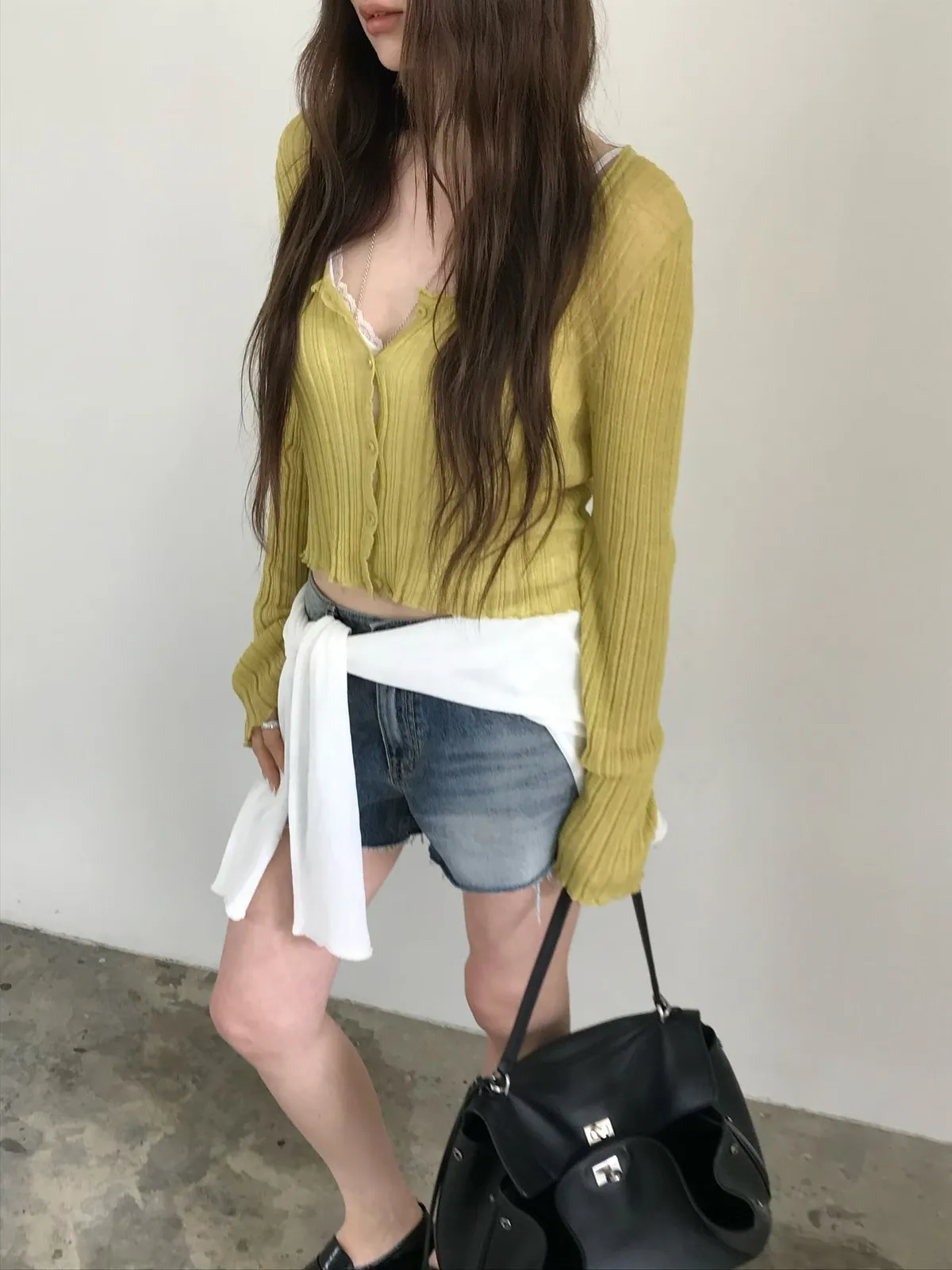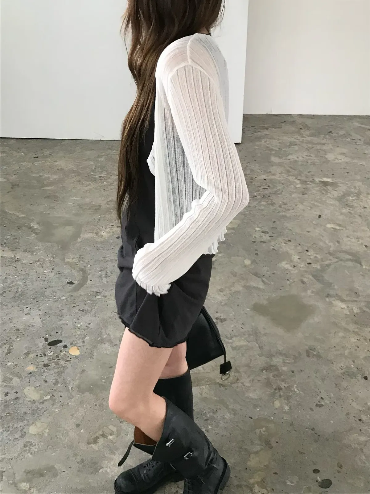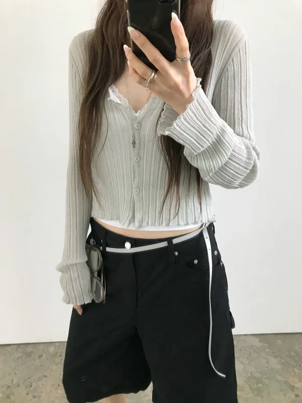 26EJ02 鉤織織線透紗坑條排扣外罩 6色