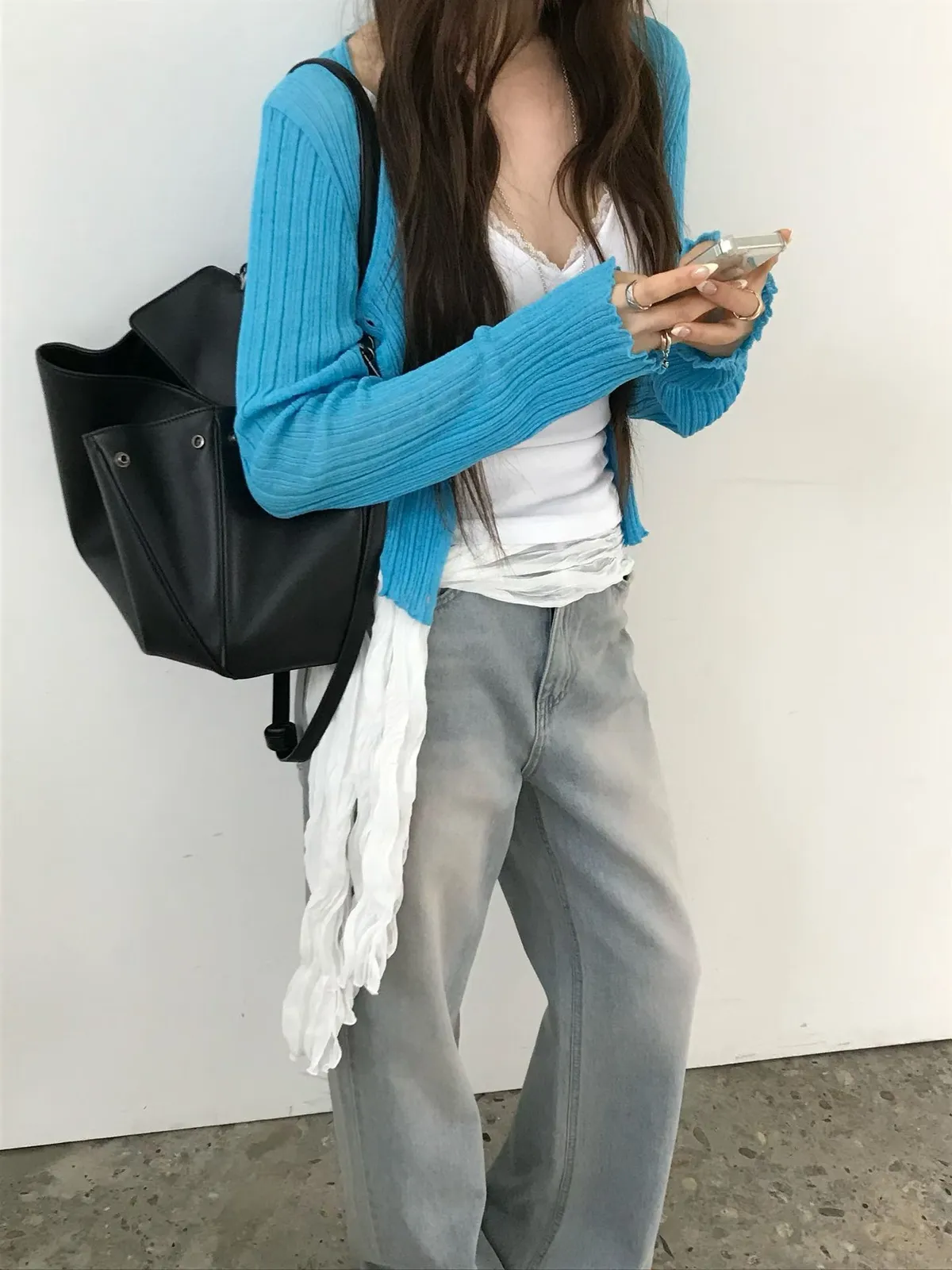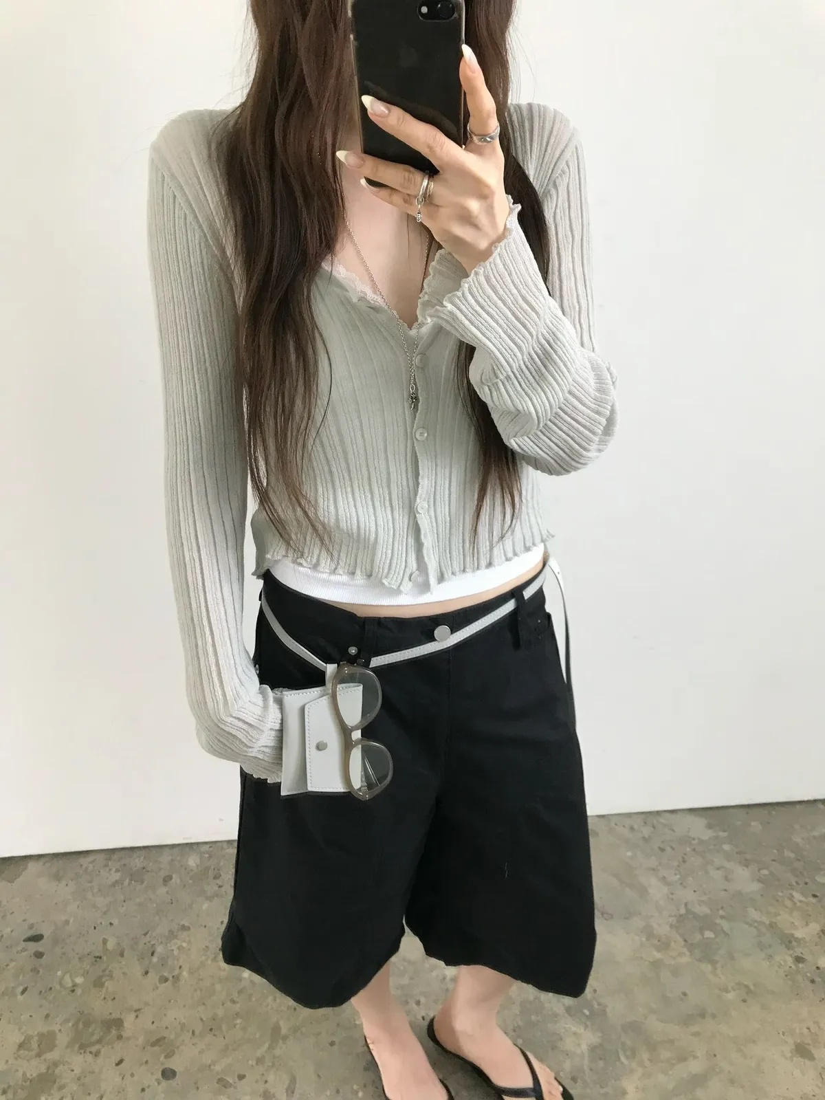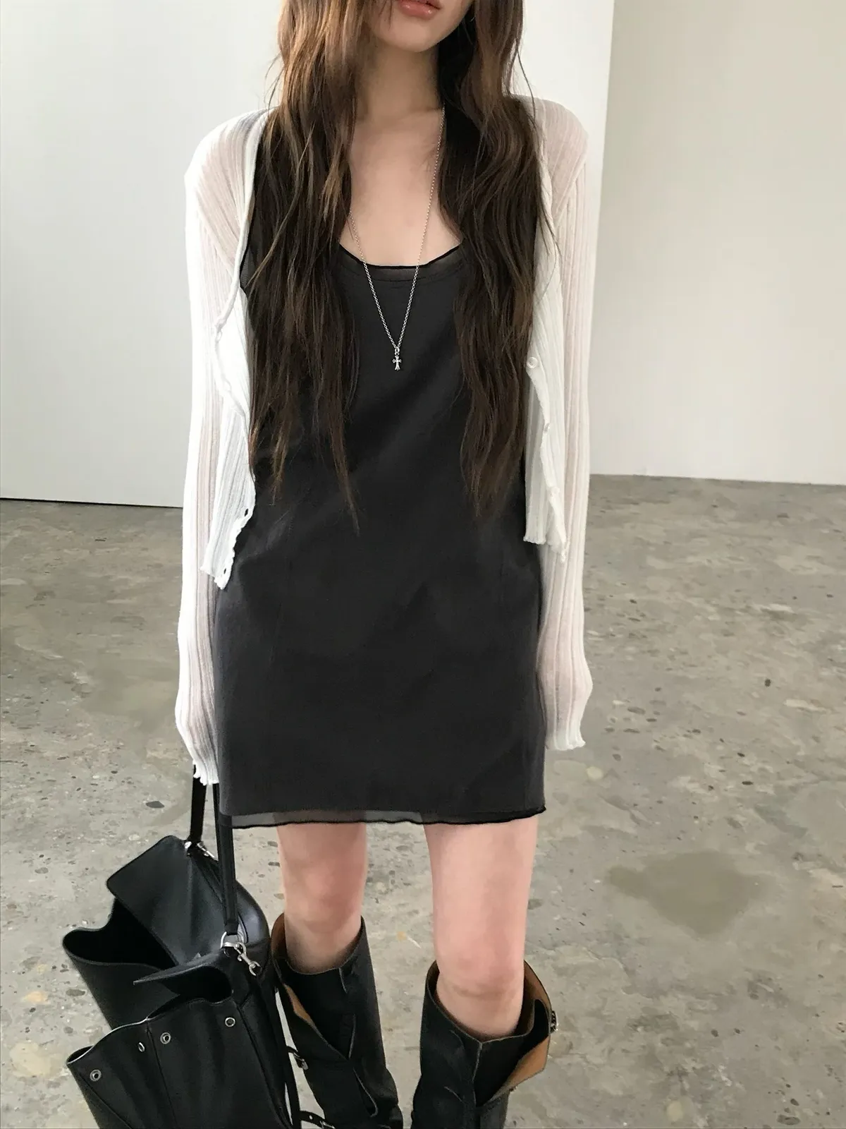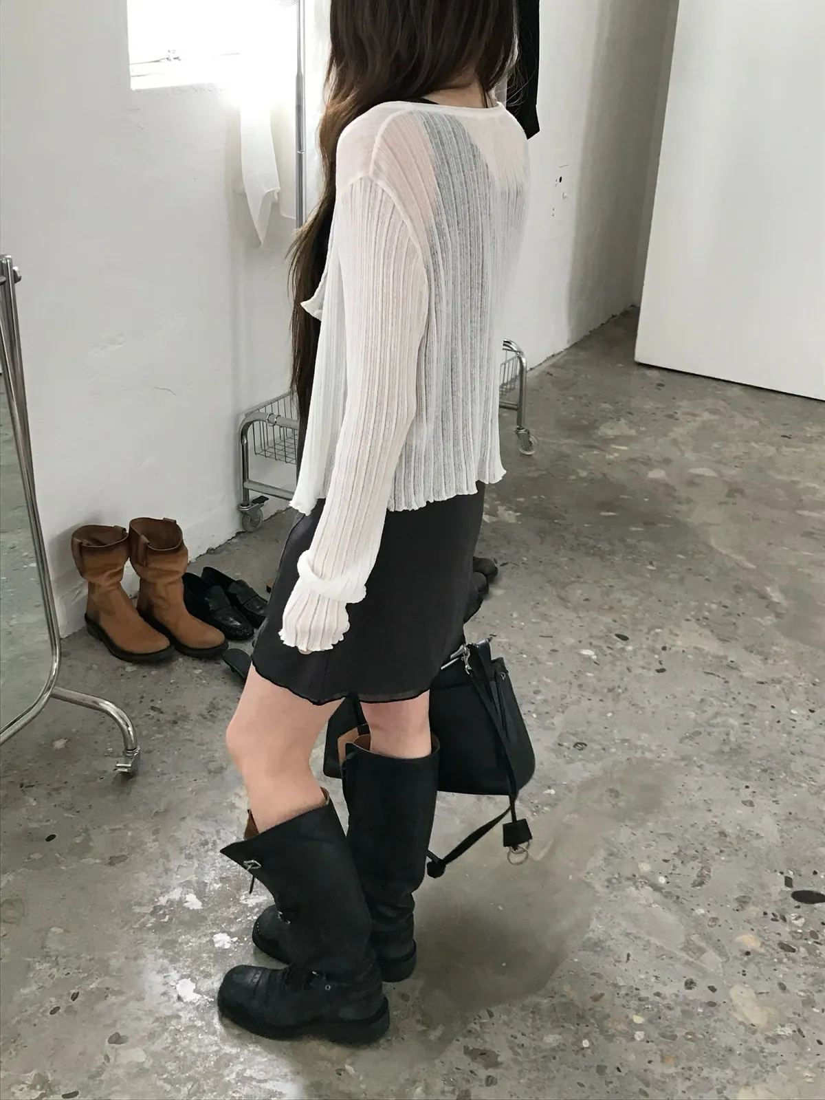 26EJ02 鉤織織線透紗坑條排扣外罩 6色