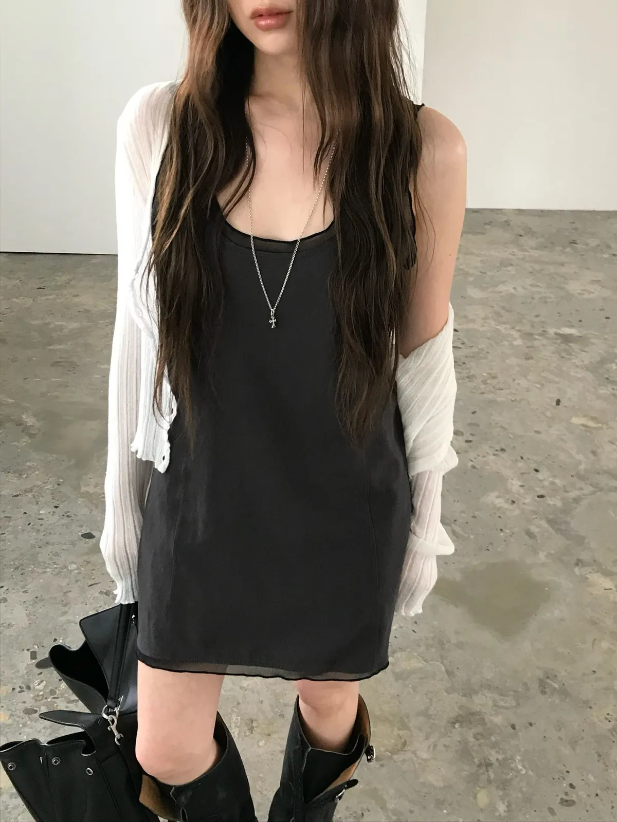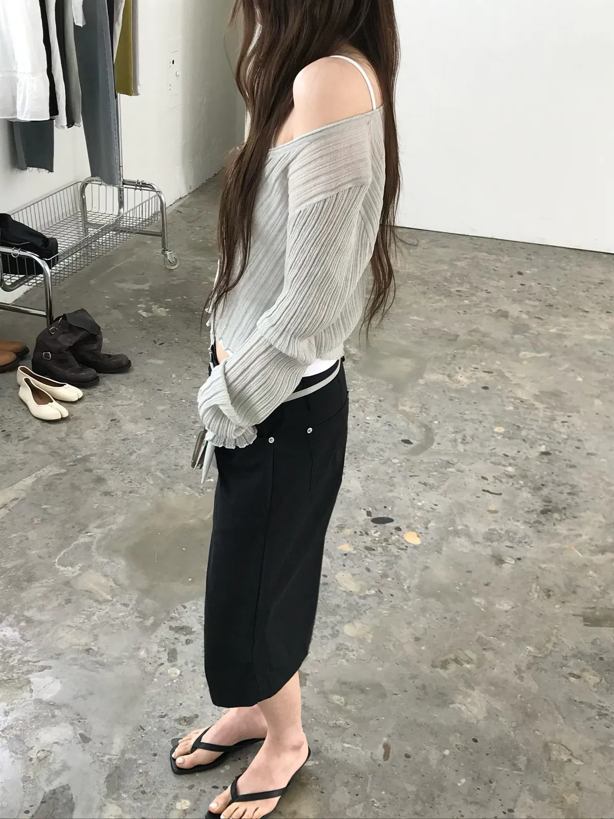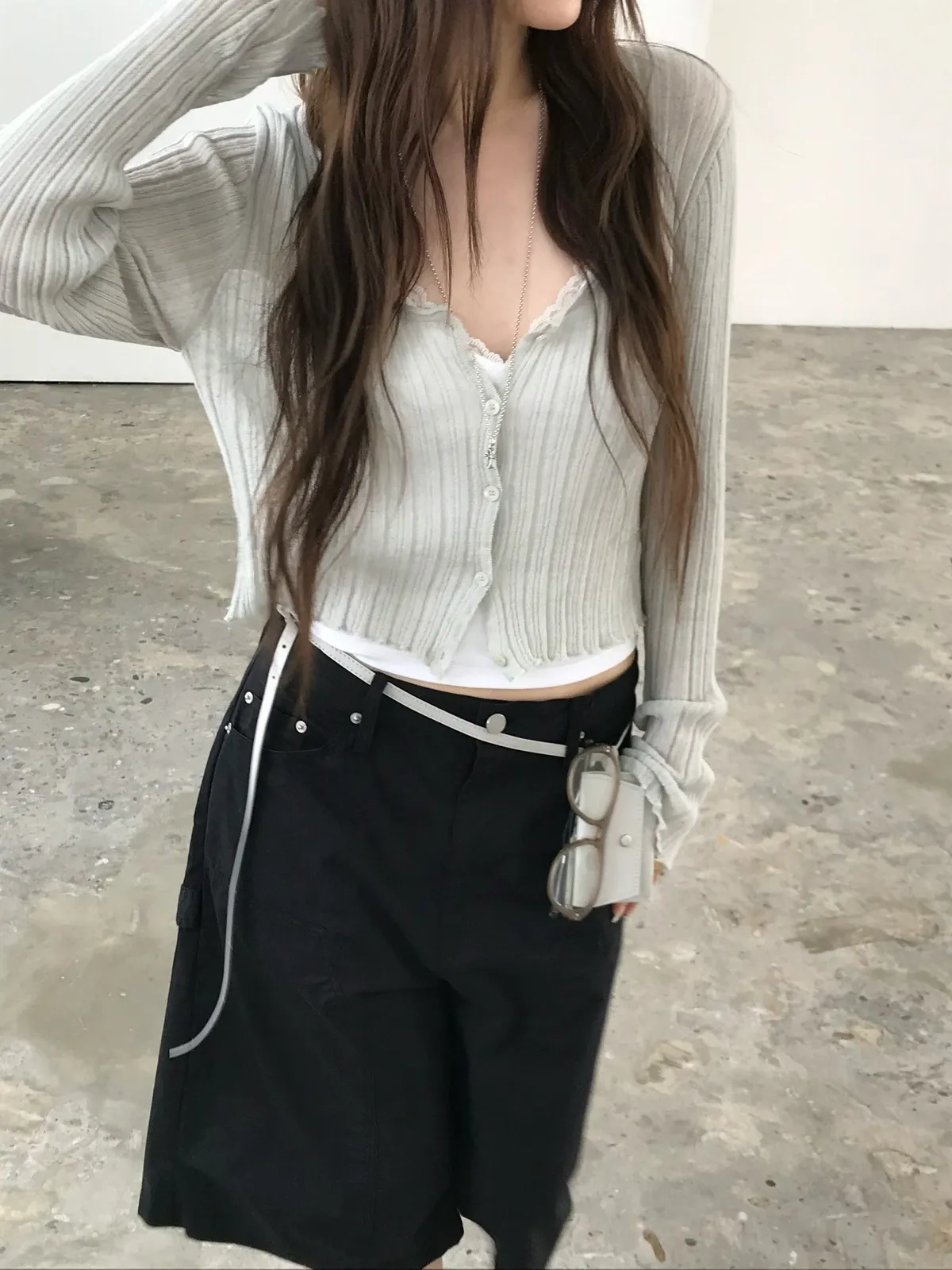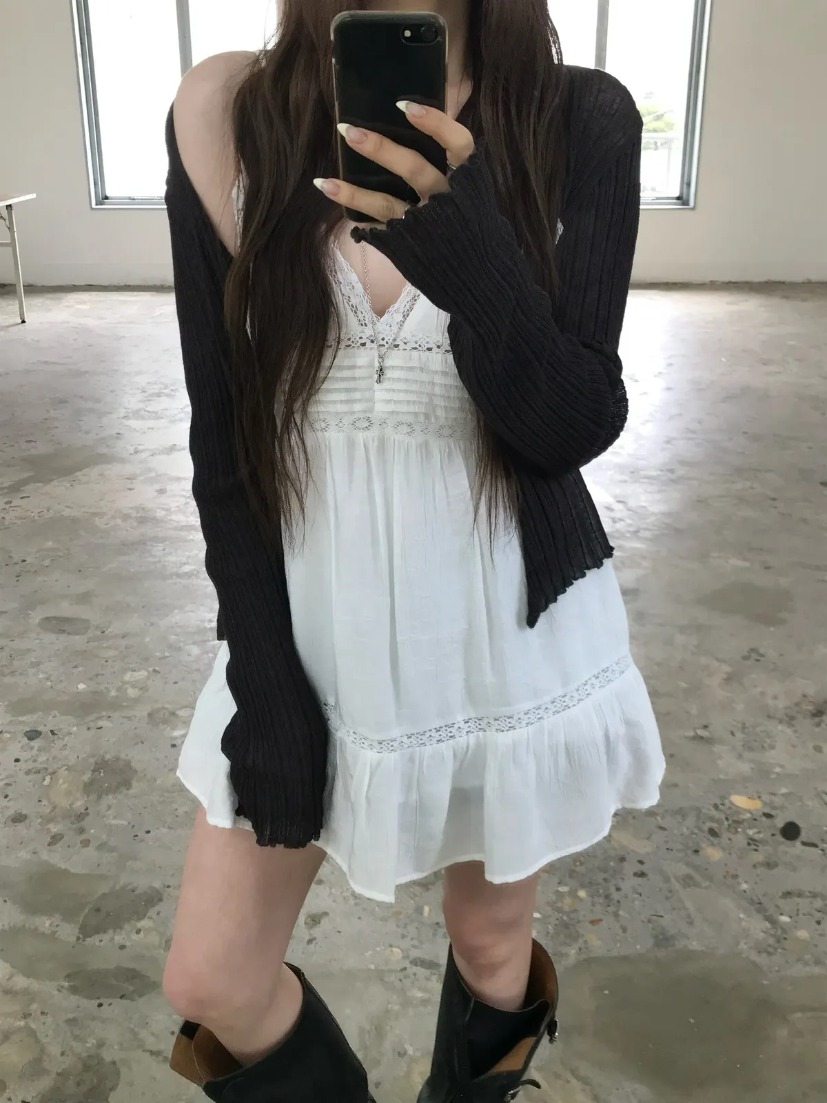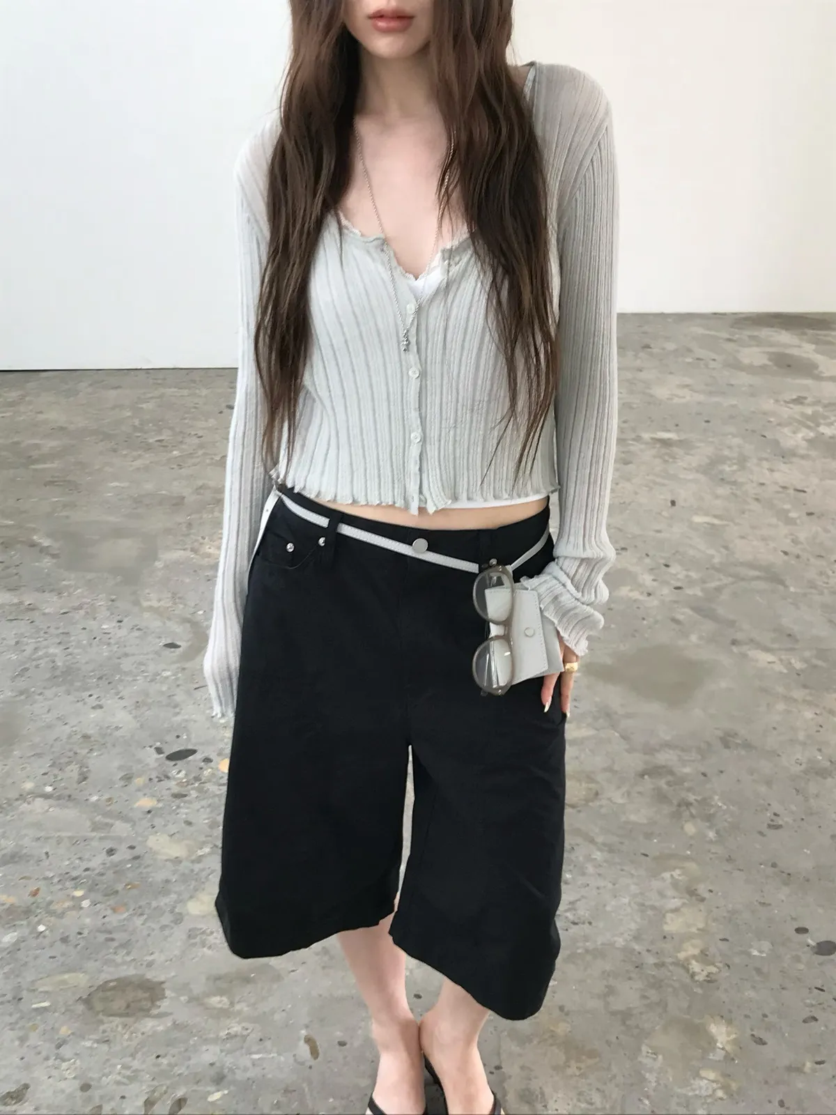 26EJ02 鉤織織線透紗坑條排扣外罩 6色