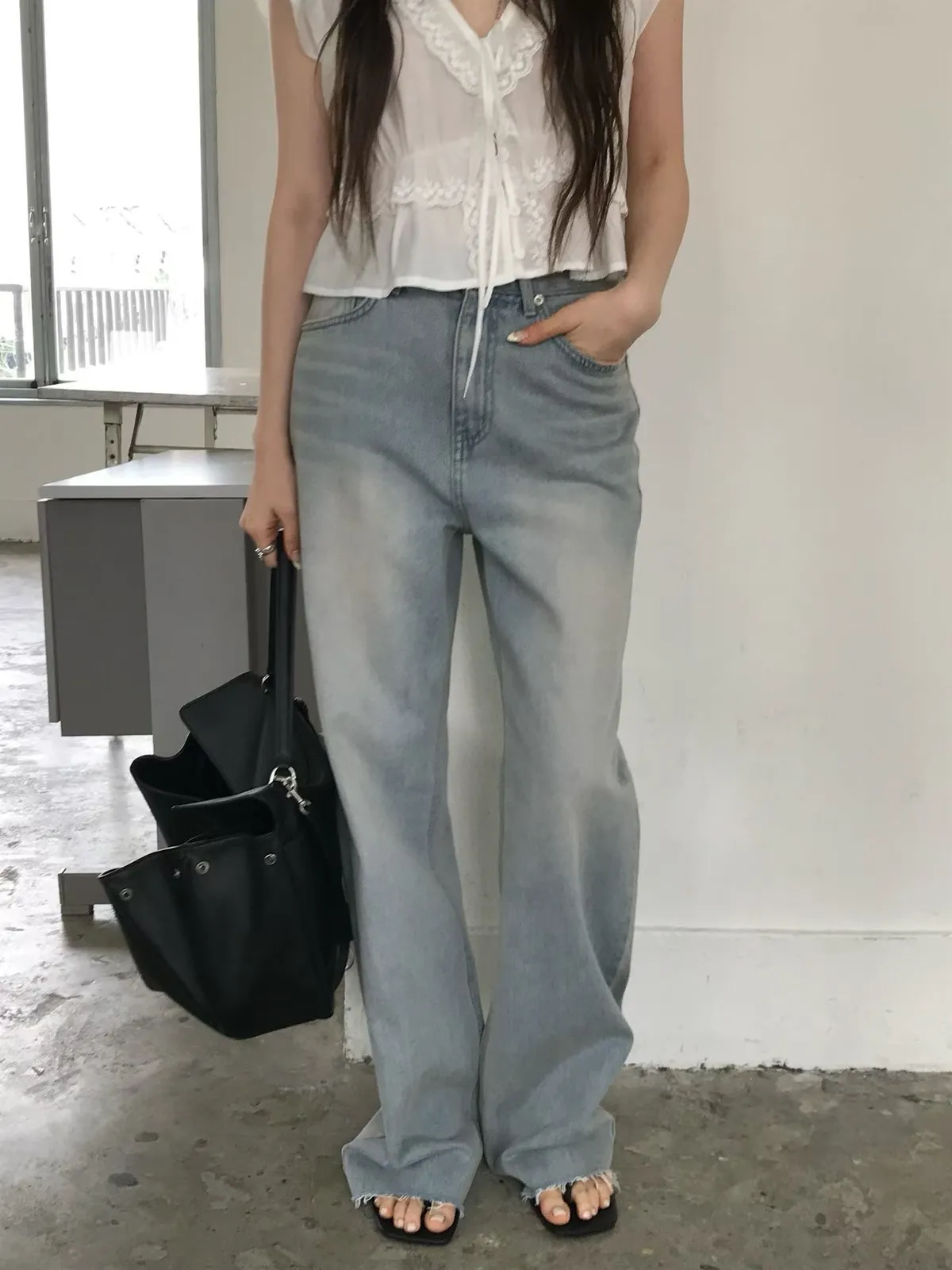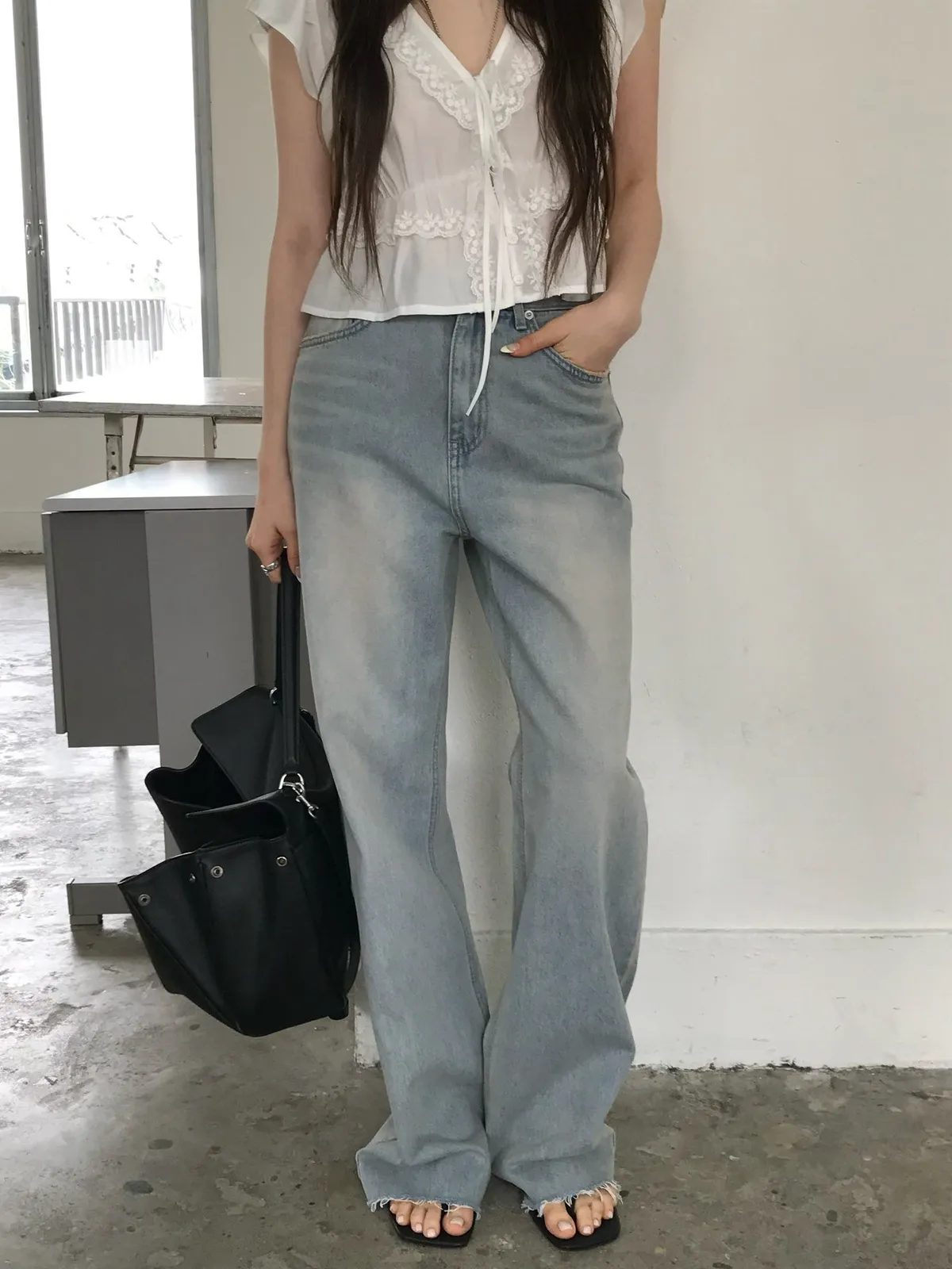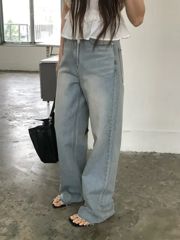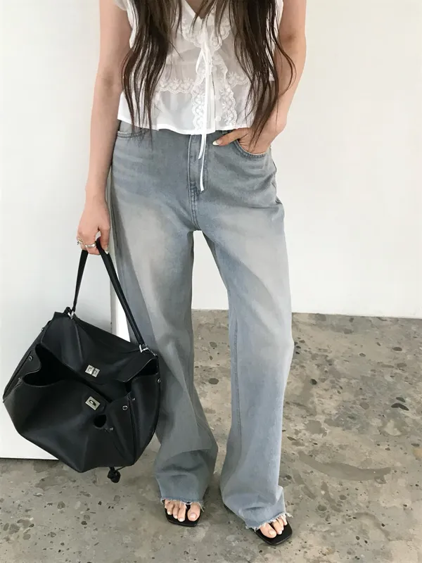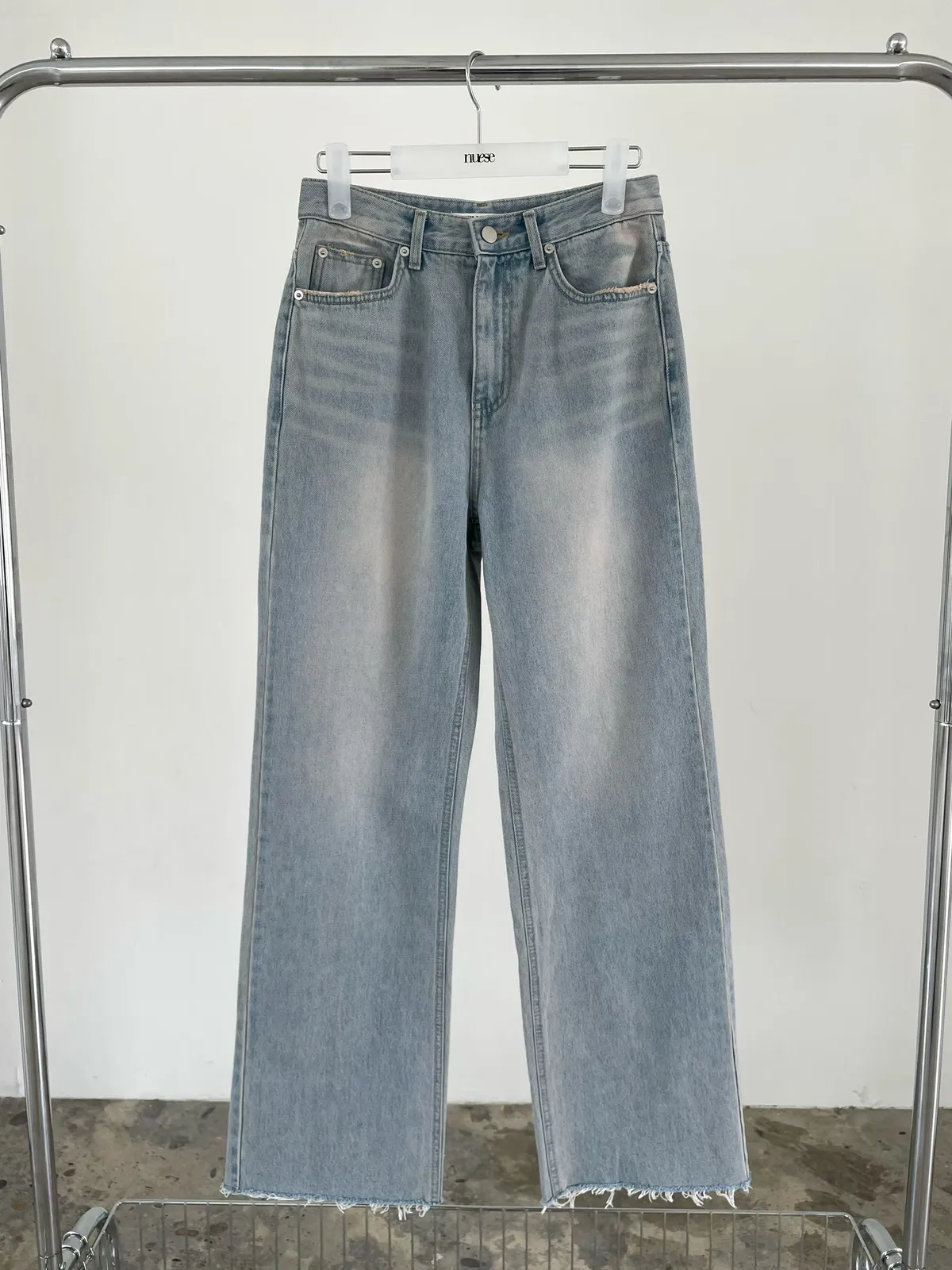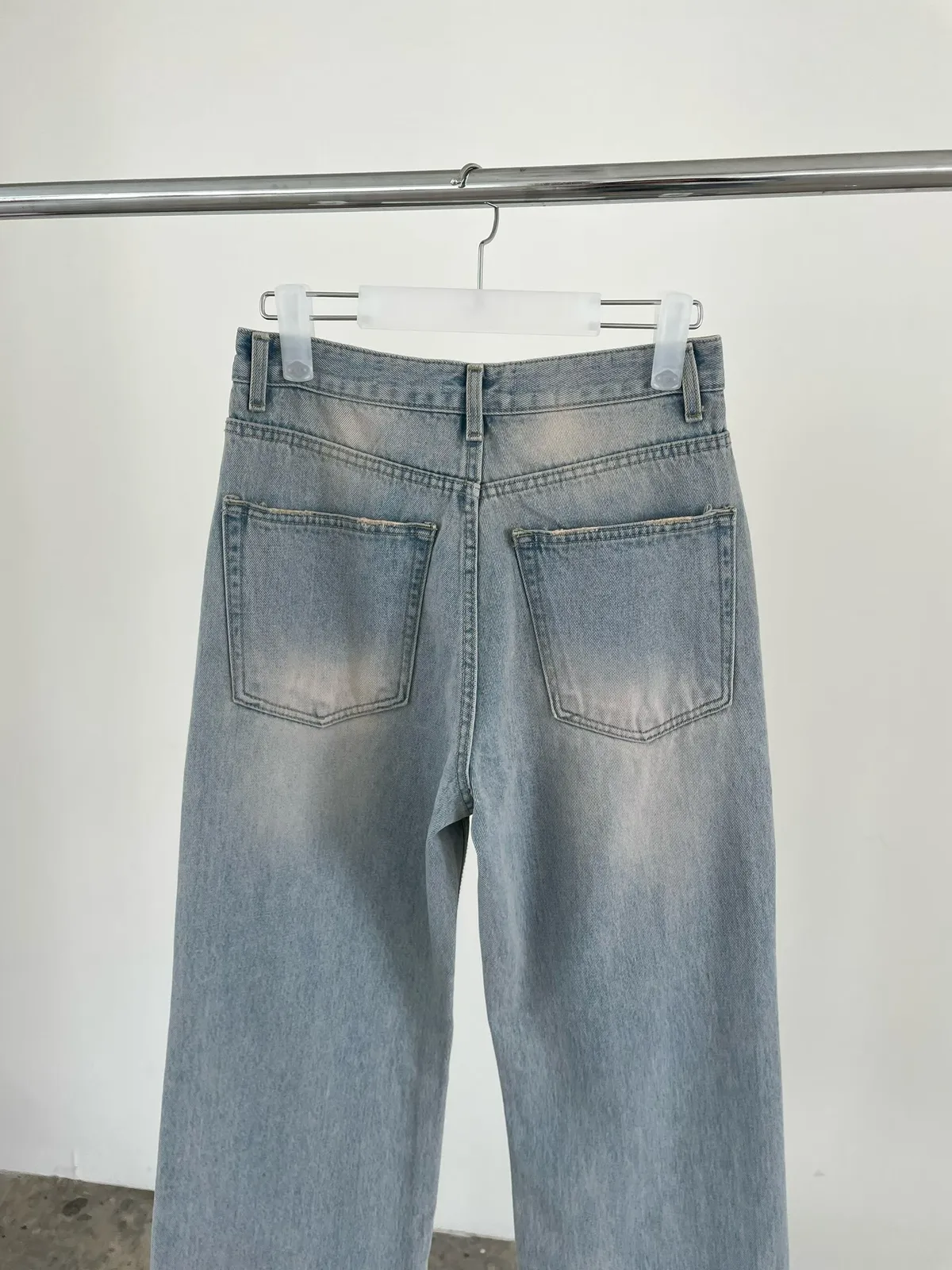 26EJ04 特殊洗色磨破直腿牛仔長褲 SM