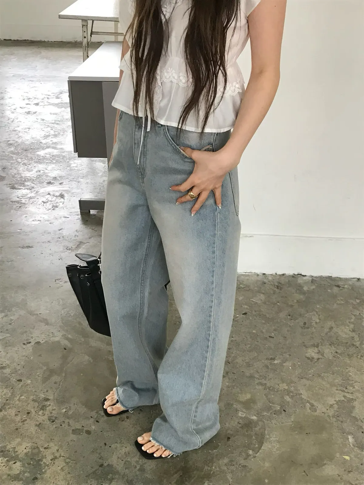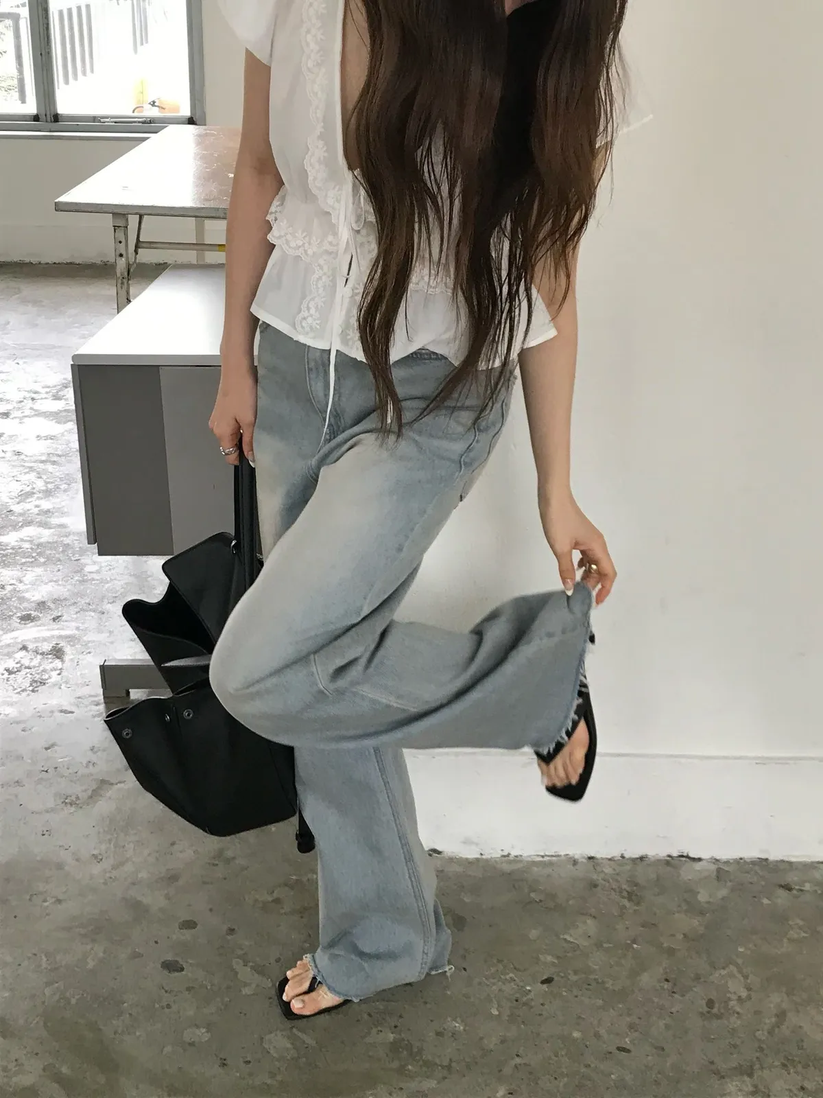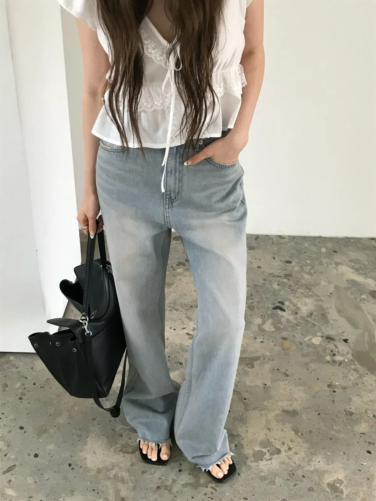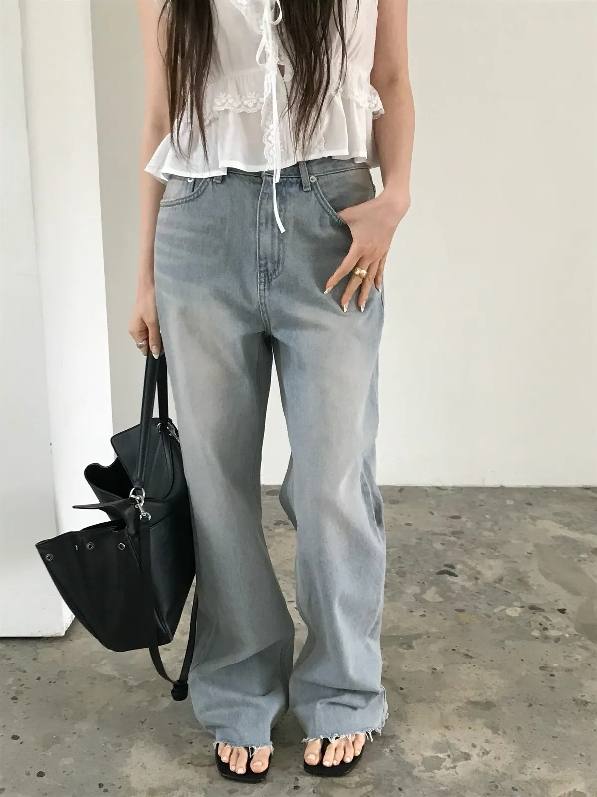 26EJ04 特殊洗色磨破直腿牛仔長褲 SM