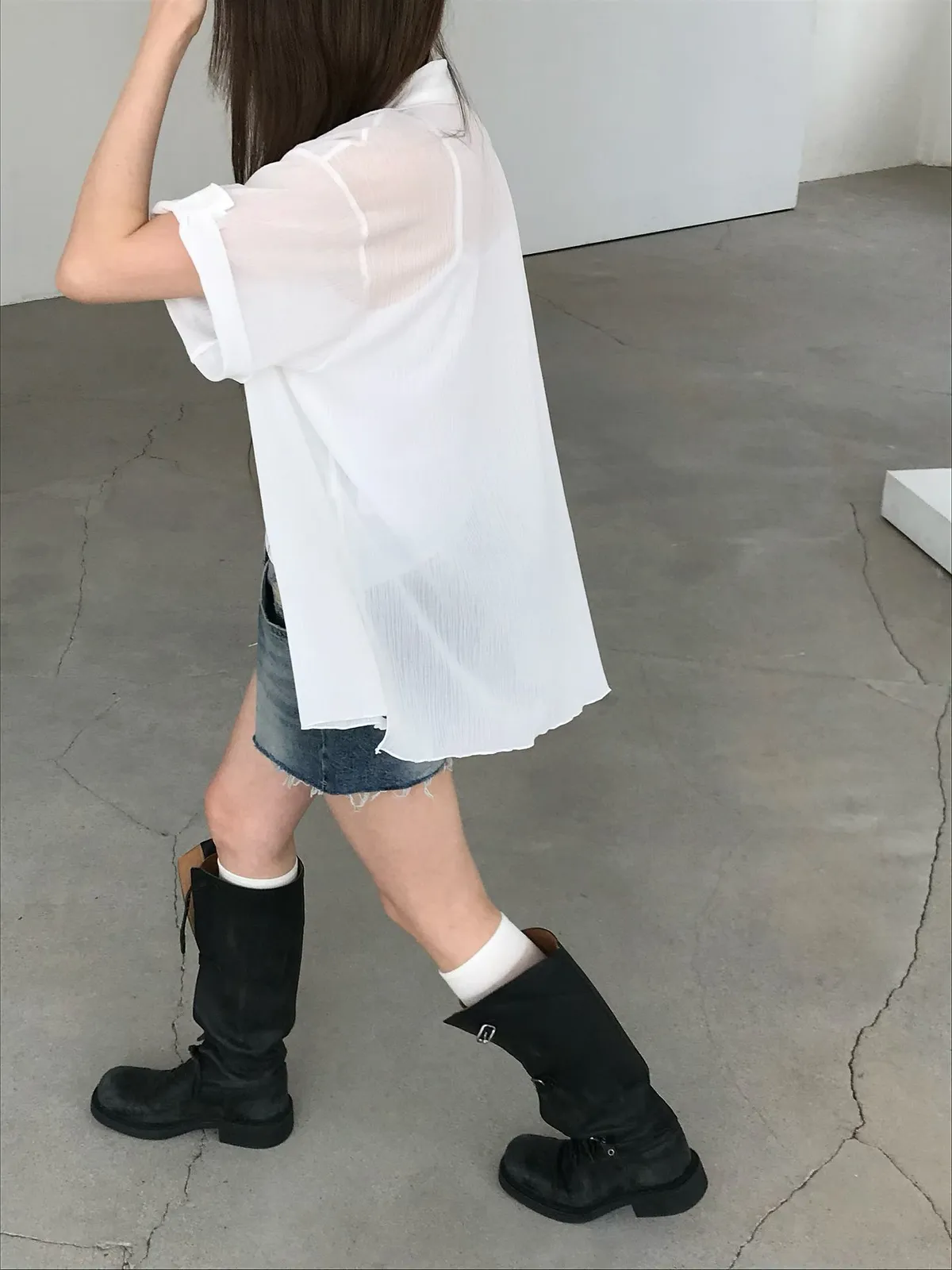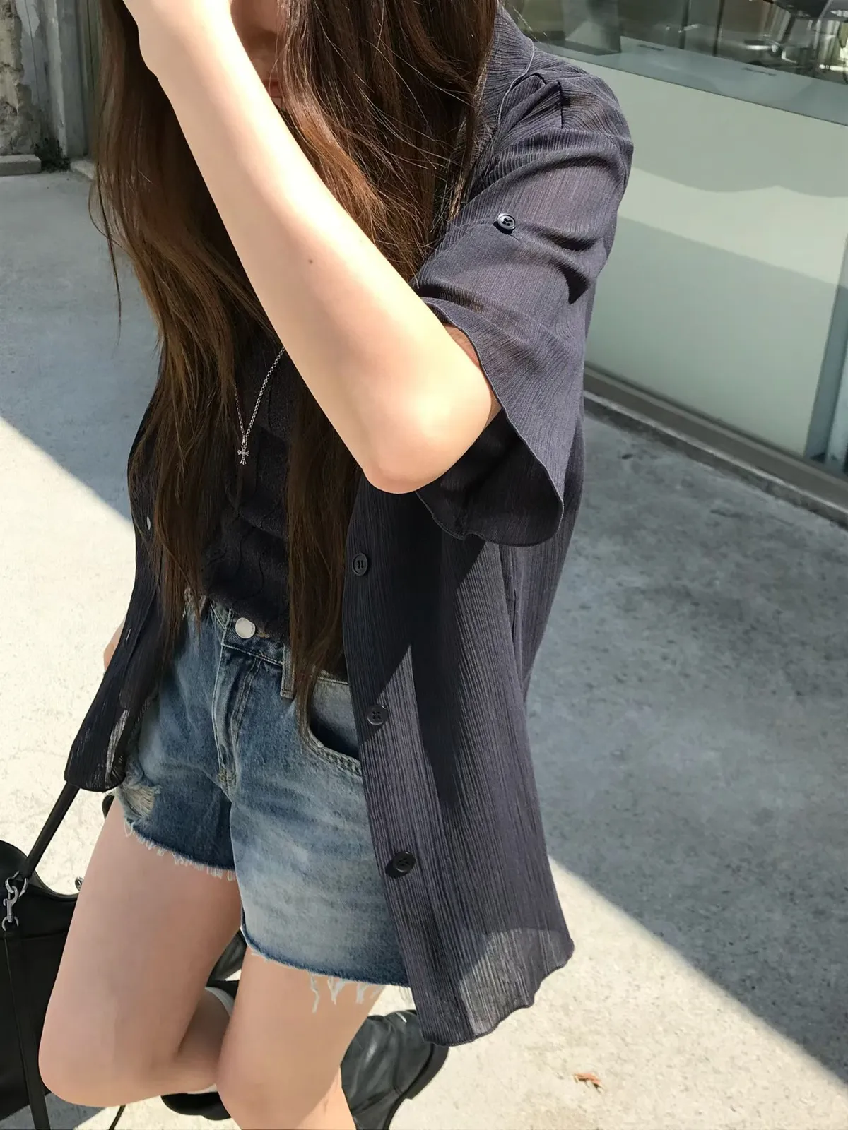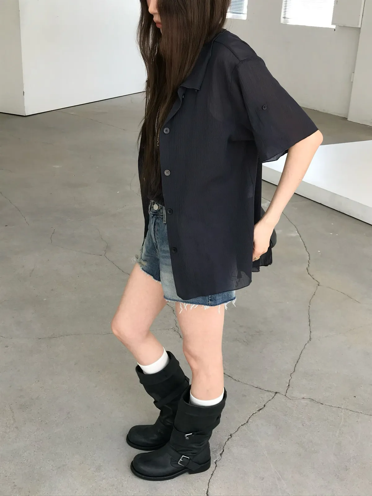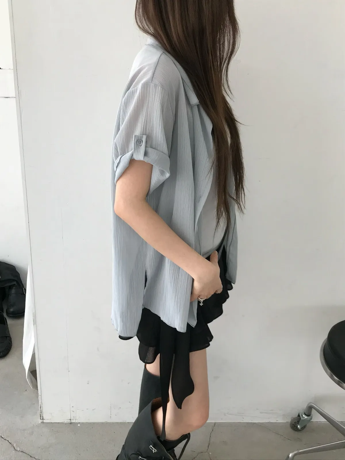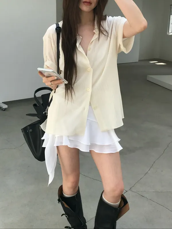 26EJ06 透透凹凸直紋短袖襯衫 4色