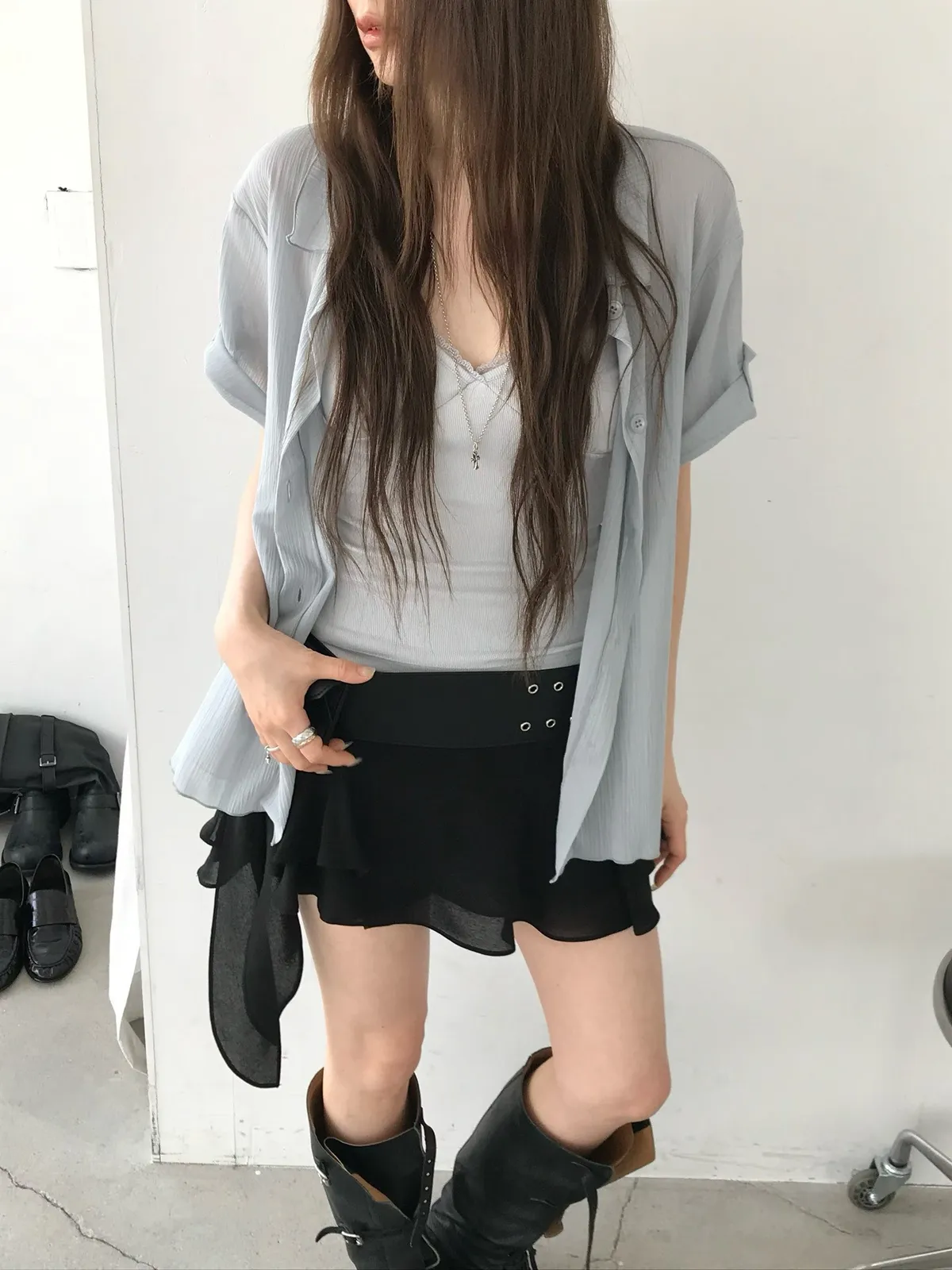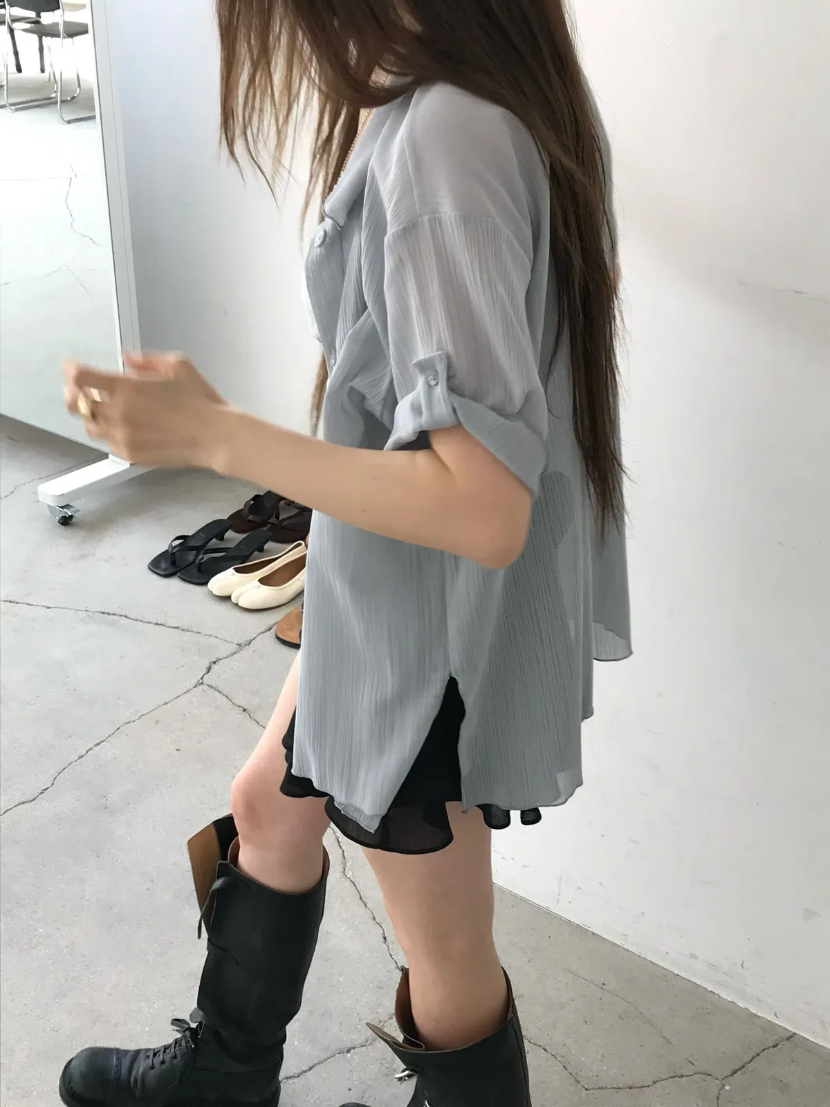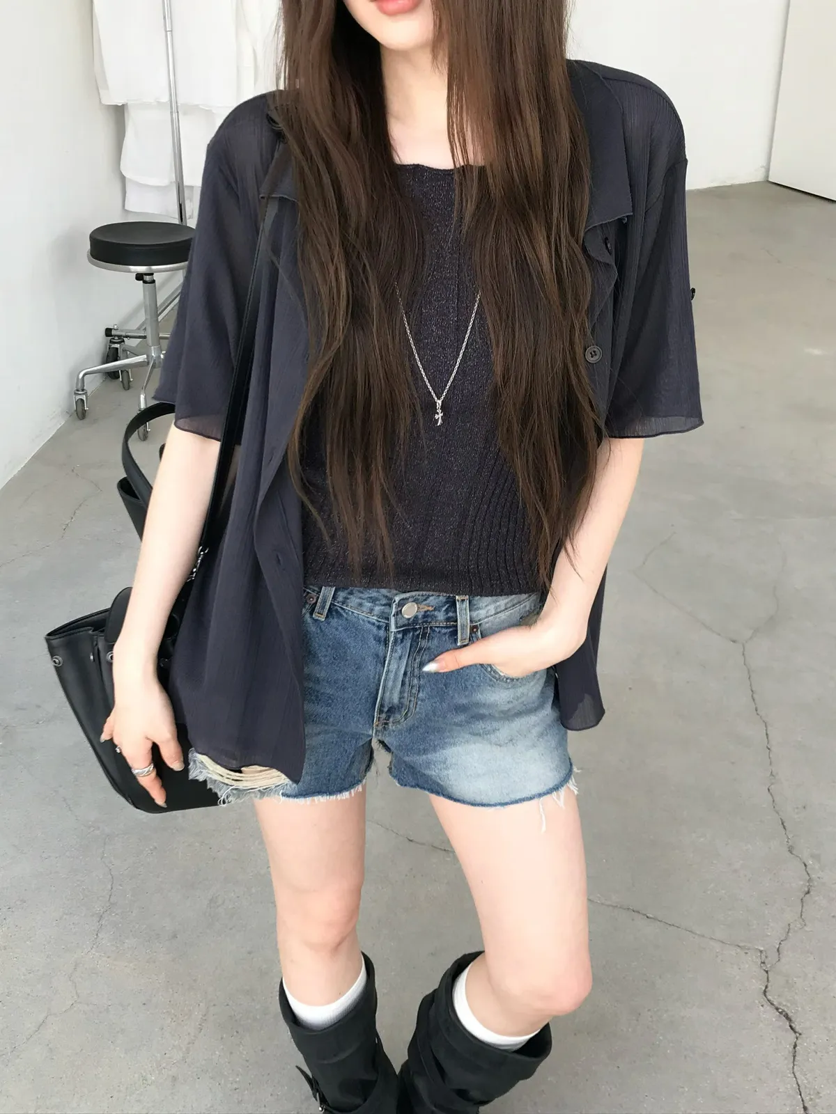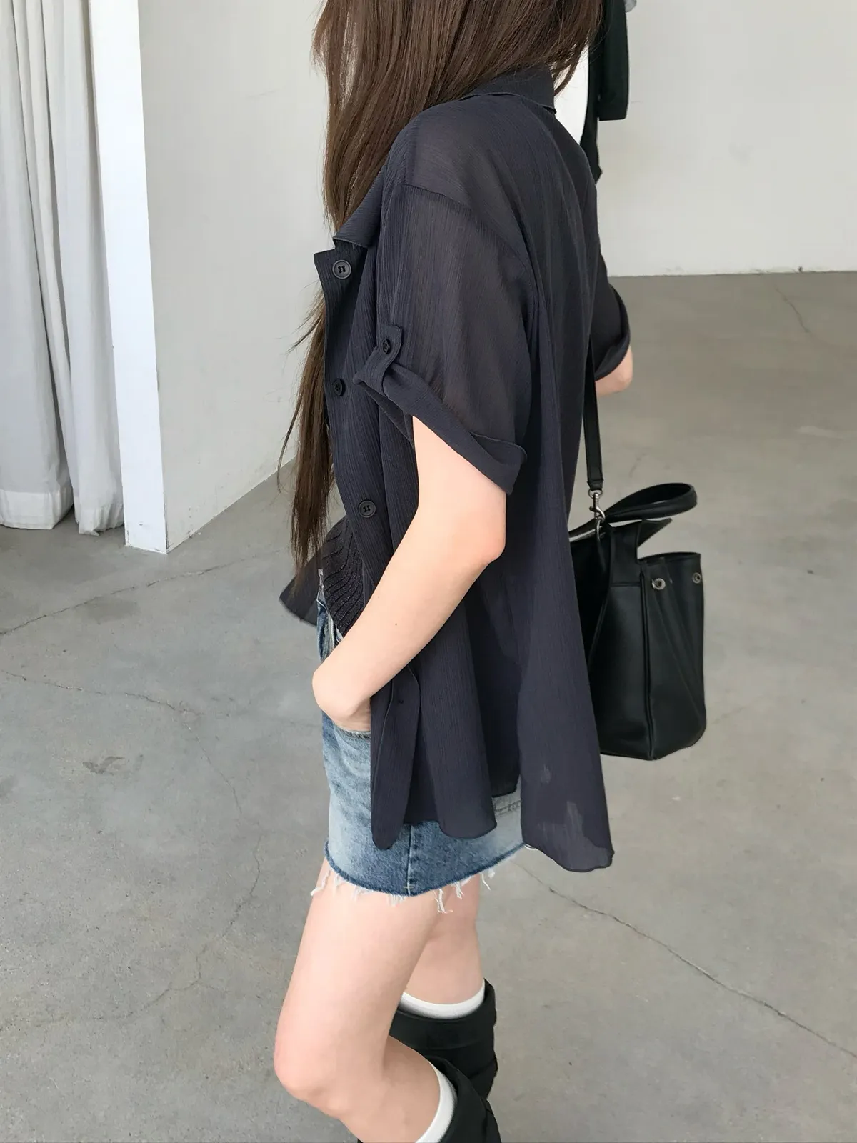 26EJ06 透透凹凸直紋短袖襯衫 4色
