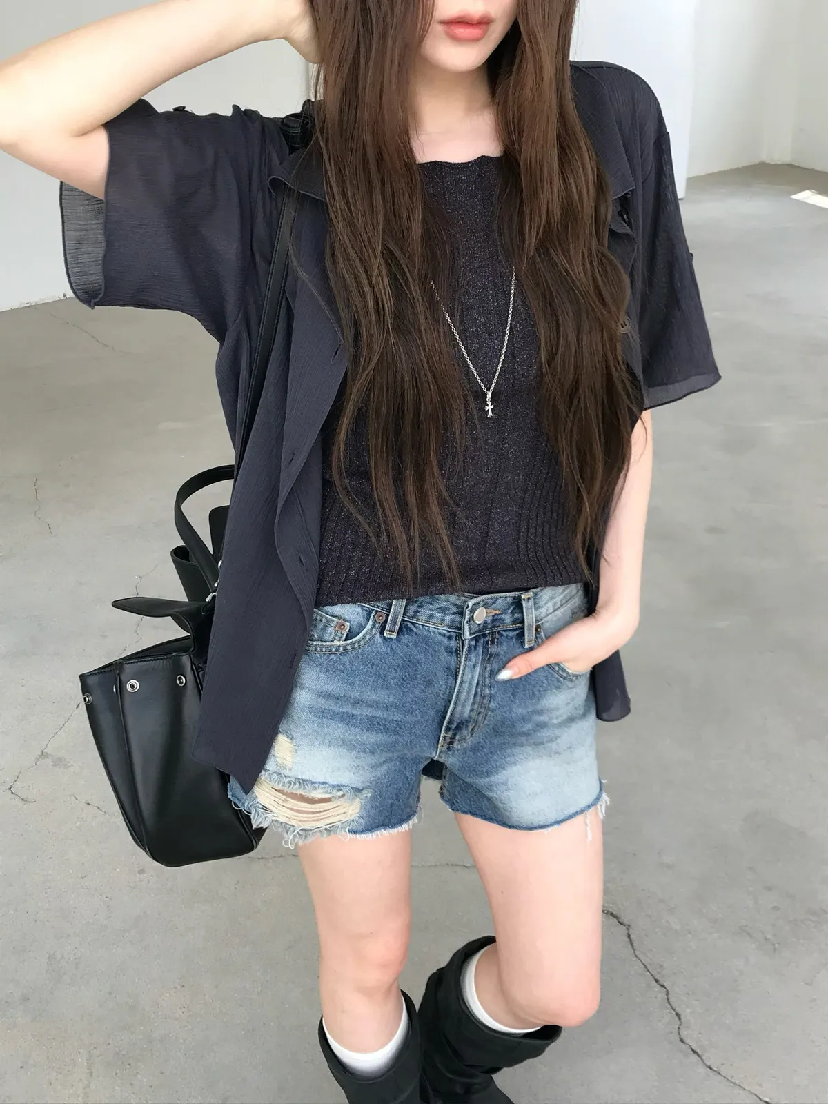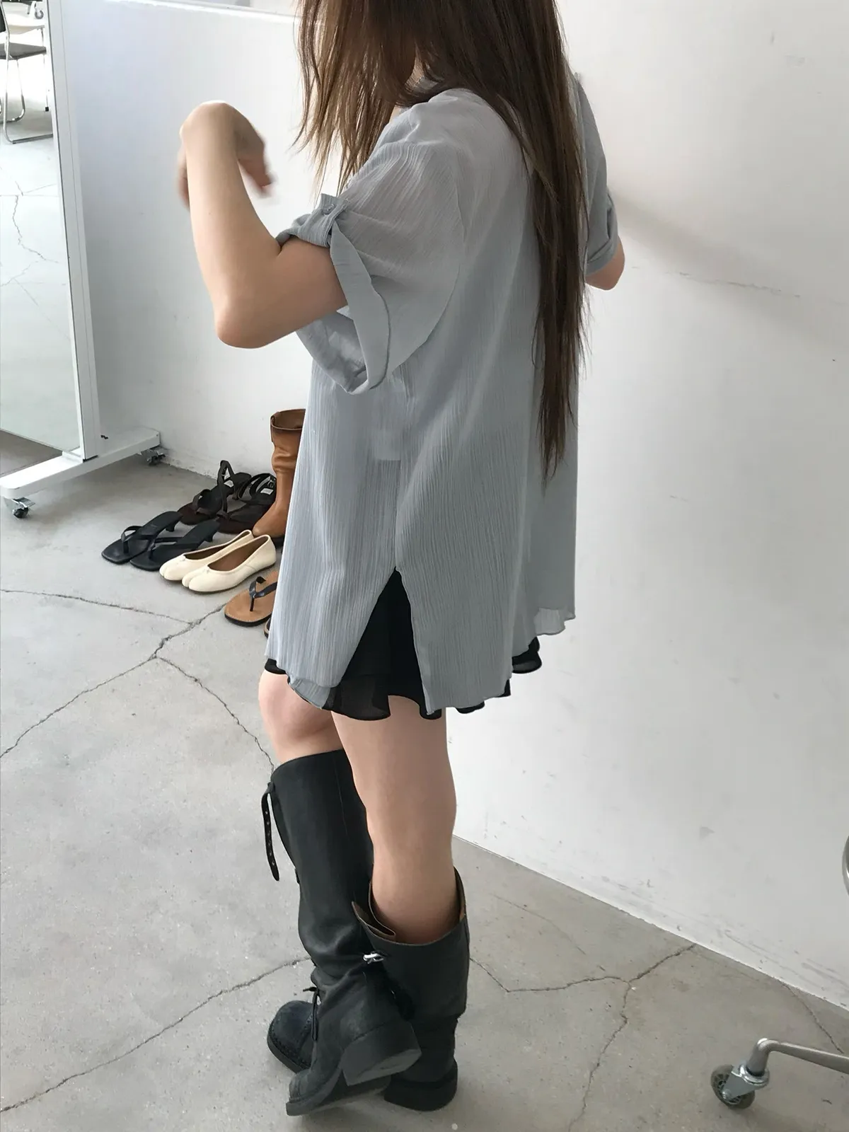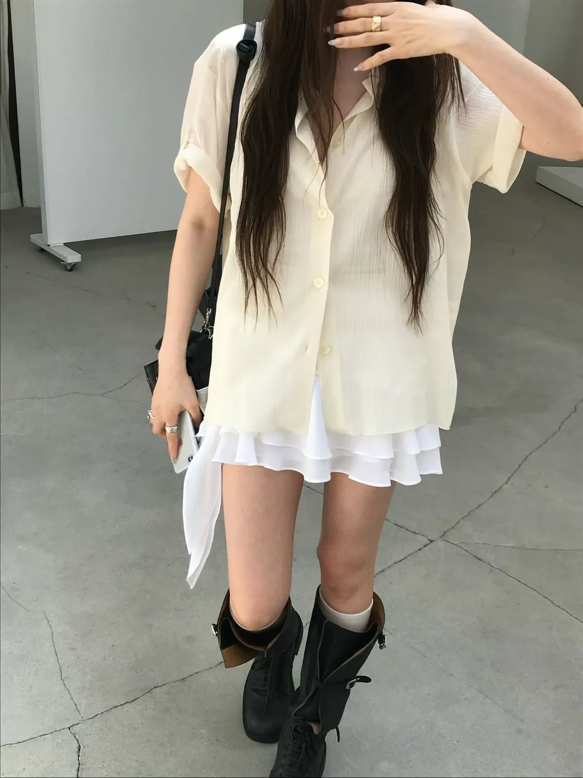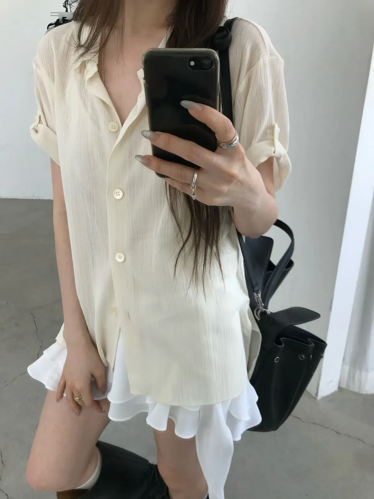 26EJ06 透透凹凸直紋短袖襯衫 4色