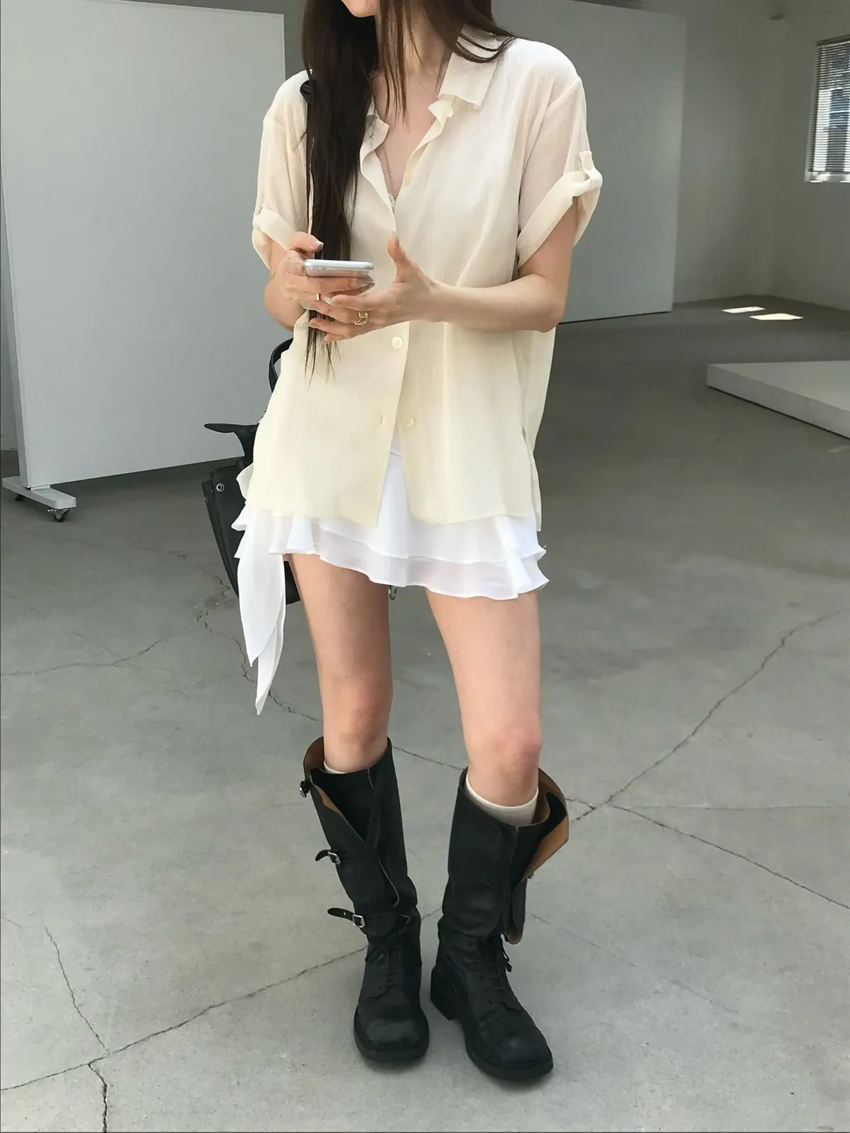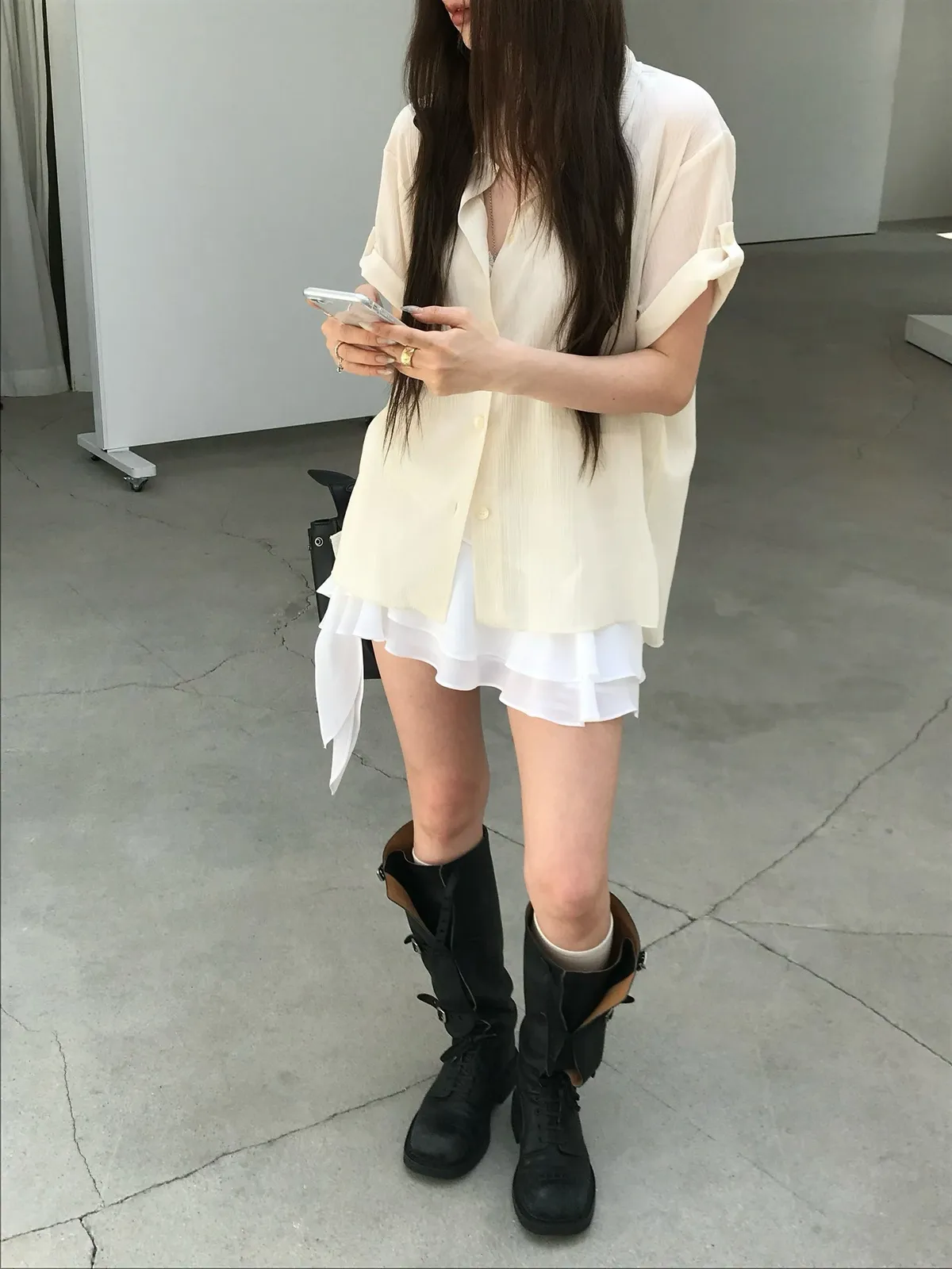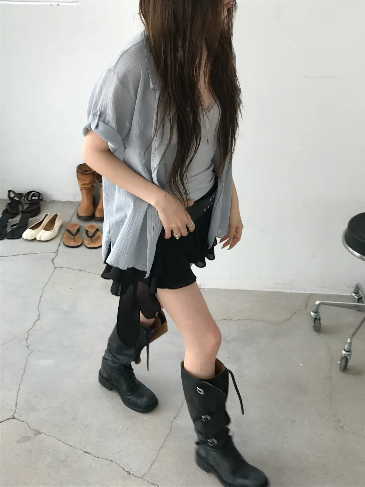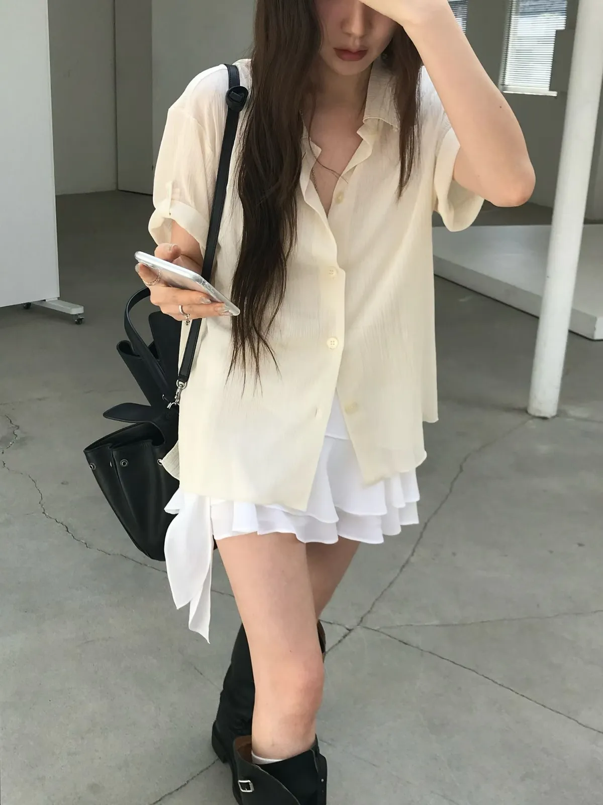 26EJ06 透透凹凸直紋短袖襯衫 4色