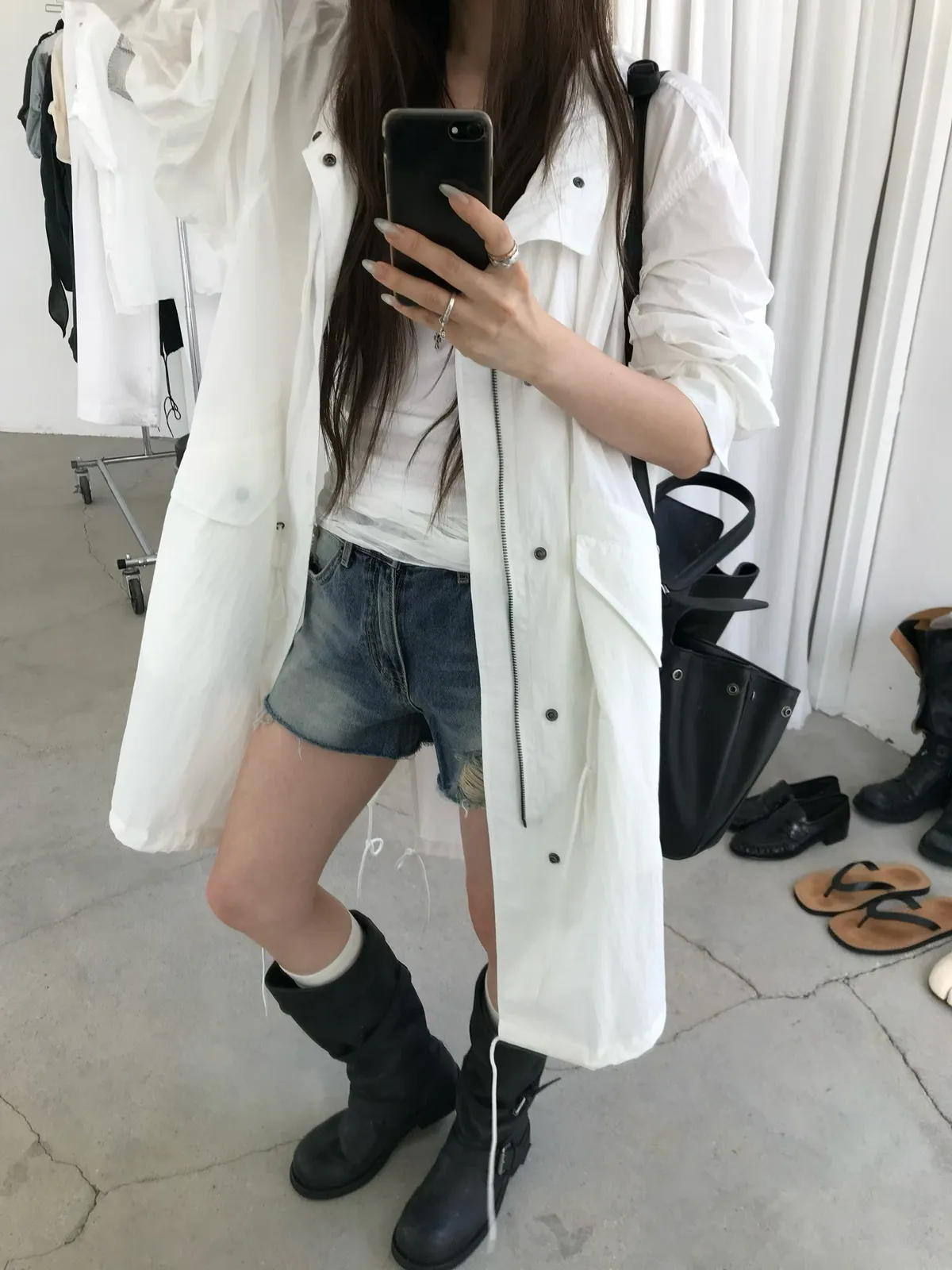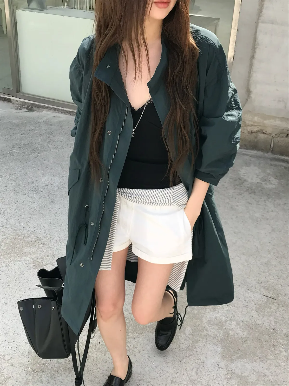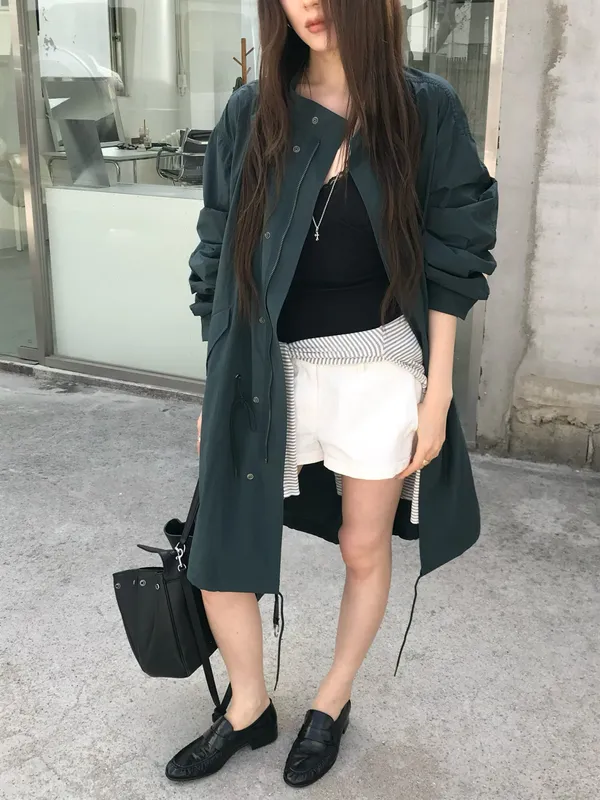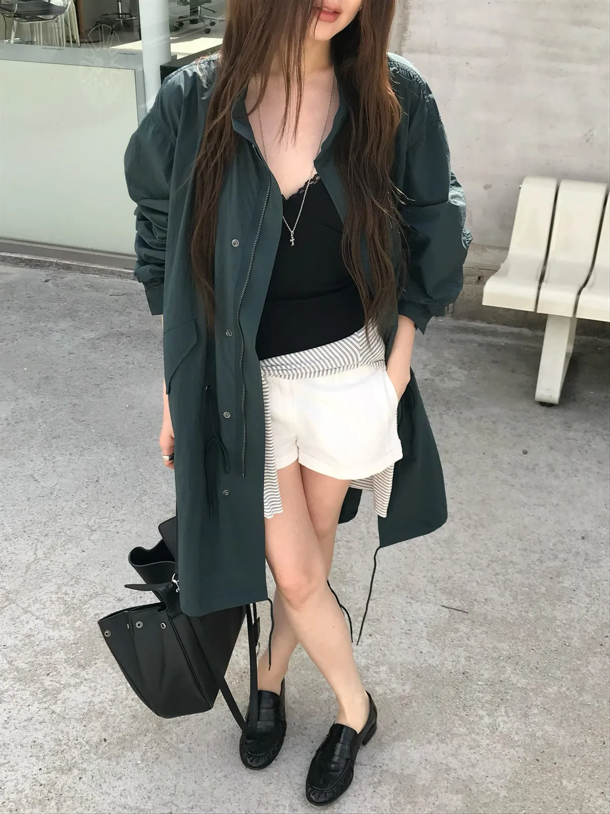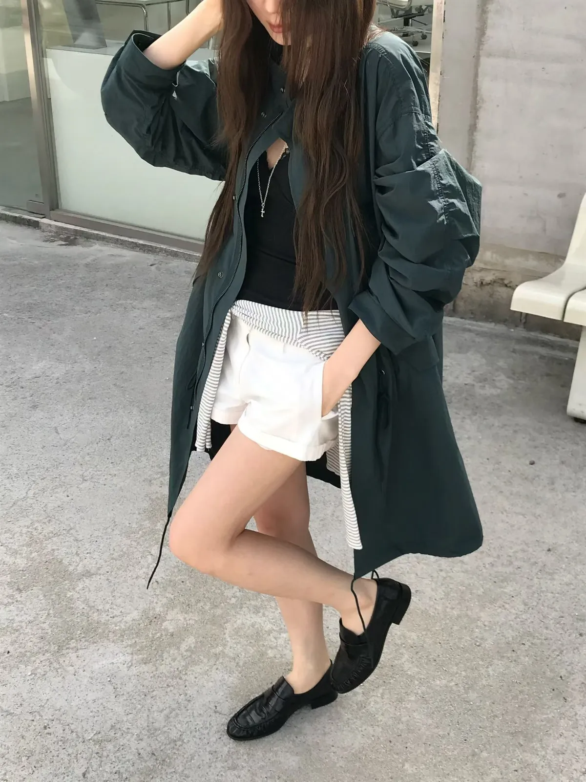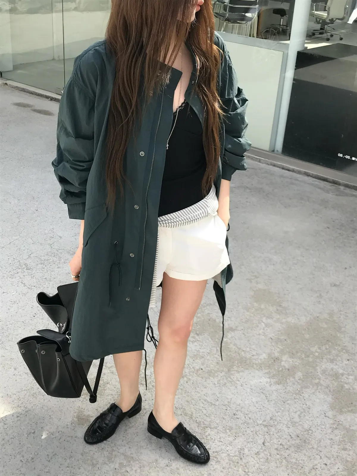 26EJ11 中長版尼龍防風縮腰風衣外套 2色