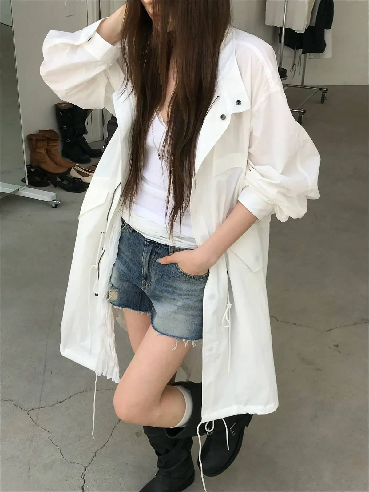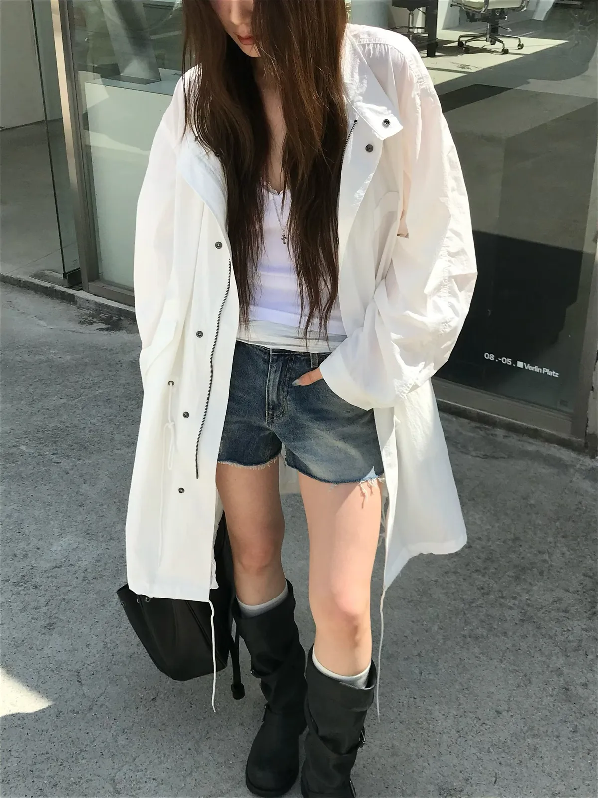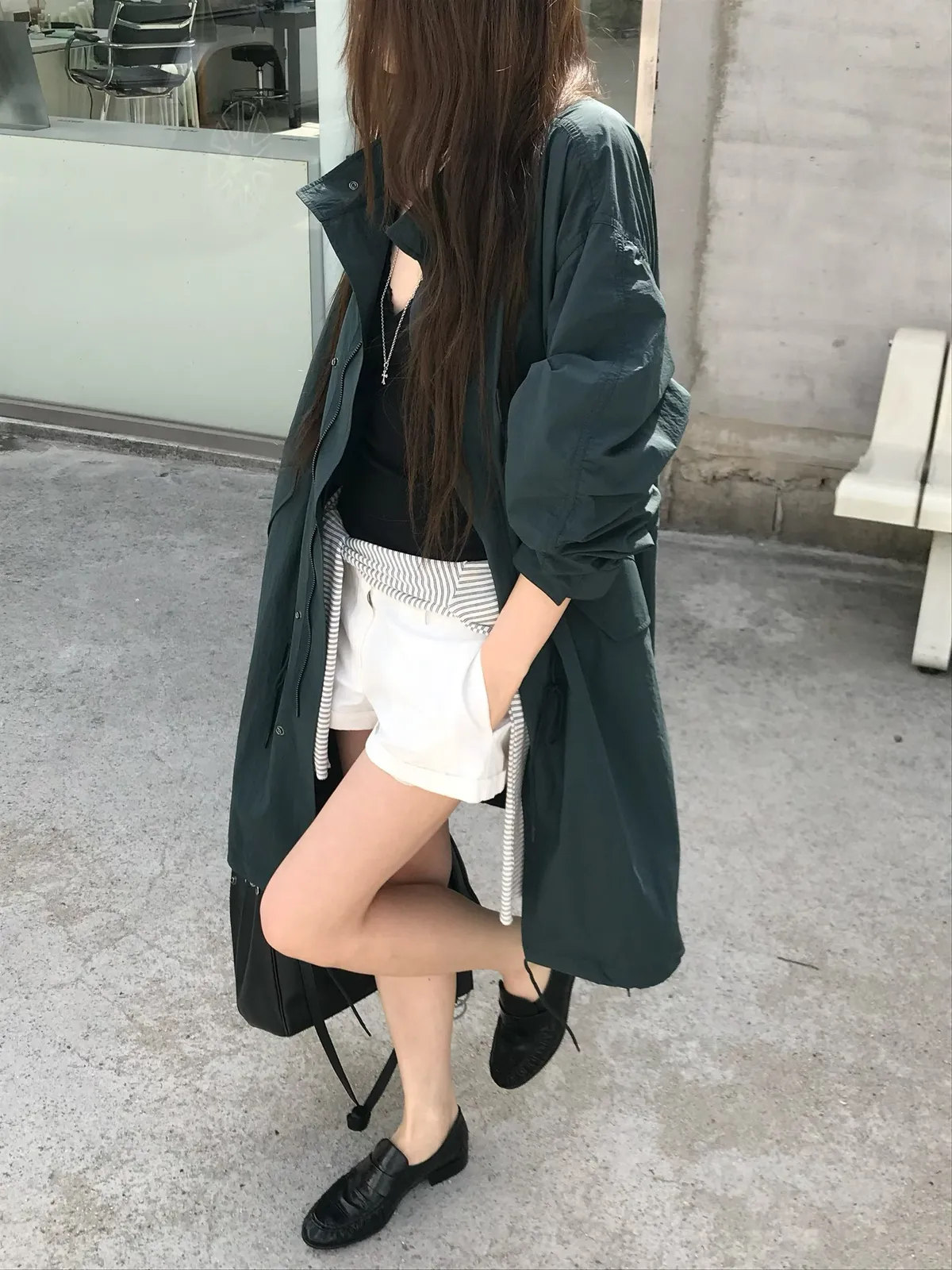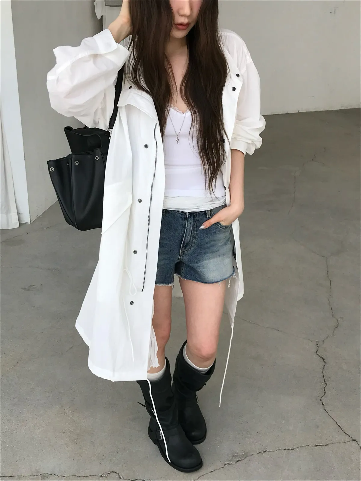 26EJ11 中長版尼龍防風縮腰風衣外套 2色