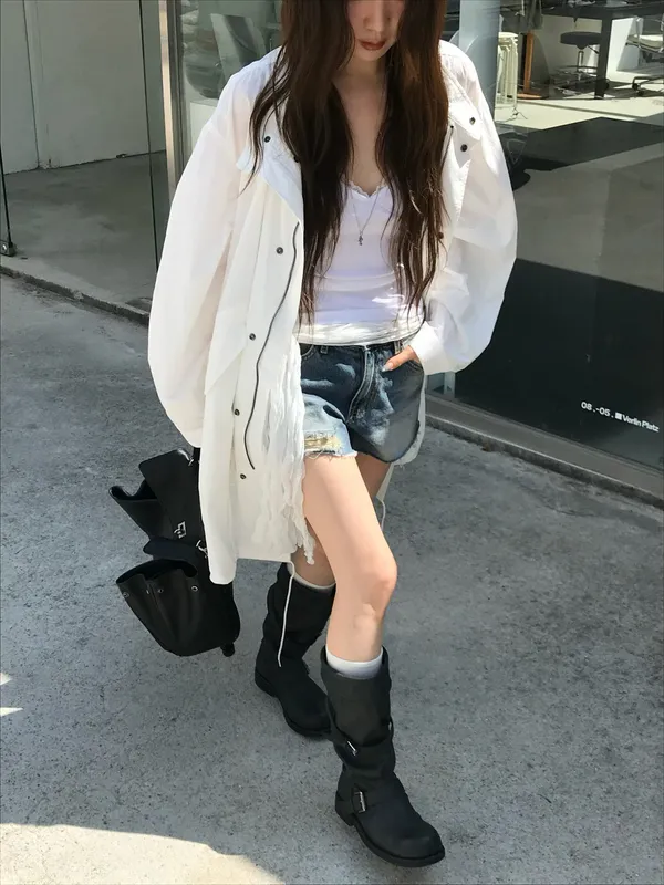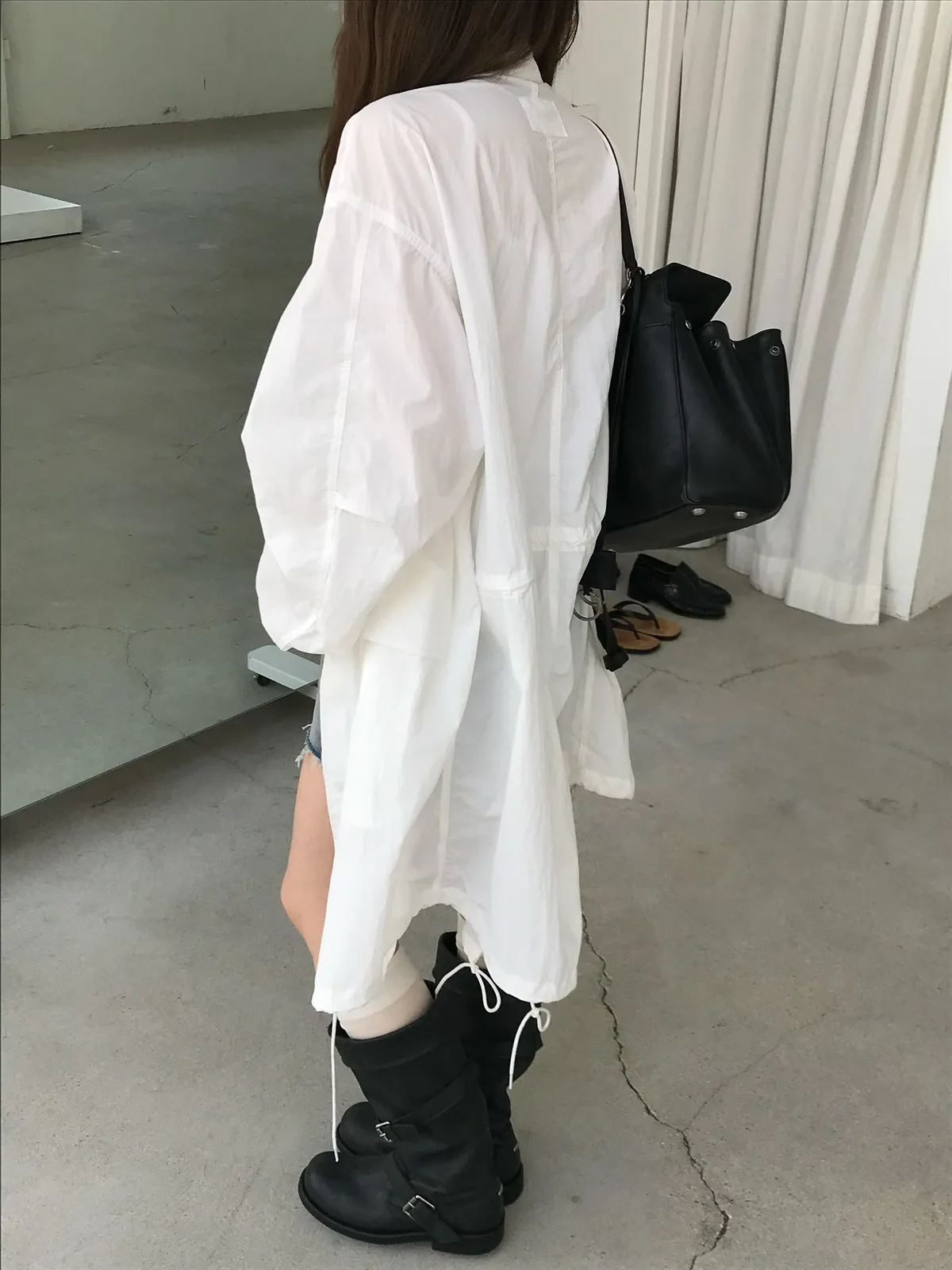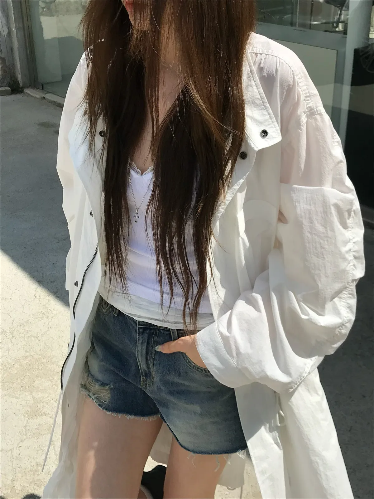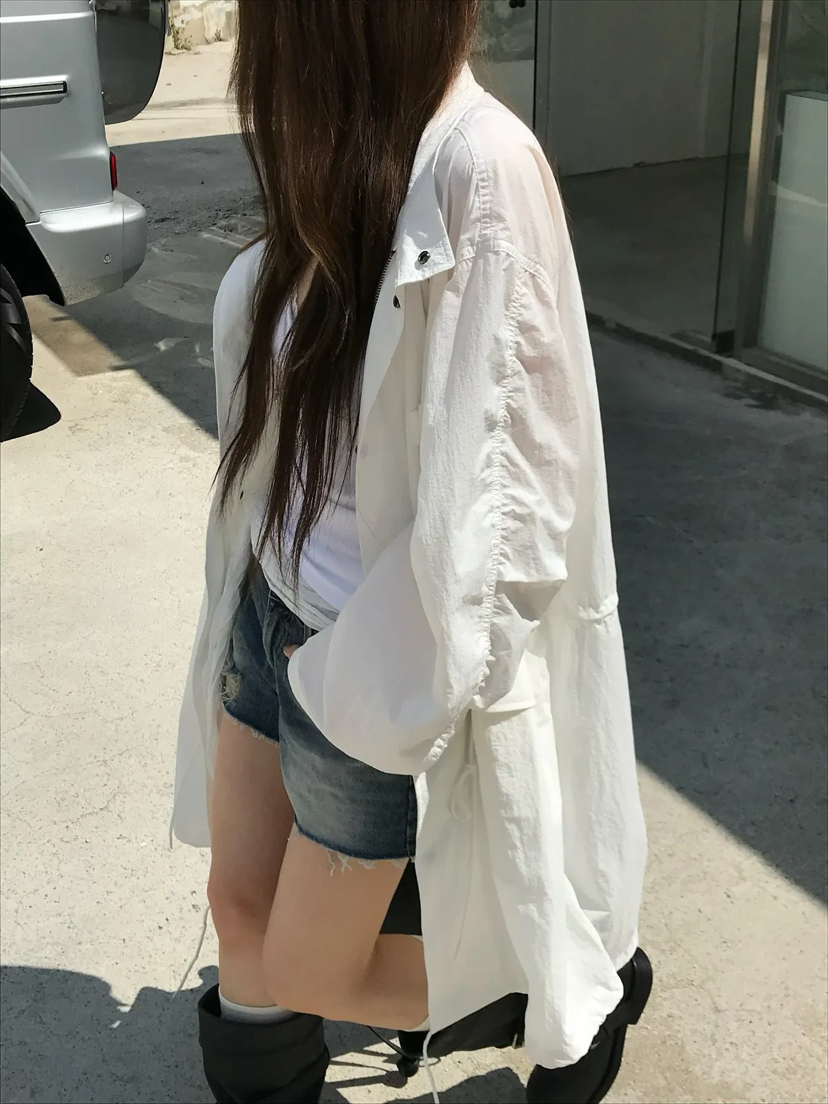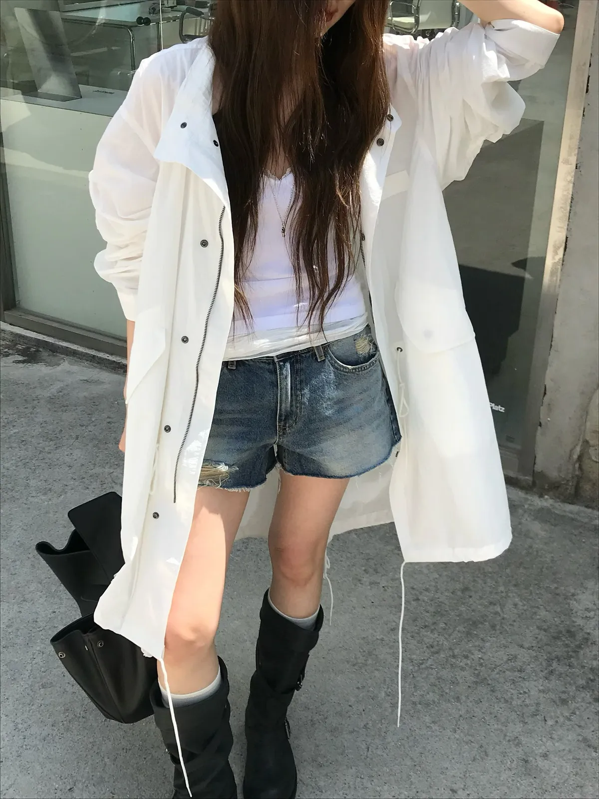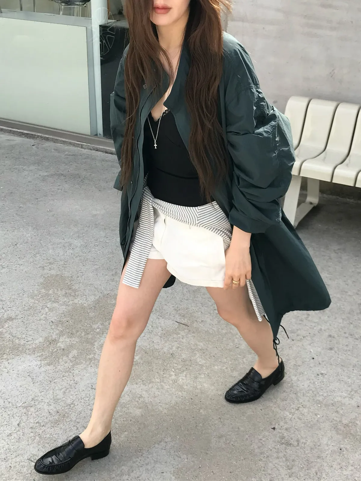 26EJ11 中長版尼龍防風縮腰風衣外套 2色