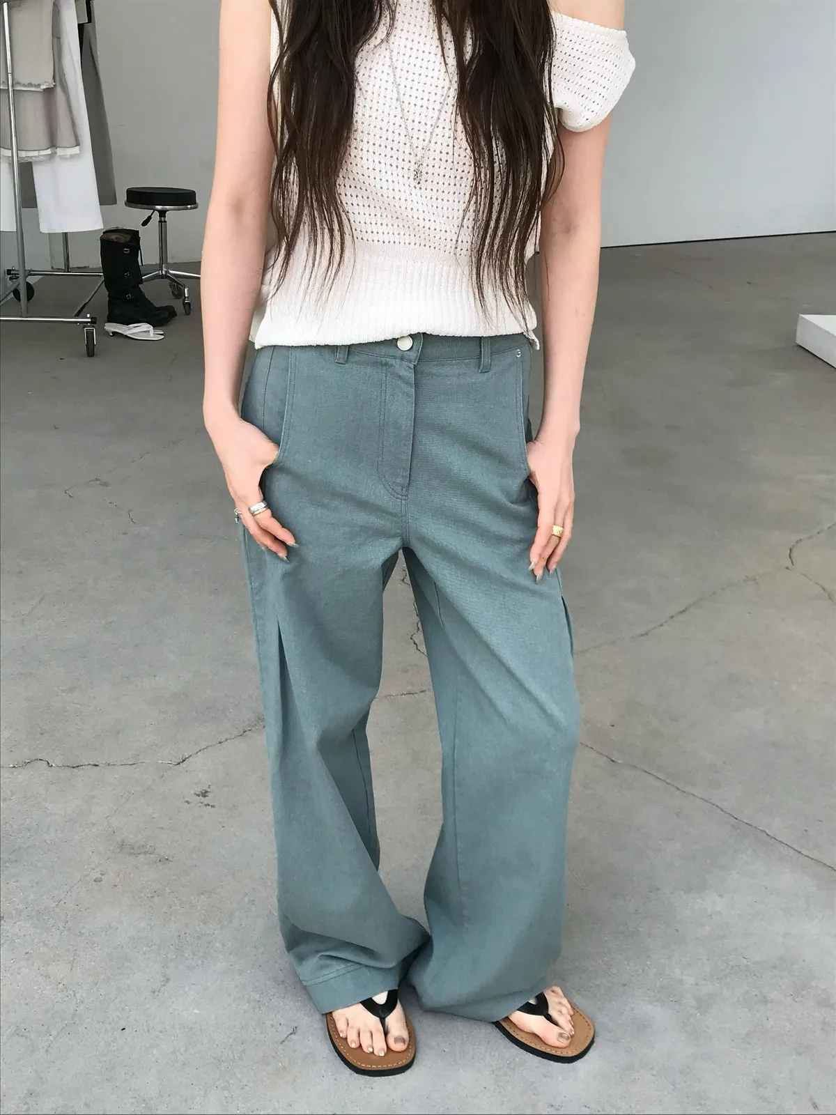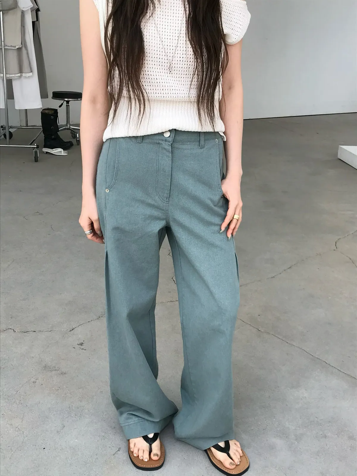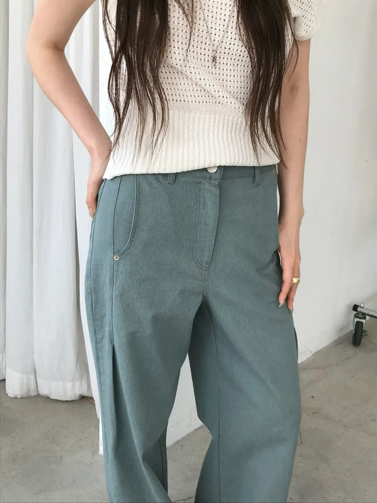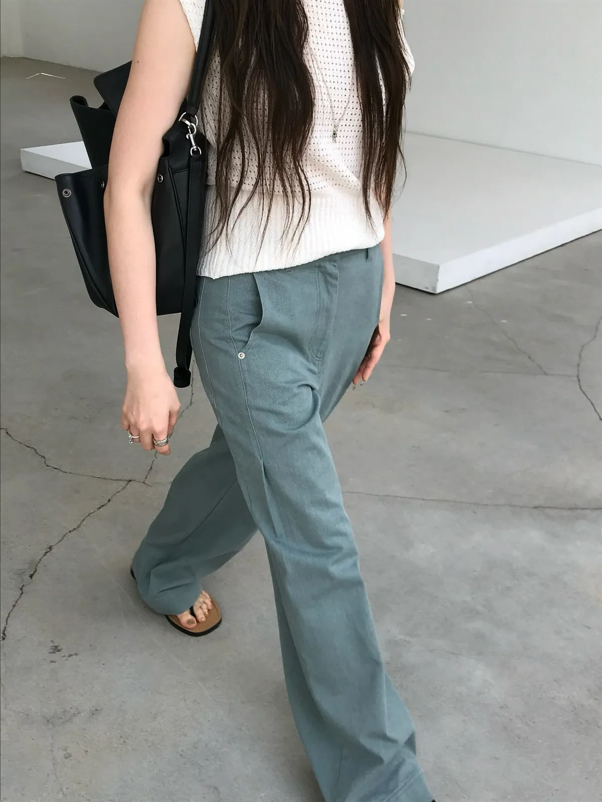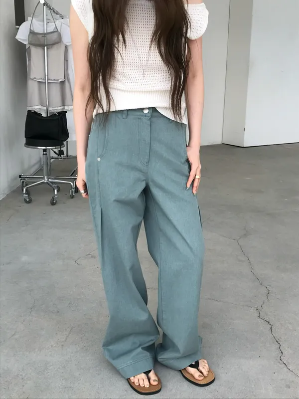 26EJ14 薄斜紋洗色霧霧直腿長褲 3色 SM