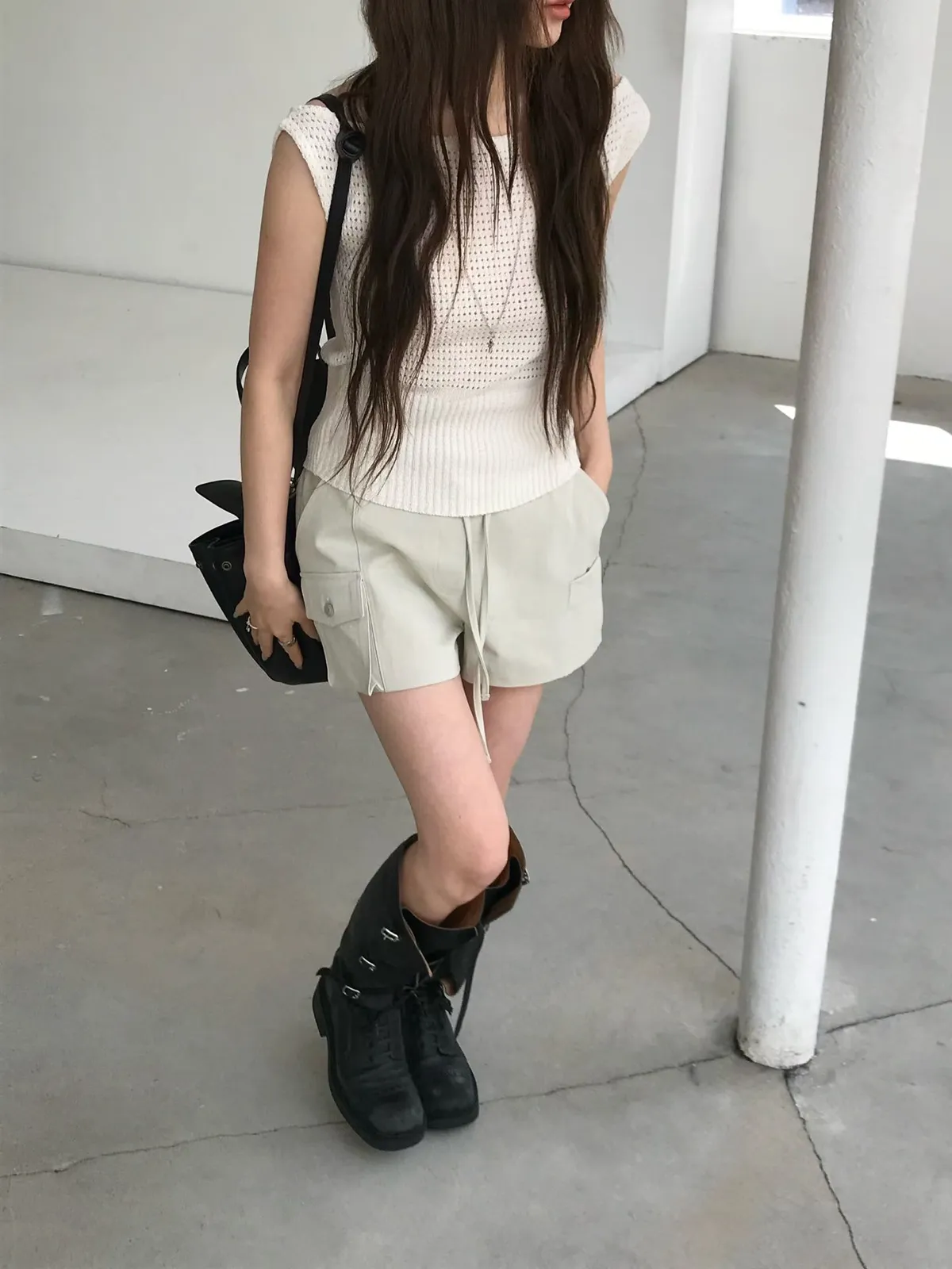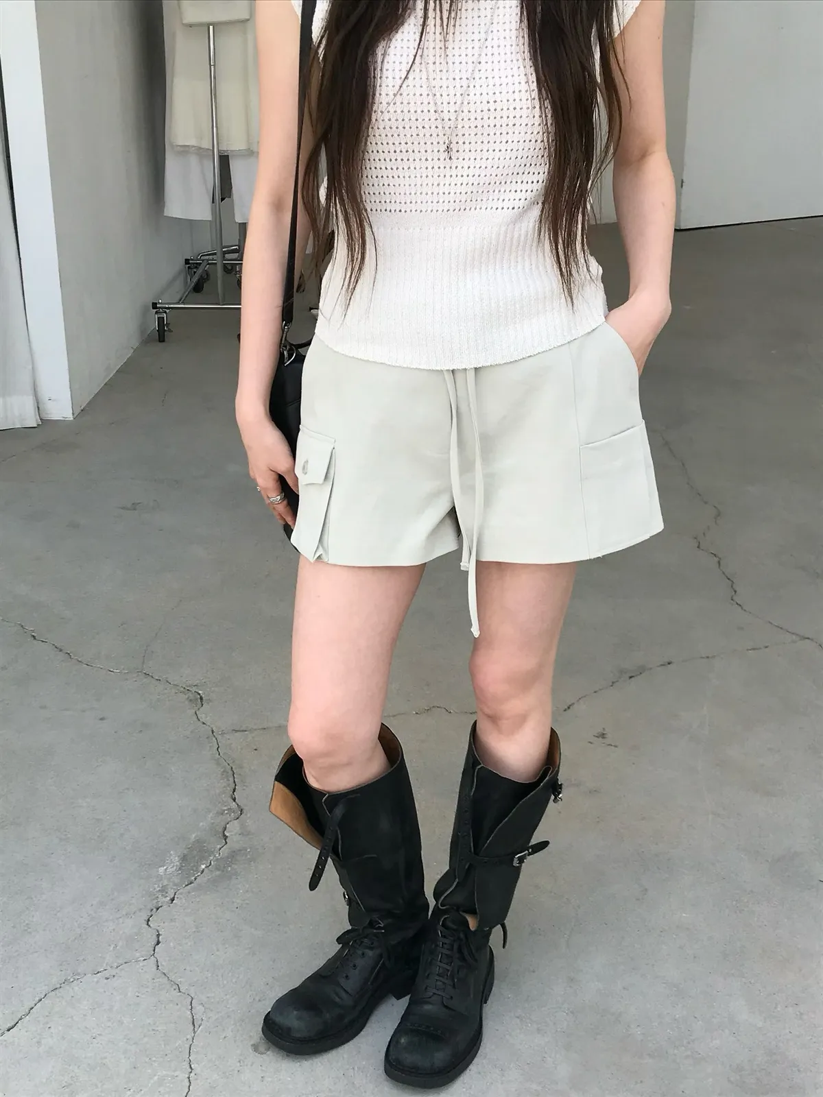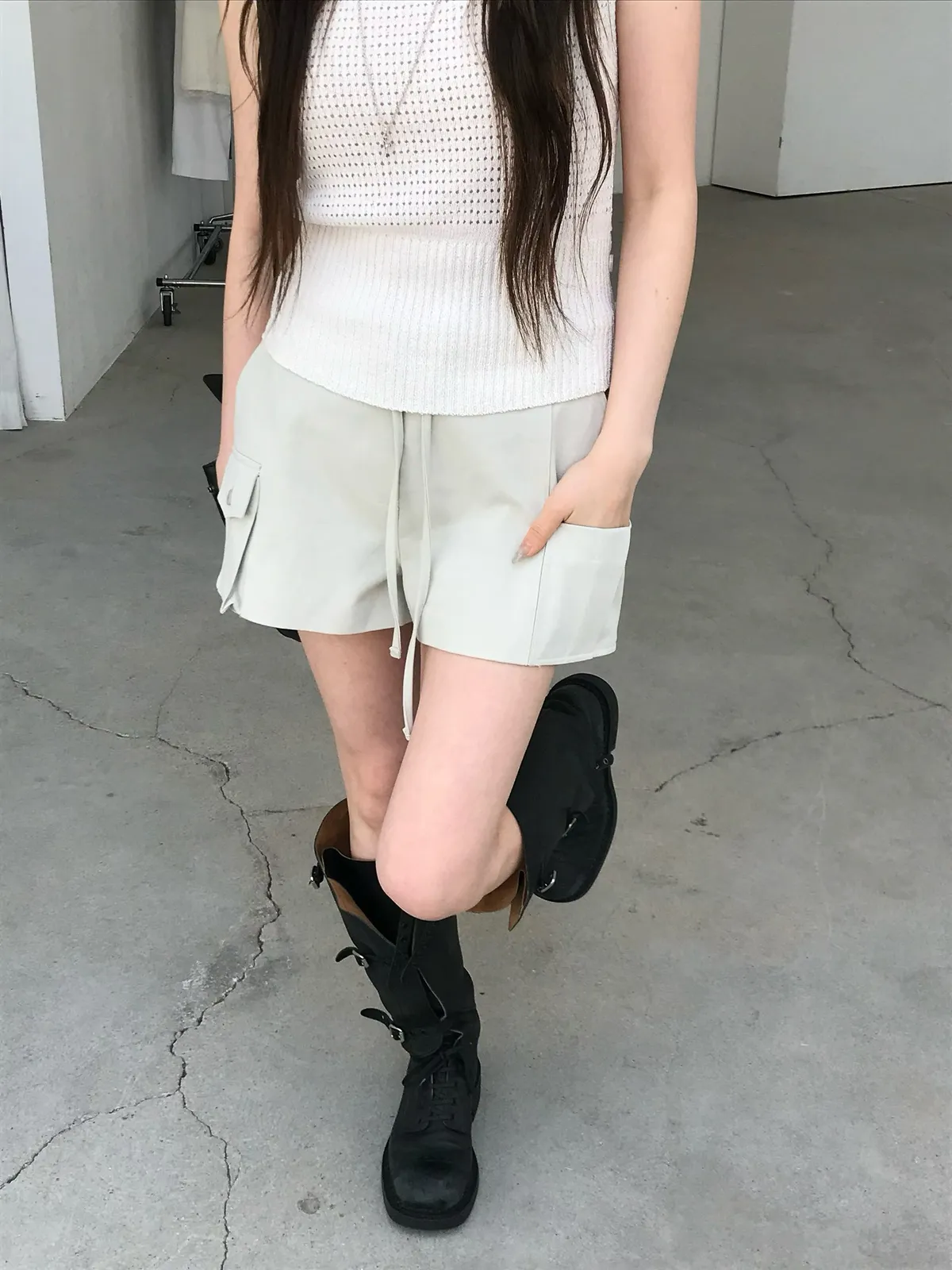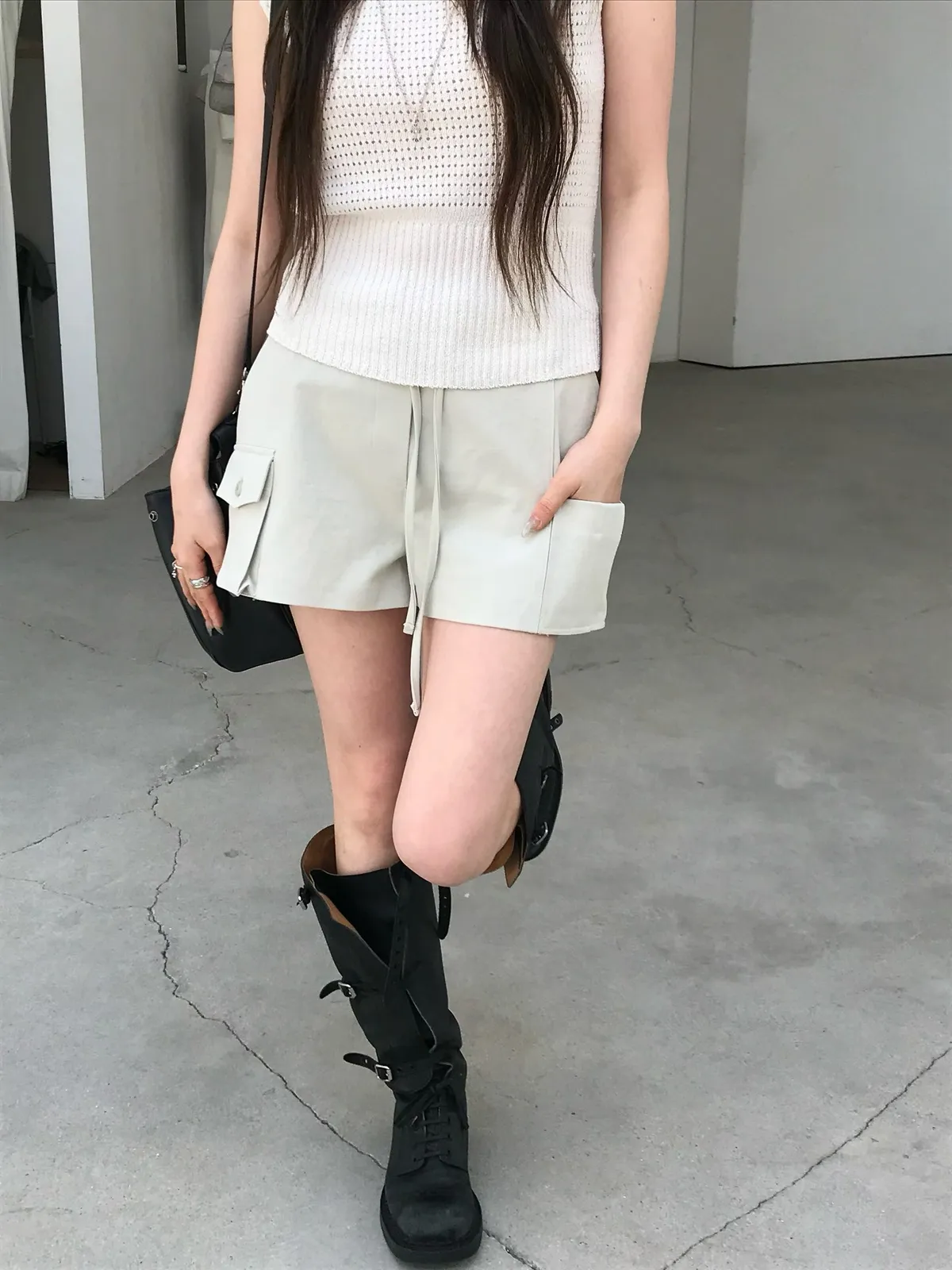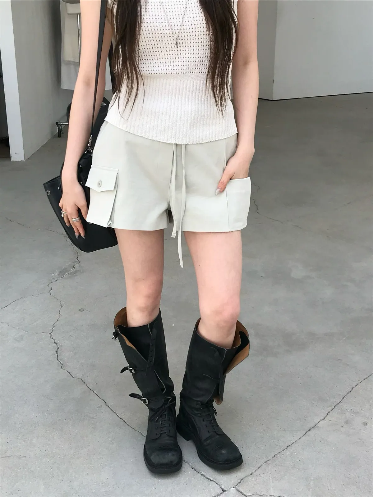 26EJ17 斜紋工裝後鬆緊中低腰短褲 2色