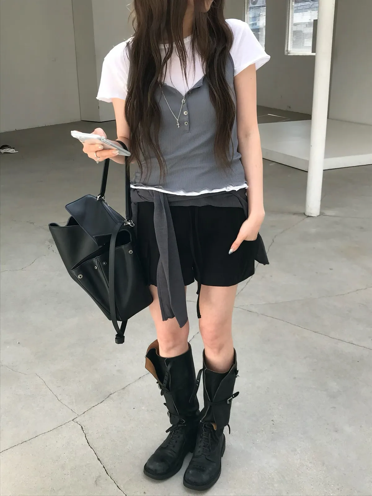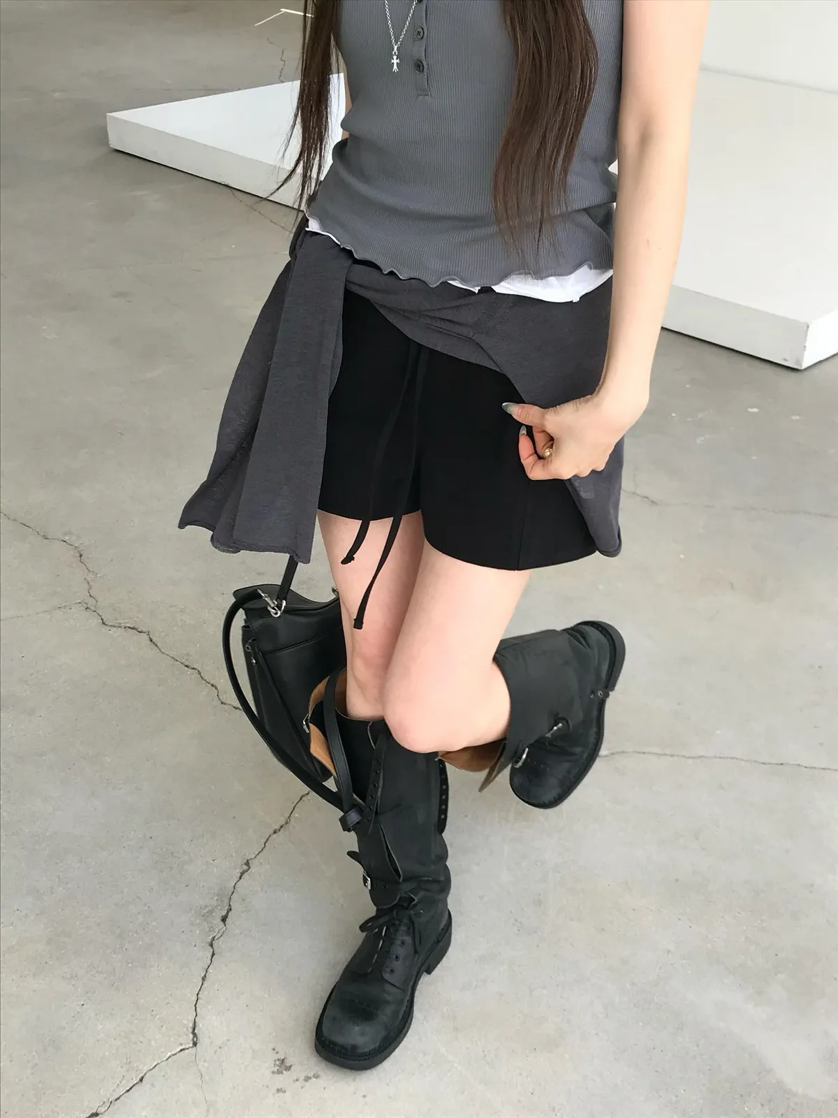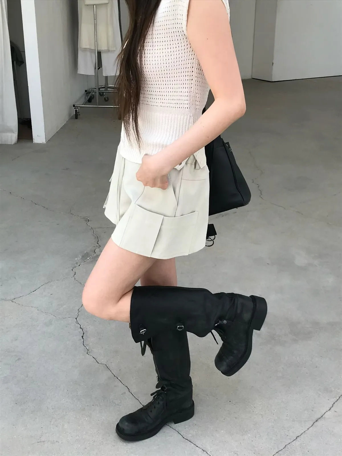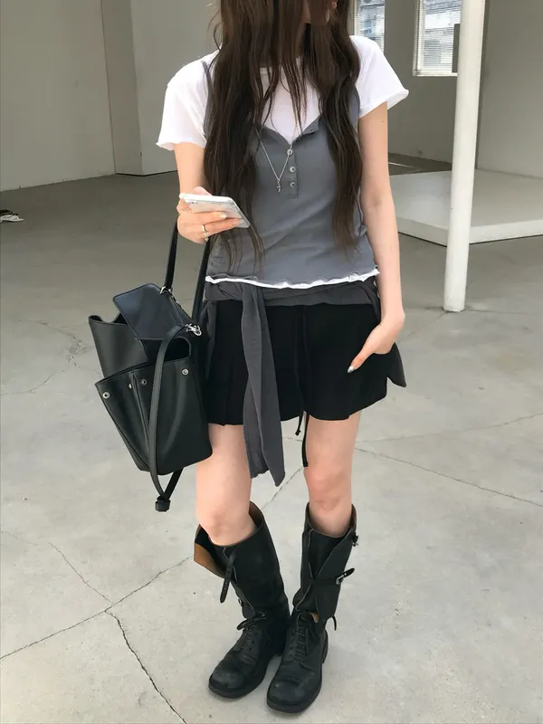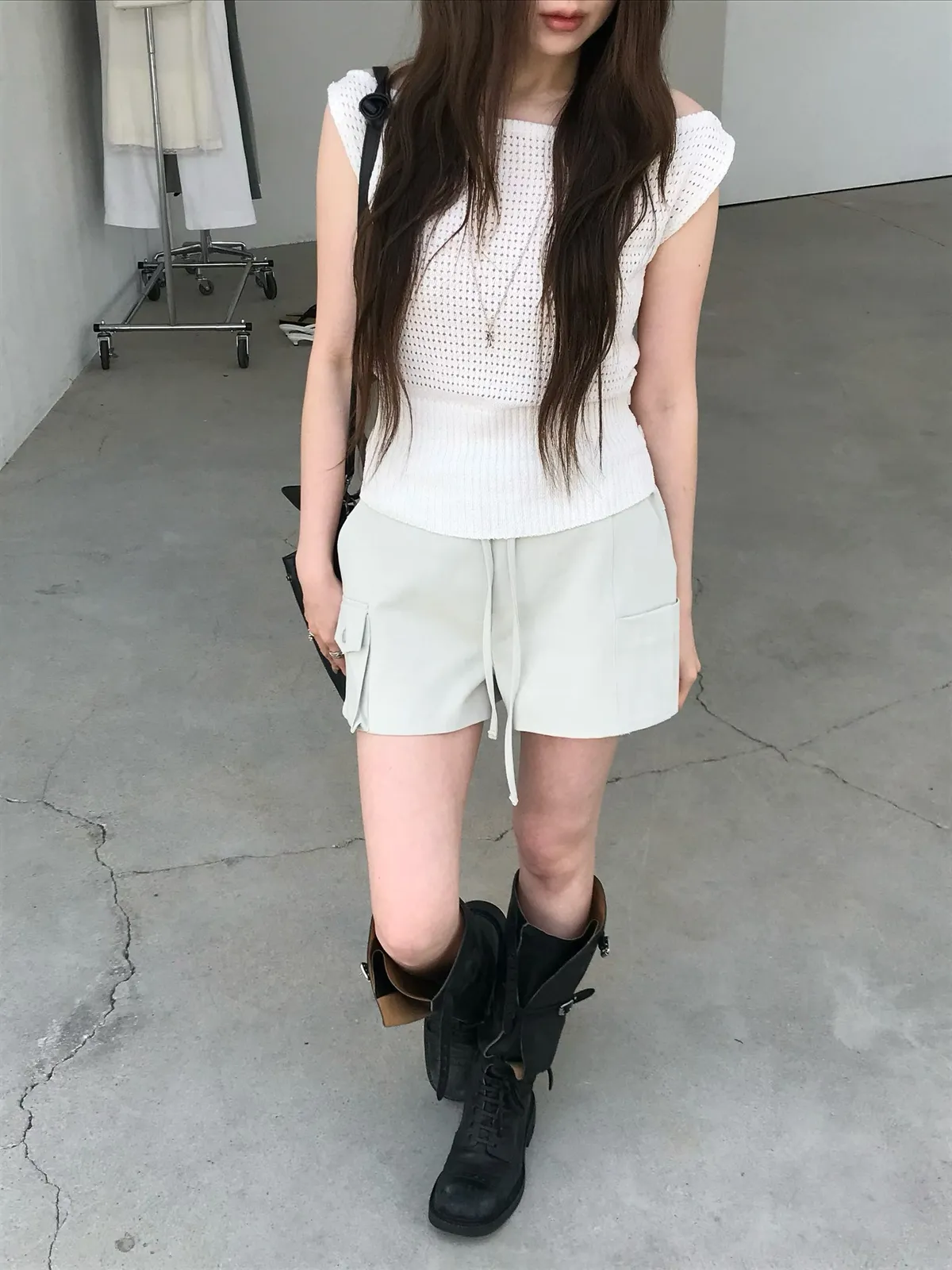 26EJ17 斜紋工裝後鬆緊中低腰短褲 2色