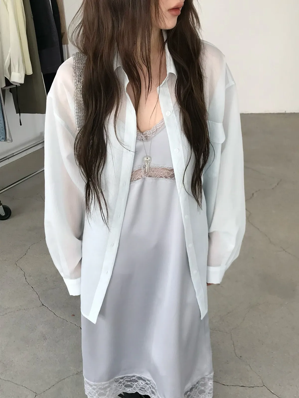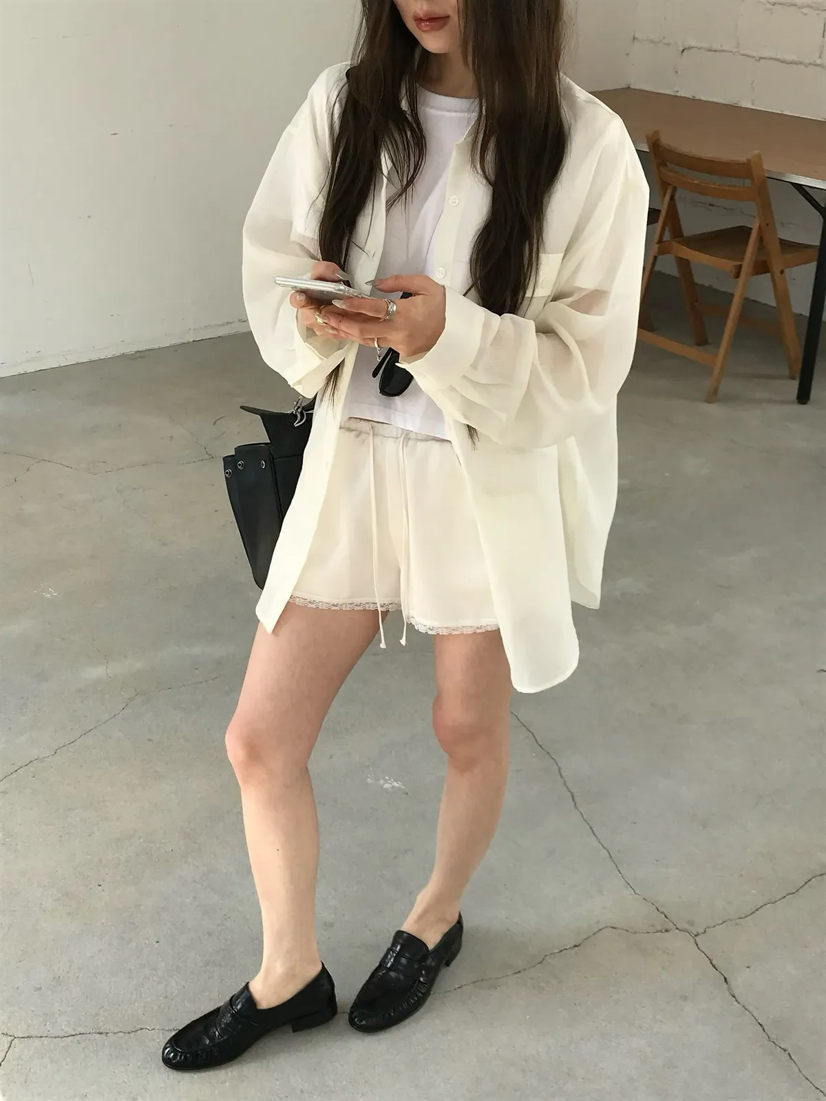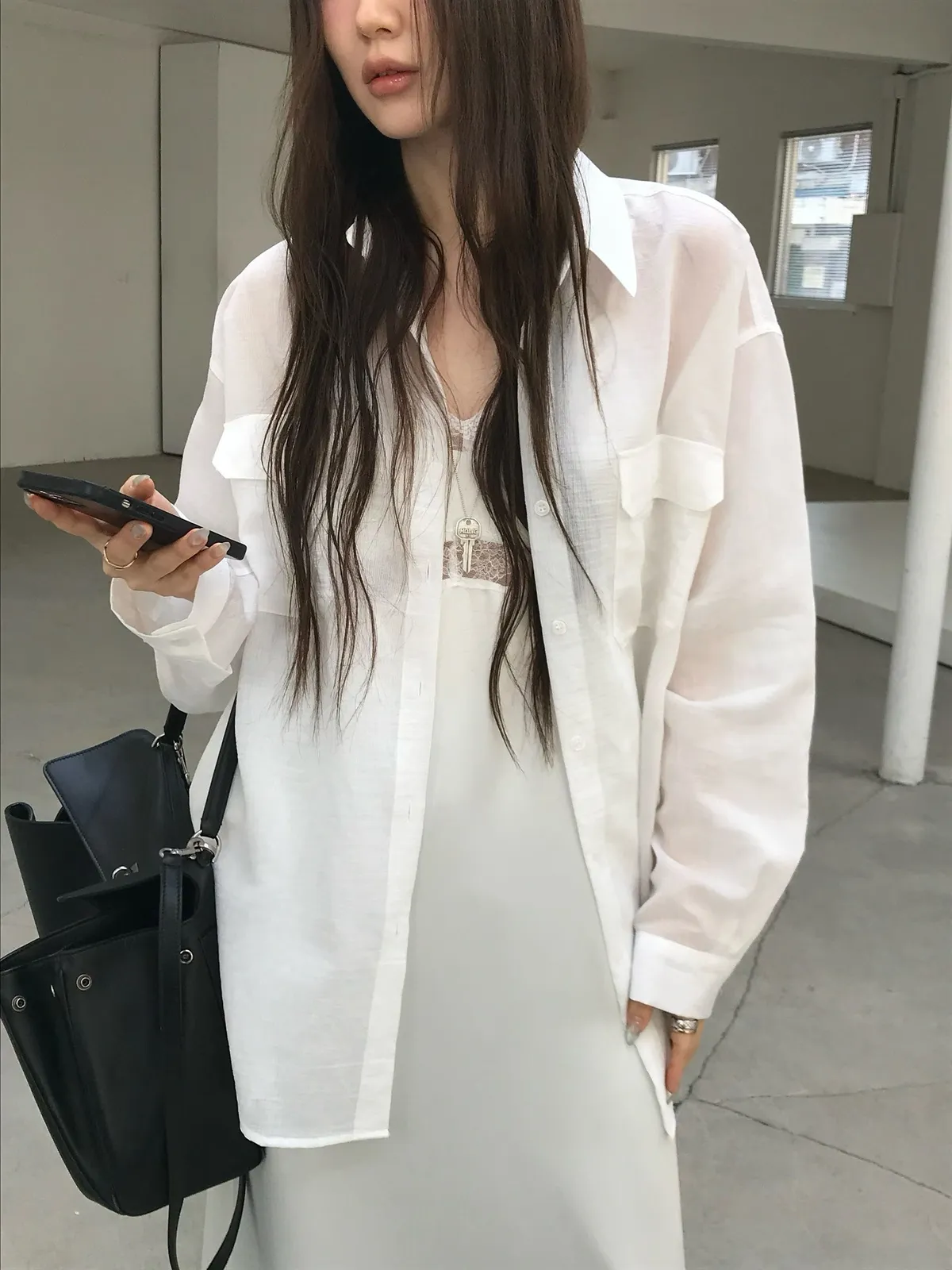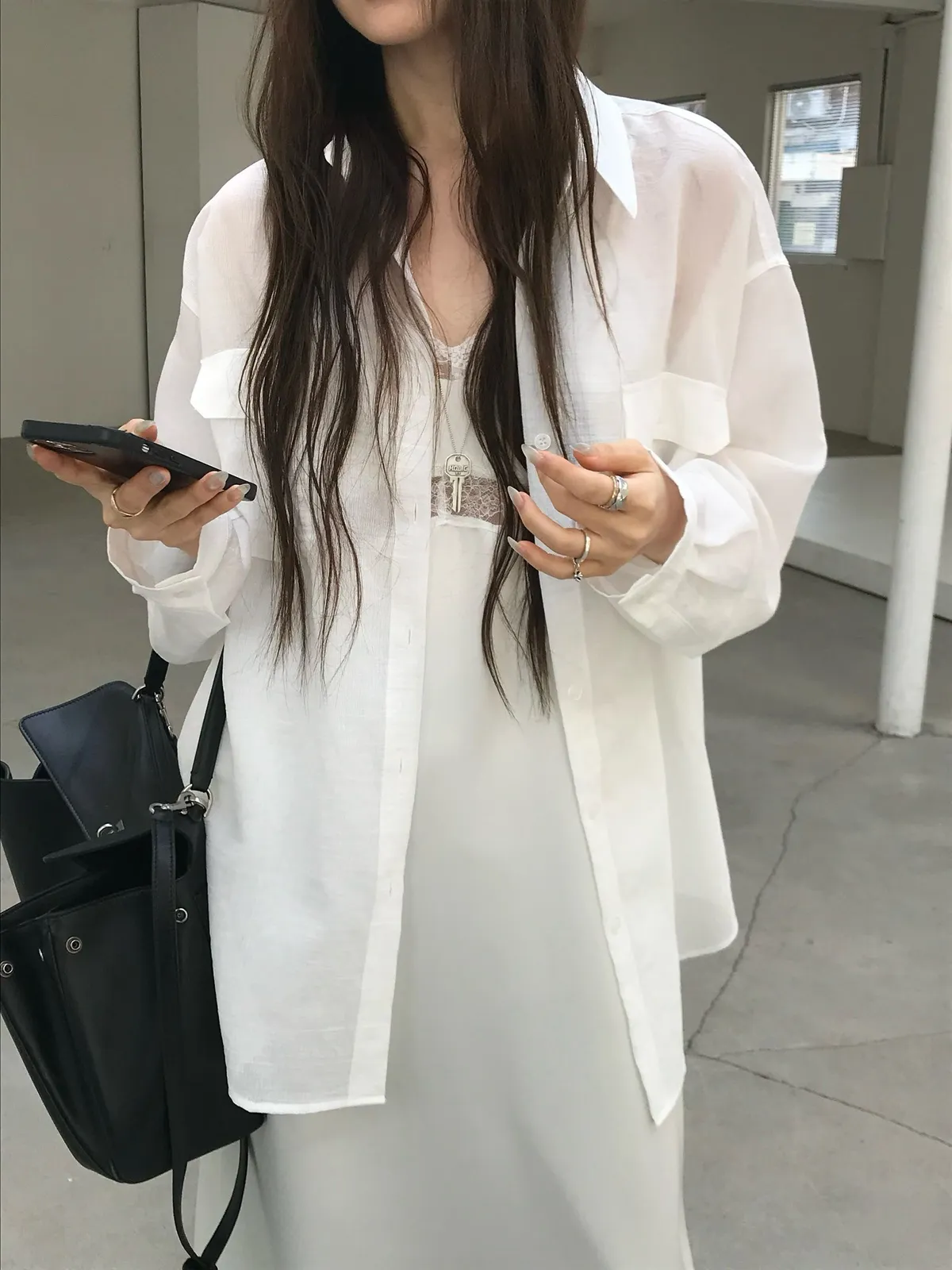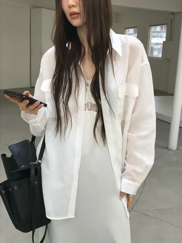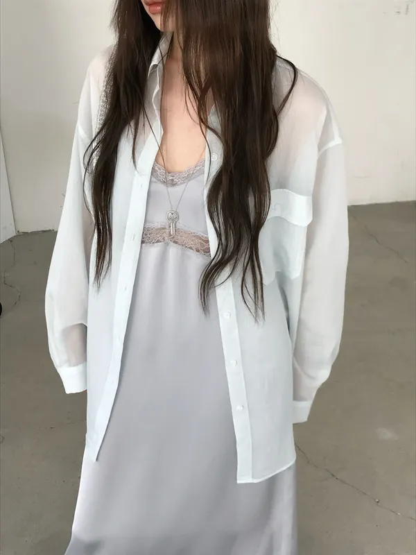 26EJ23 透絲紗感中長版防曬襯衫 3色