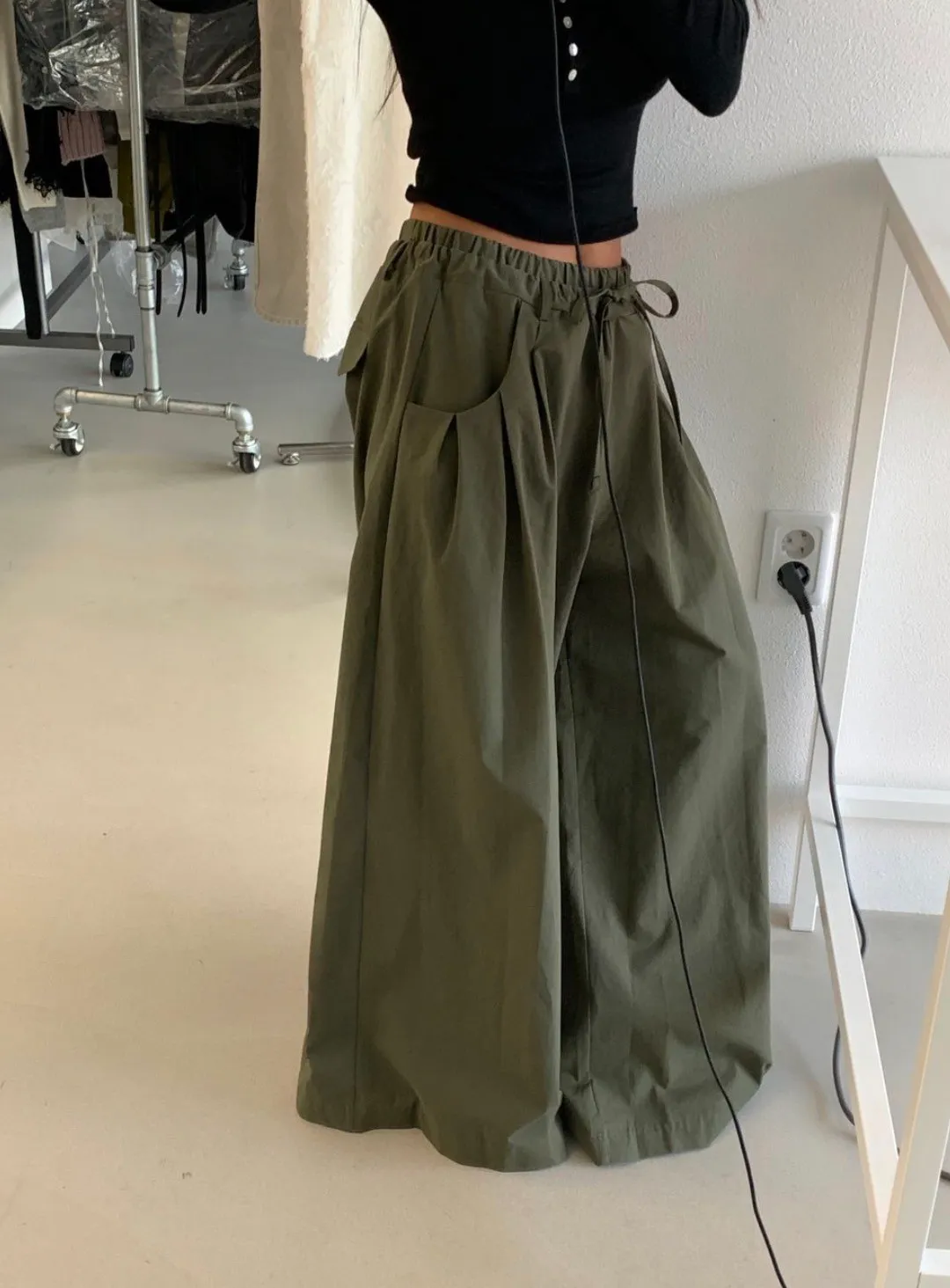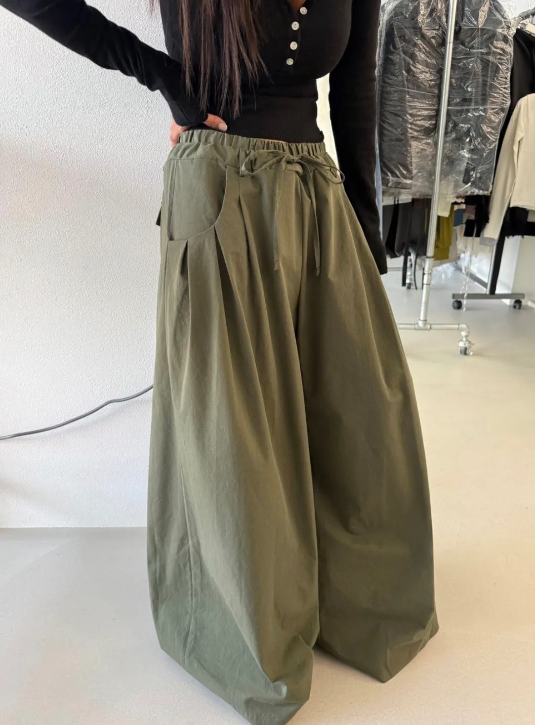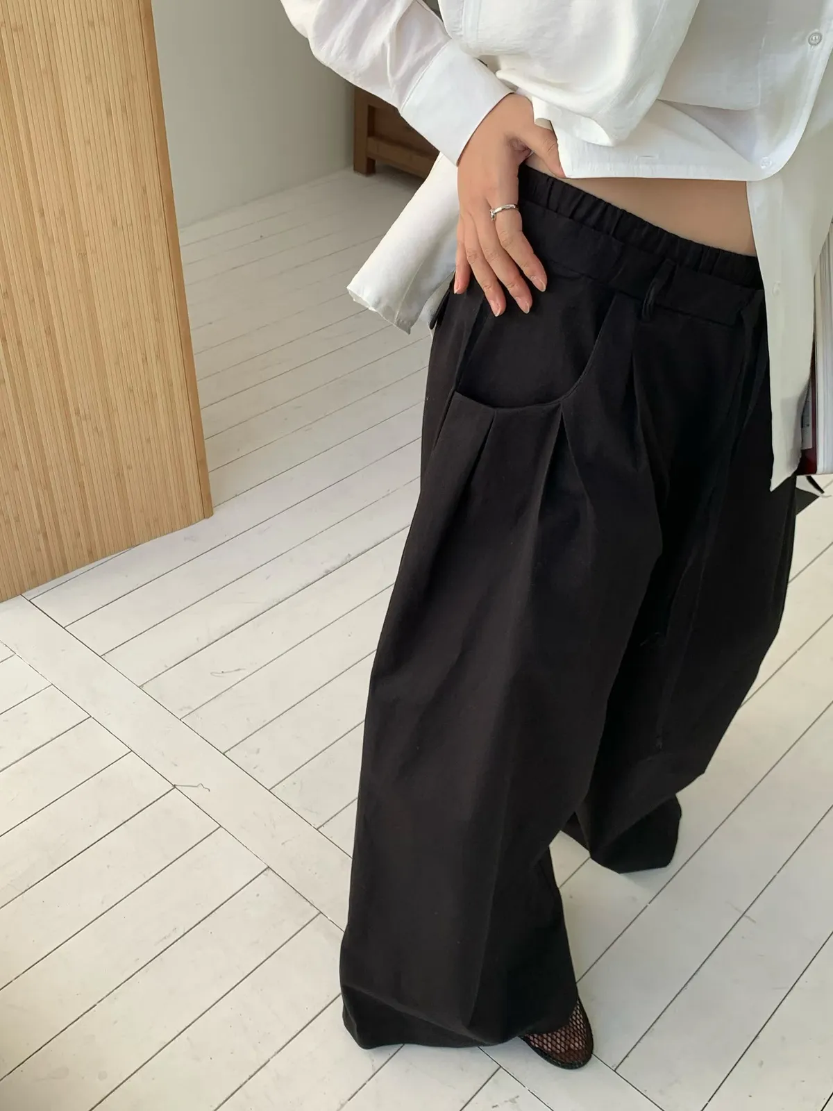 26ES04 鬆緊打摺寬管長褲 3色