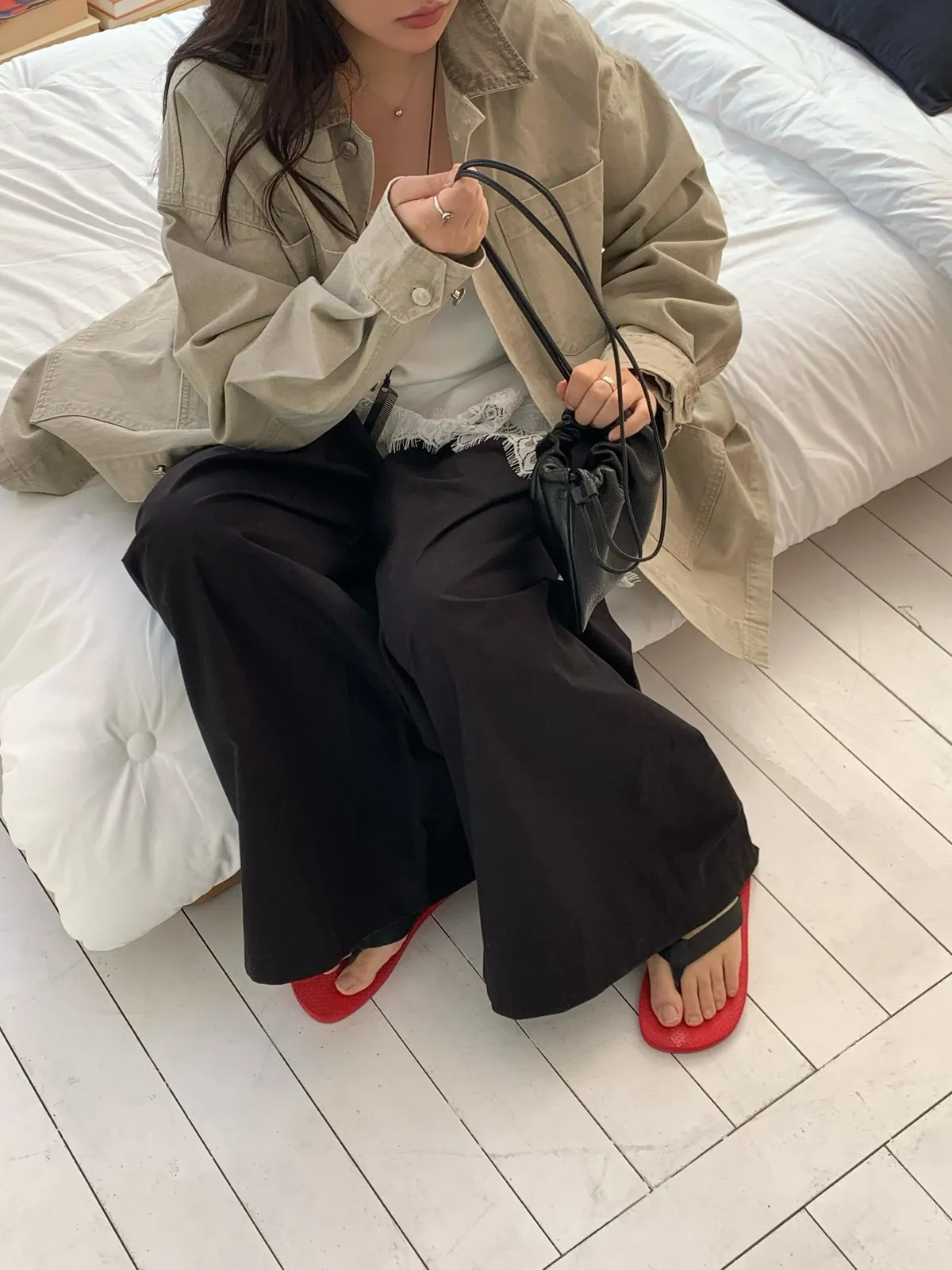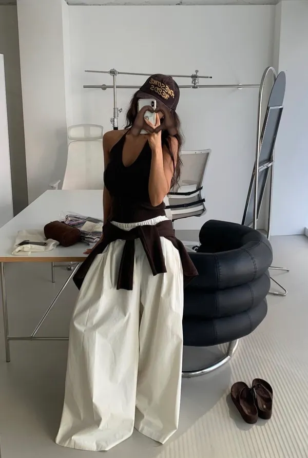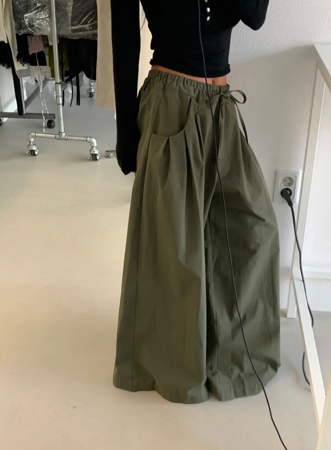 26ES04 鬆緊打摺寬管長褲 3色