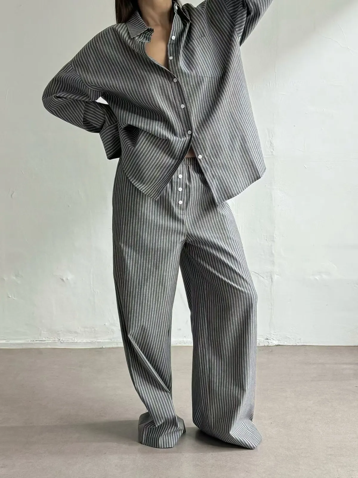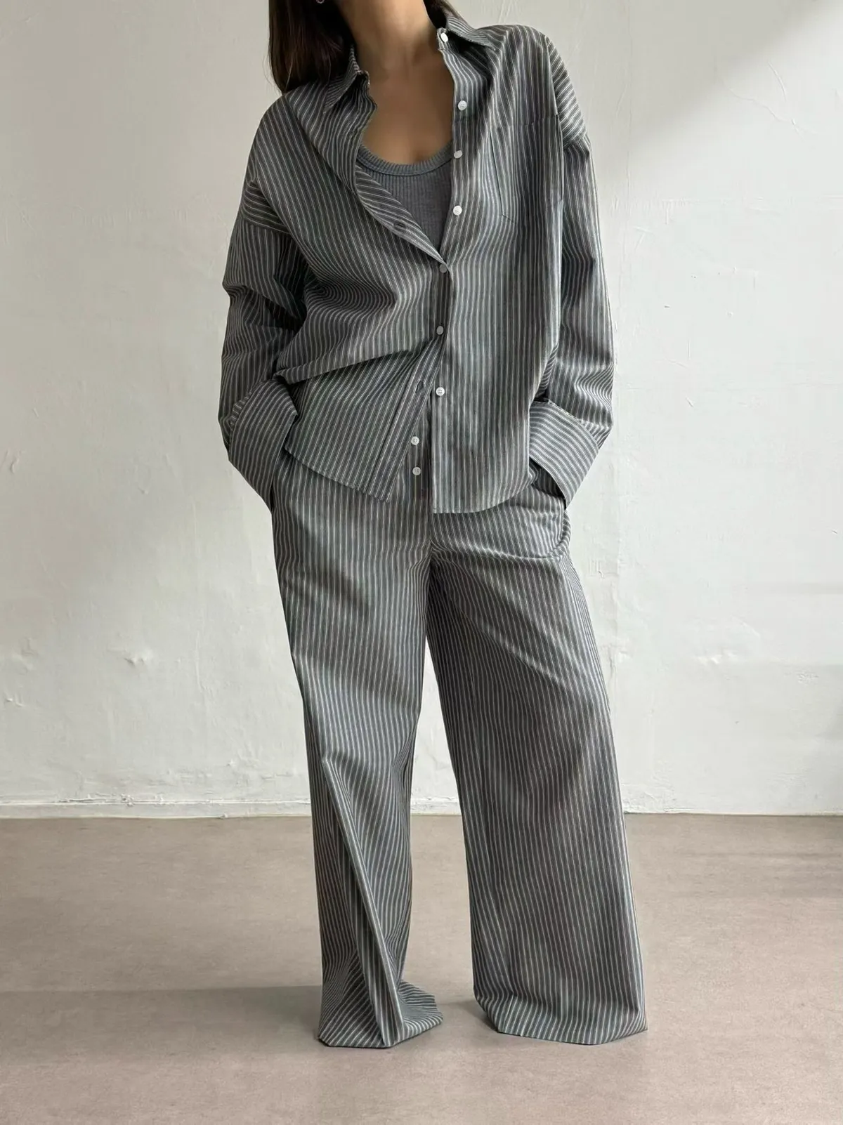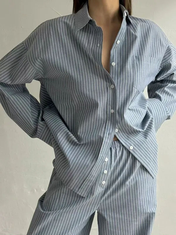 26ES08 直條紋中長版襯衫 2色