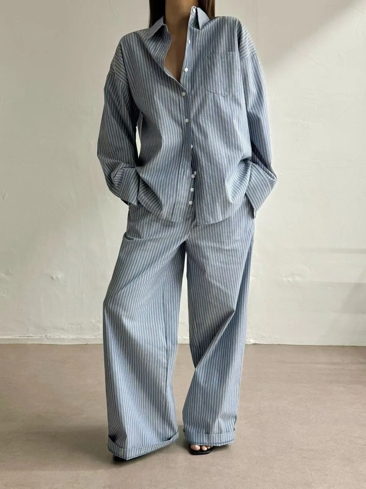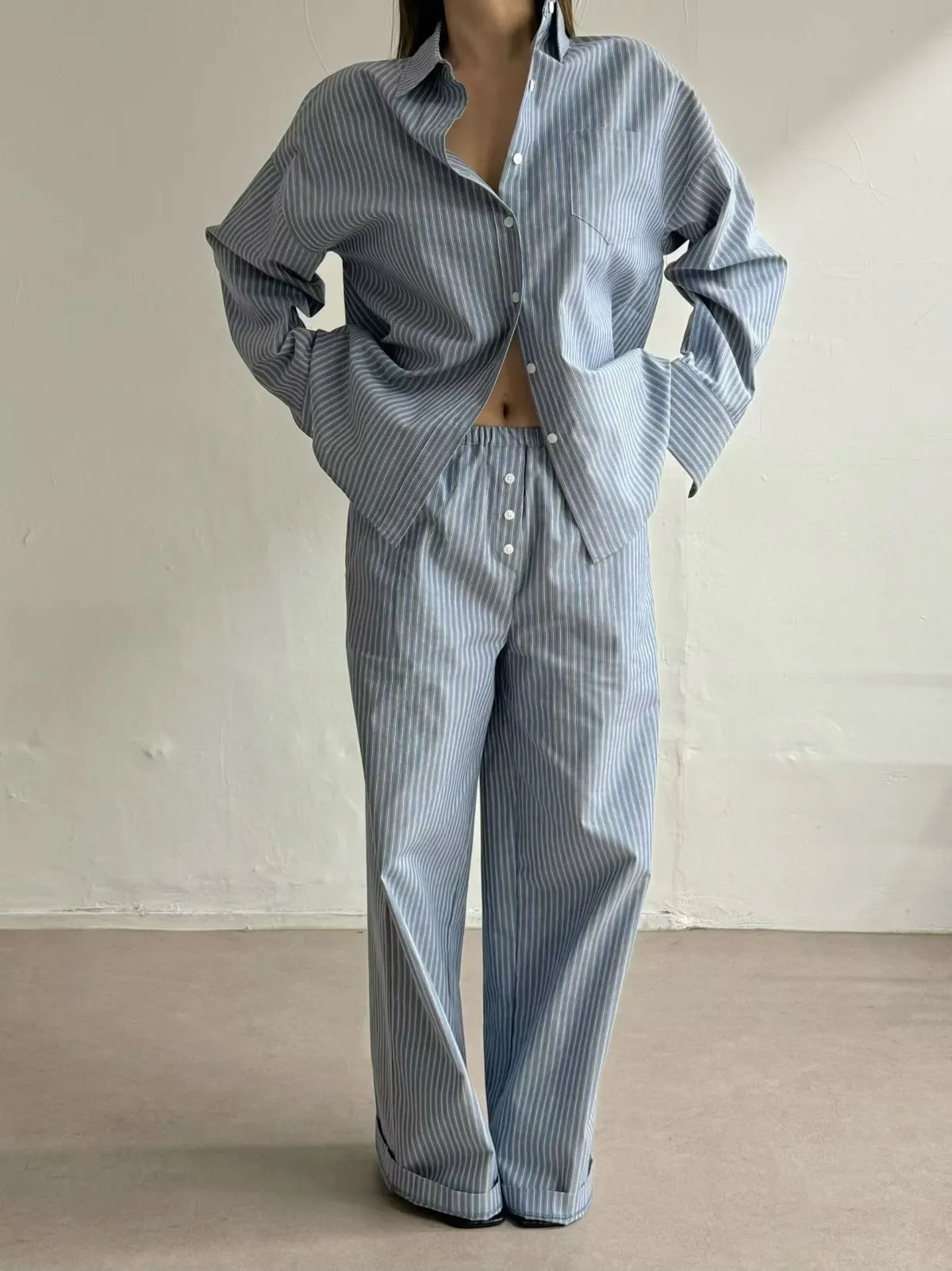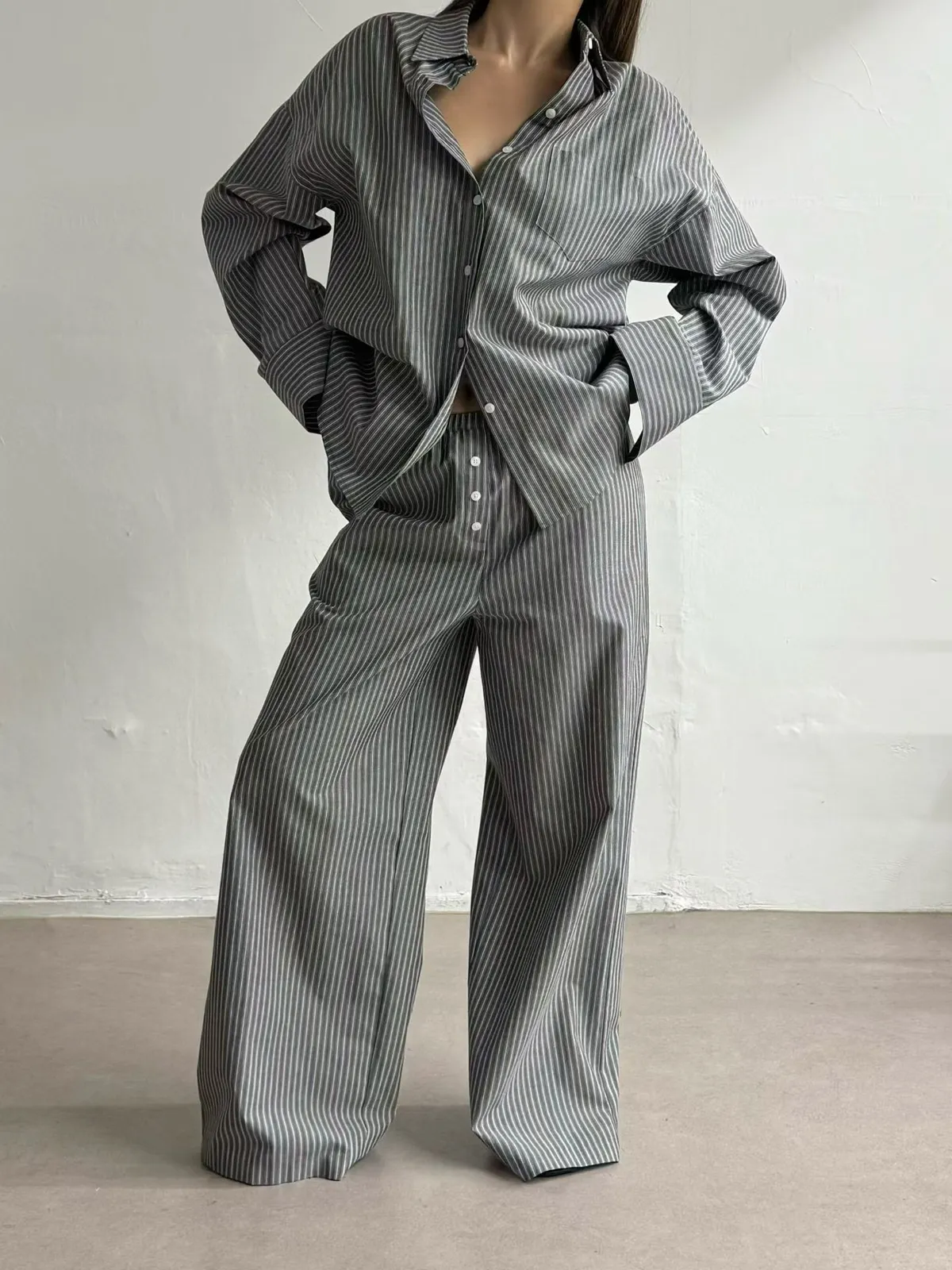 26ES08 直條紋中長版襯衫 2色