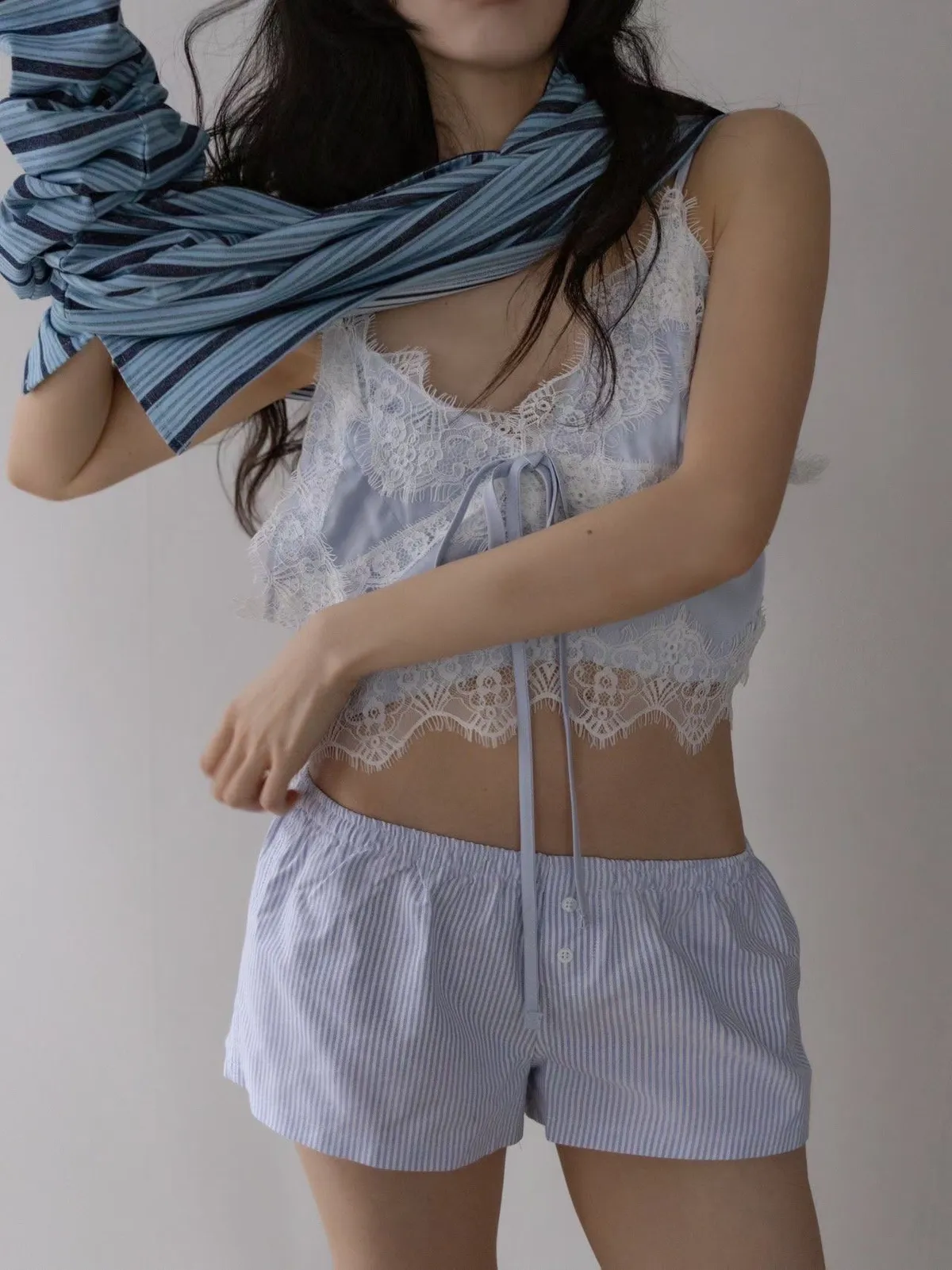 26ES10 緞面蕾絲綁帶細肩帶背心 3色