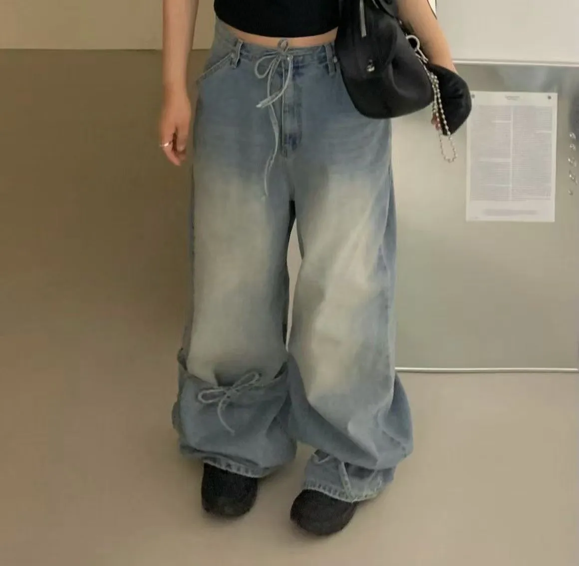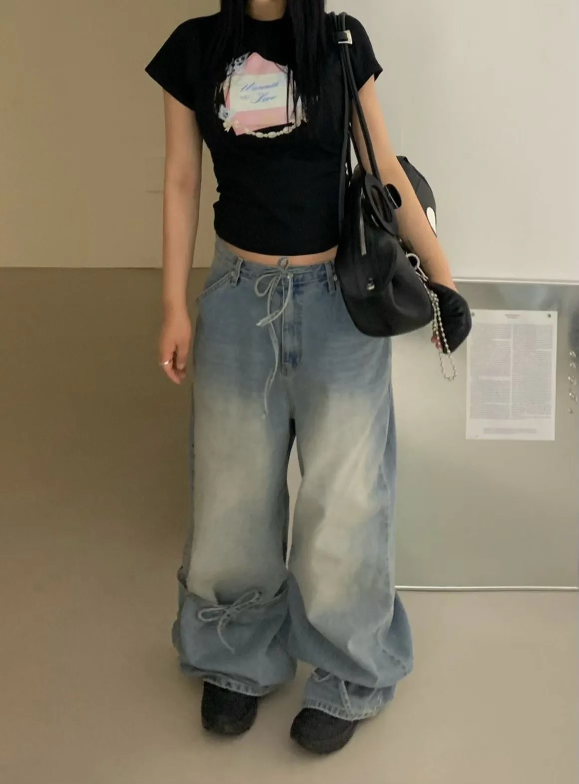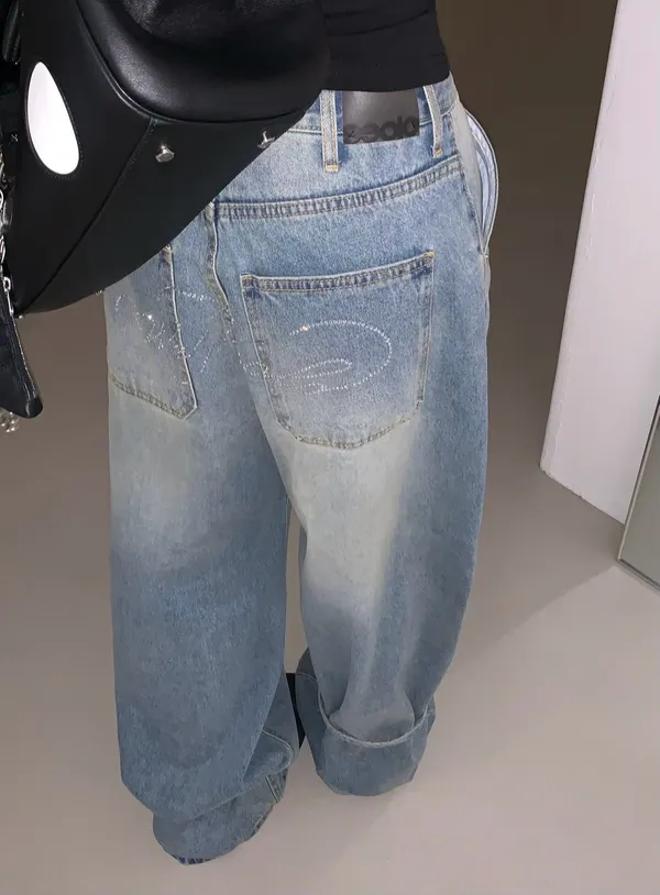 26ES13 英字鑽綁帶蝴蝶結牛仔長褲 SM
