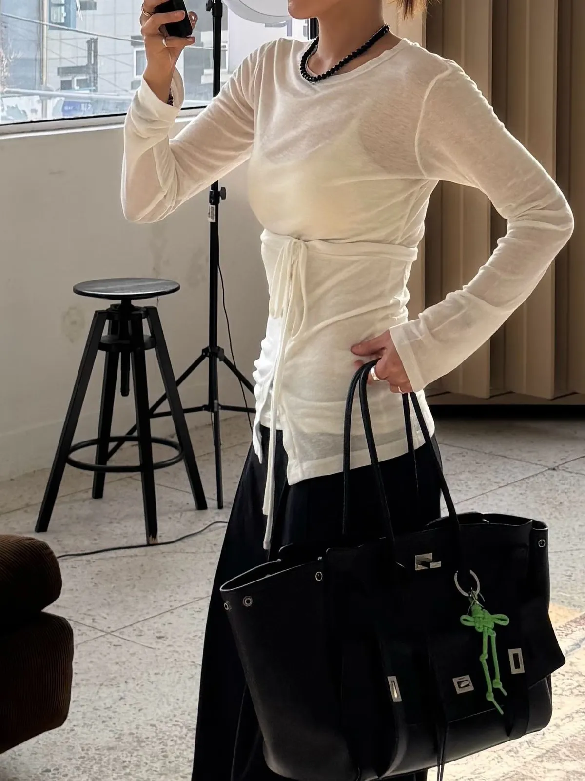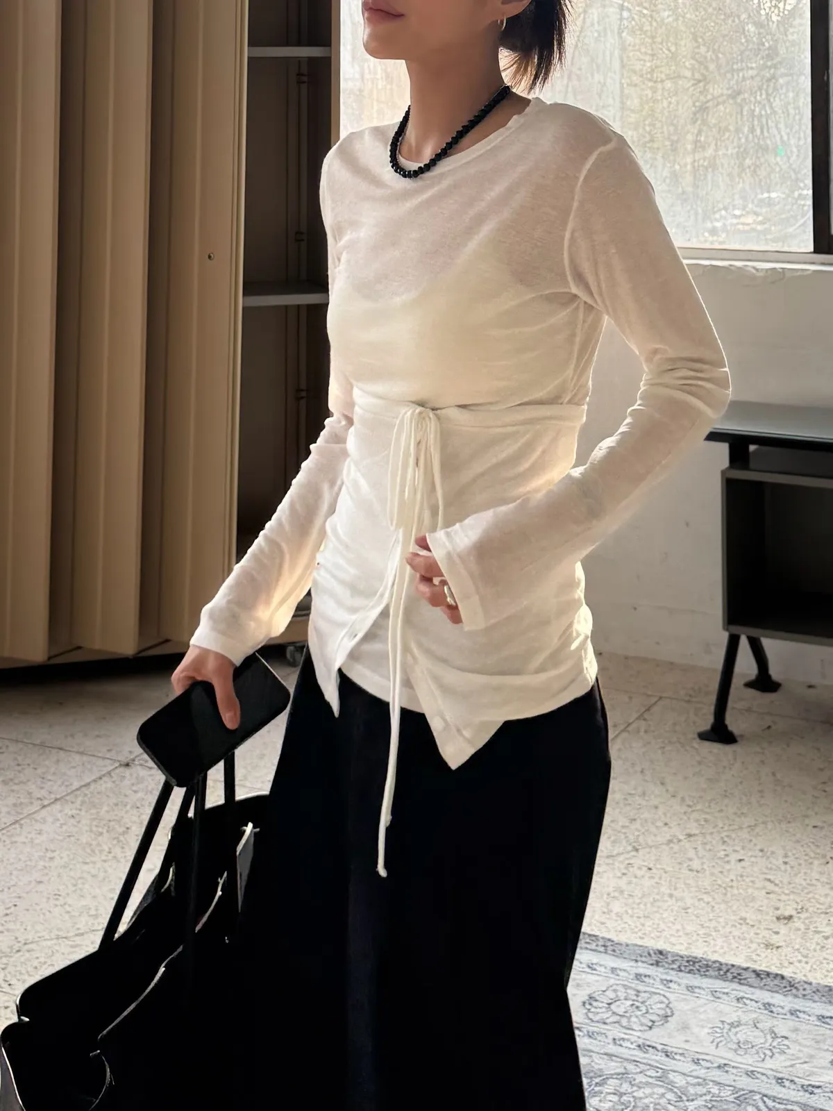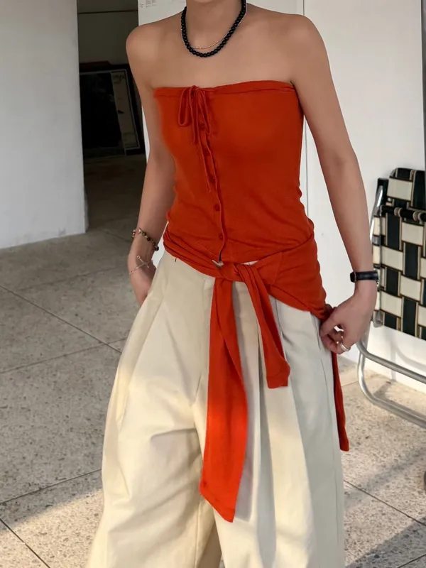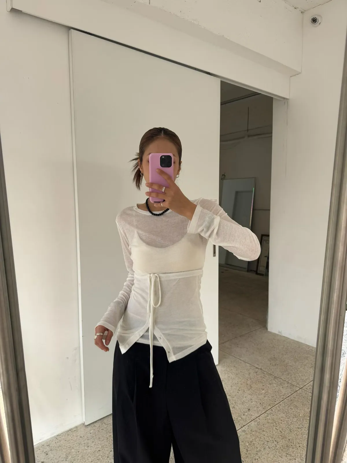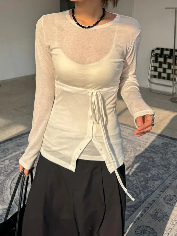26ES21 平口綁帶+透透感長T SET 5色