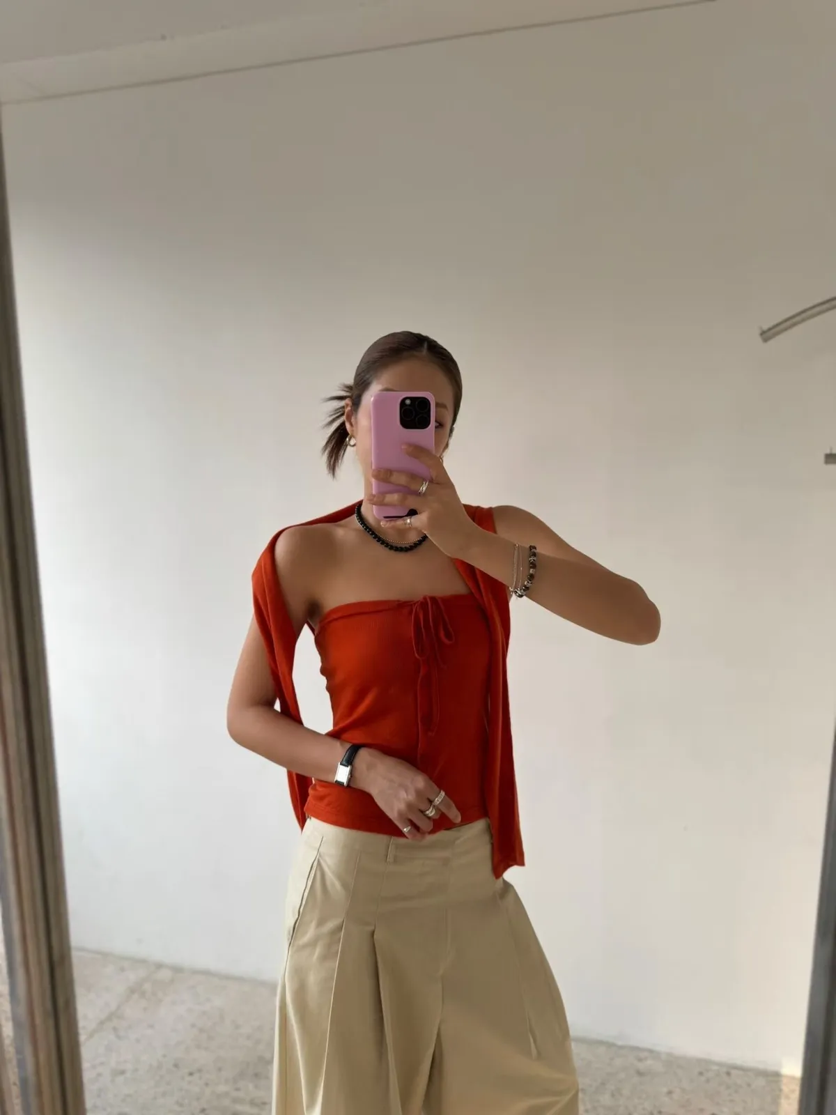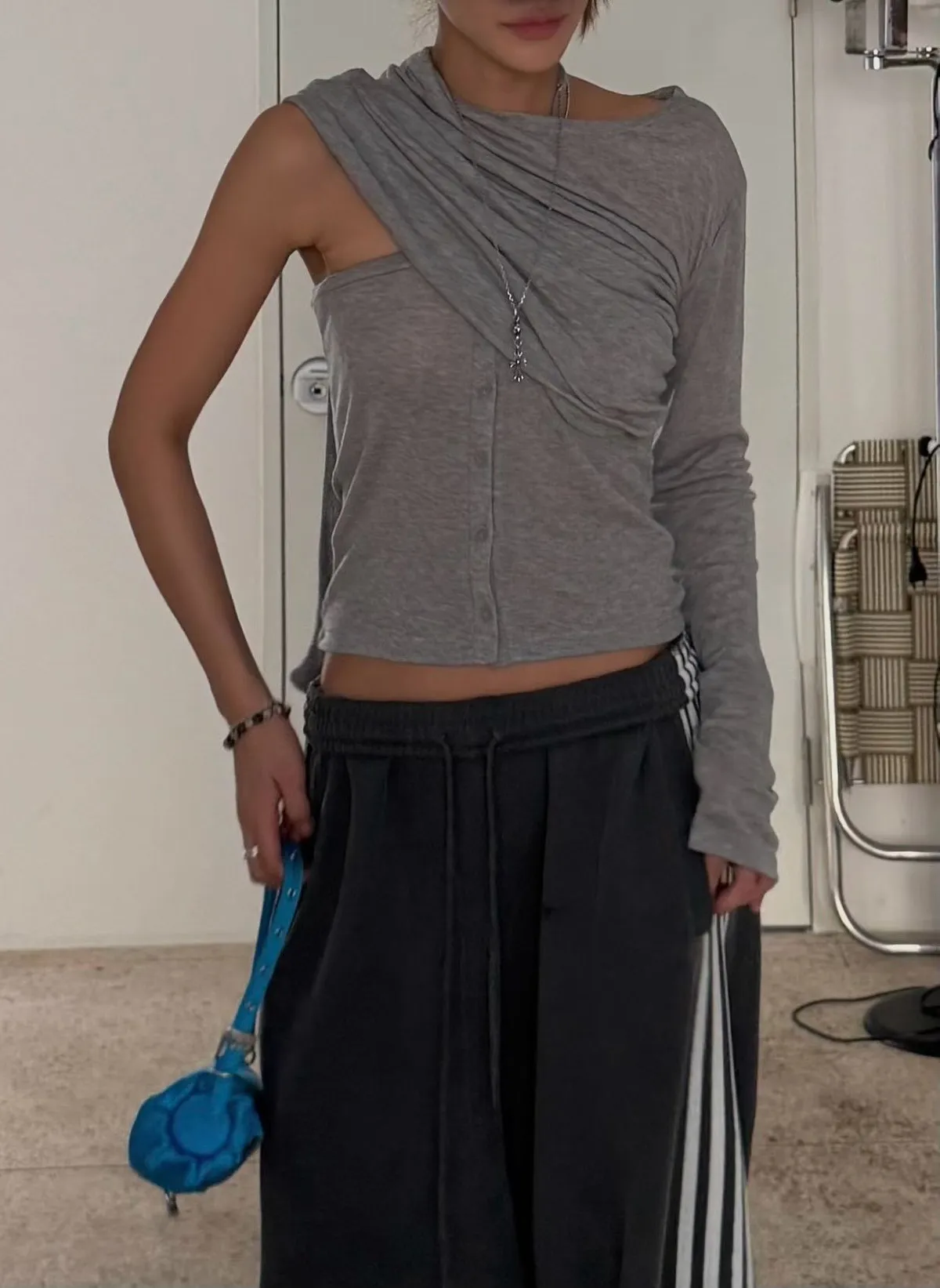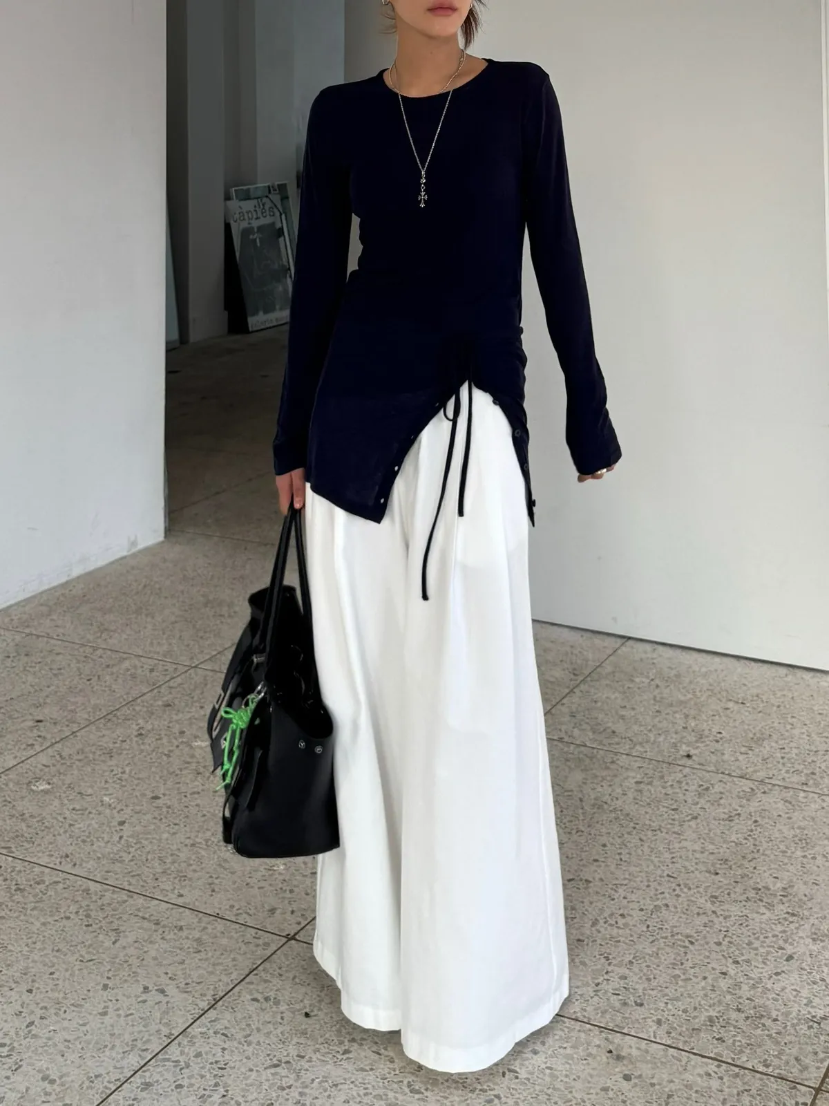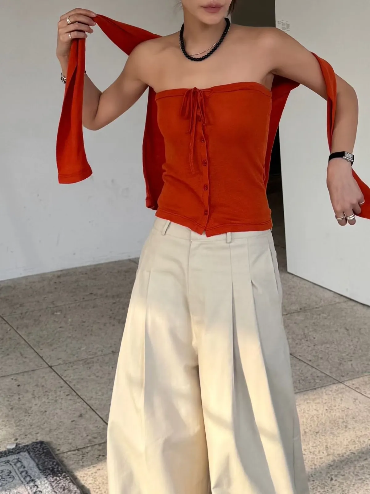 26ES21 平口綁帶+透透感長T SET 5色