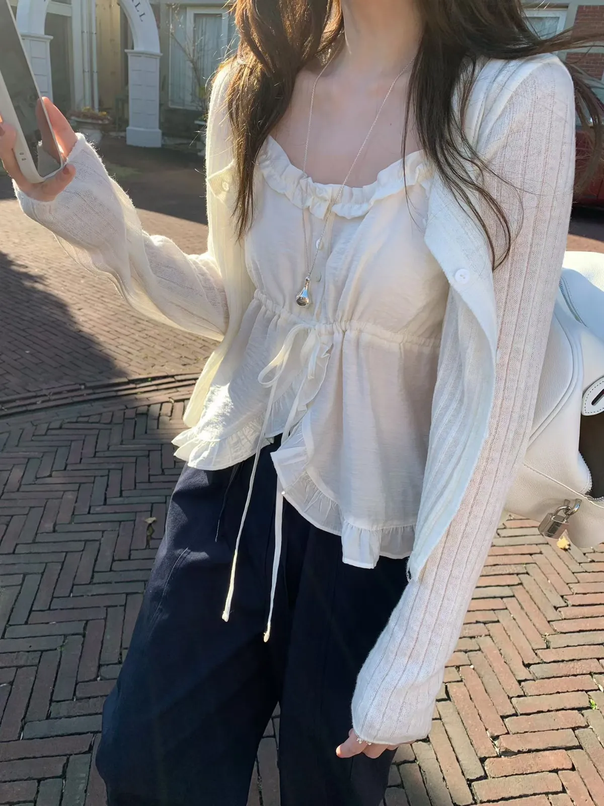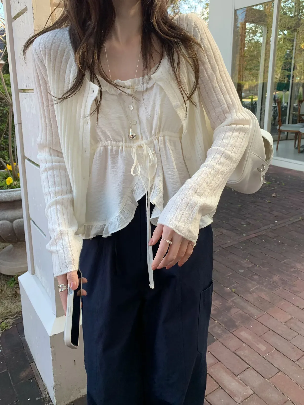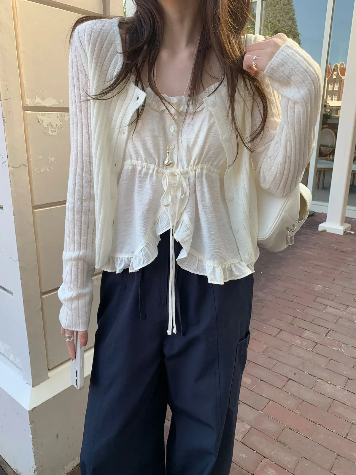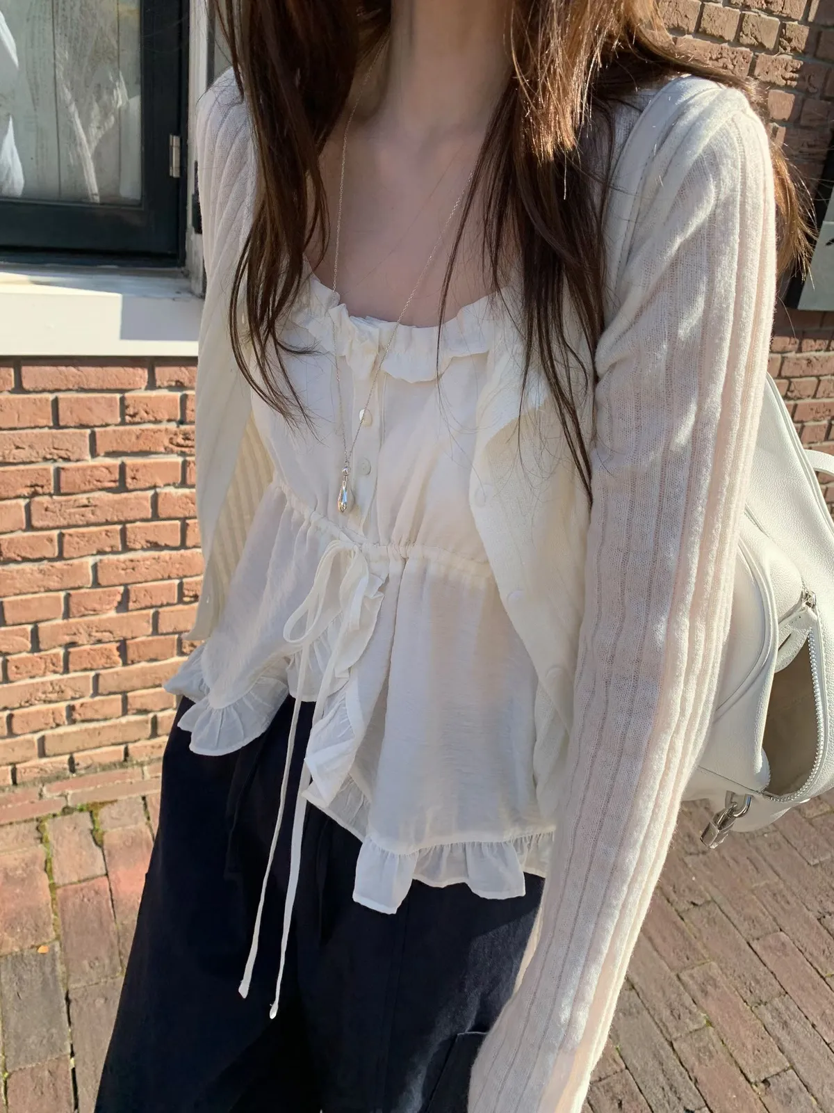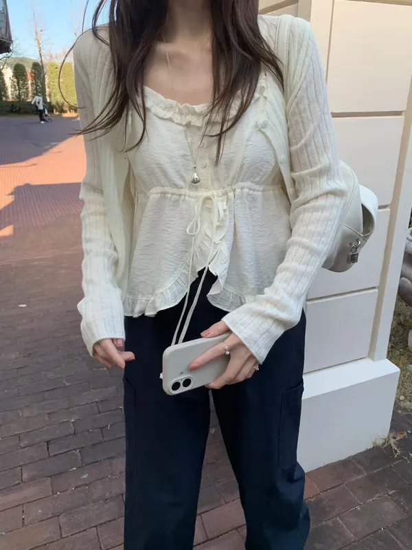 26ES27 綁帶高開V荷葉背心 2色