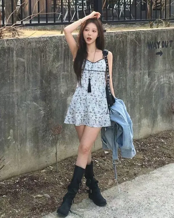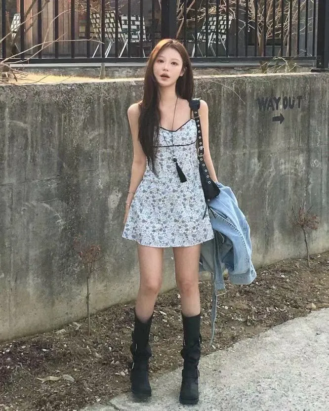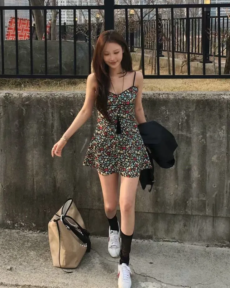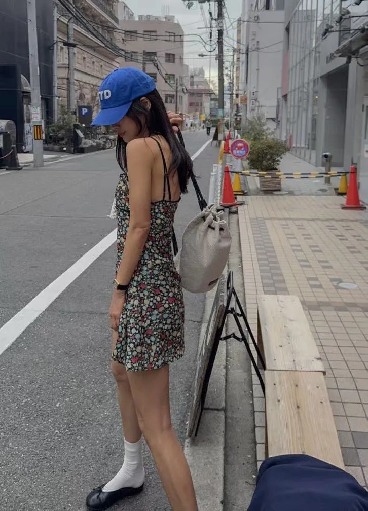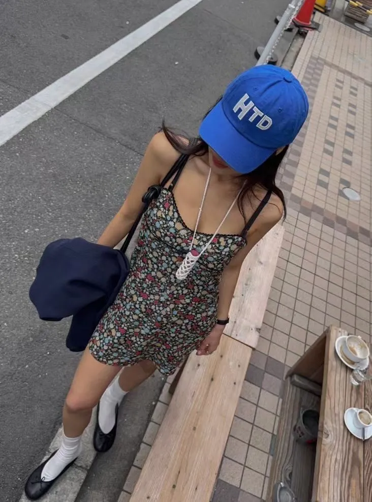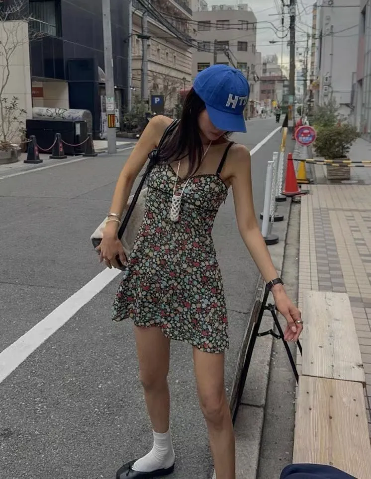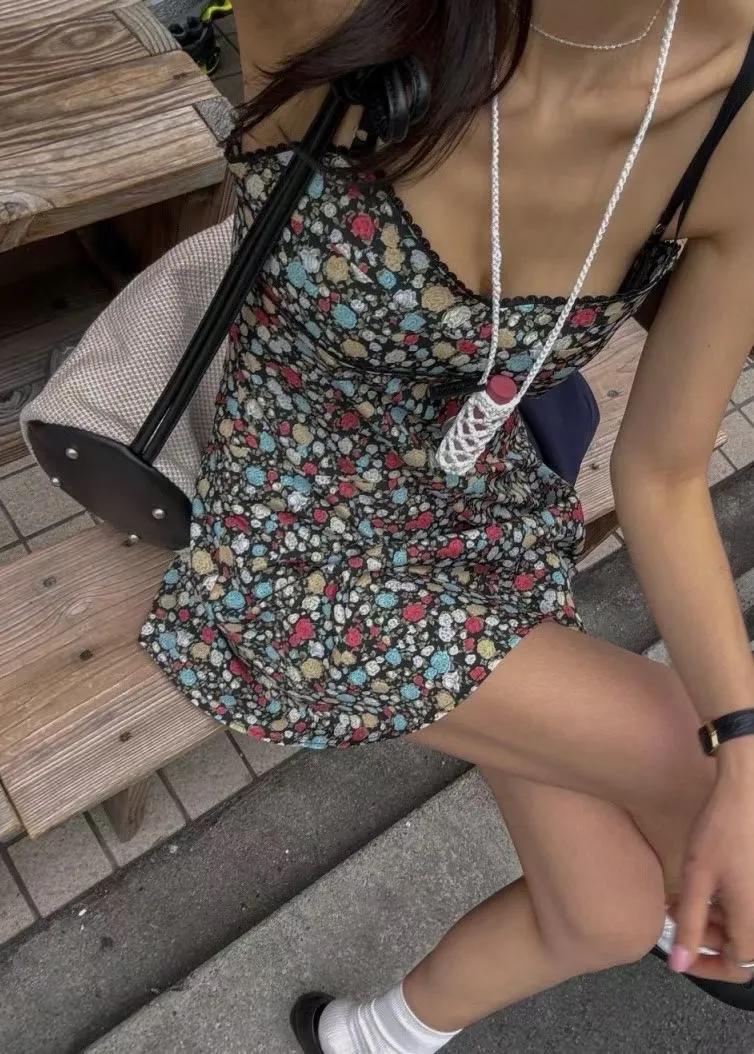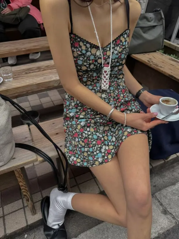 26ES32 小碎花桃心蕾絲滾邊短洋裝 2色
