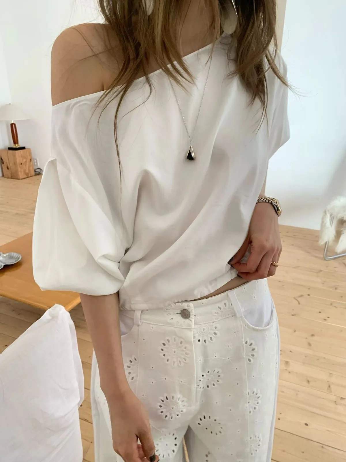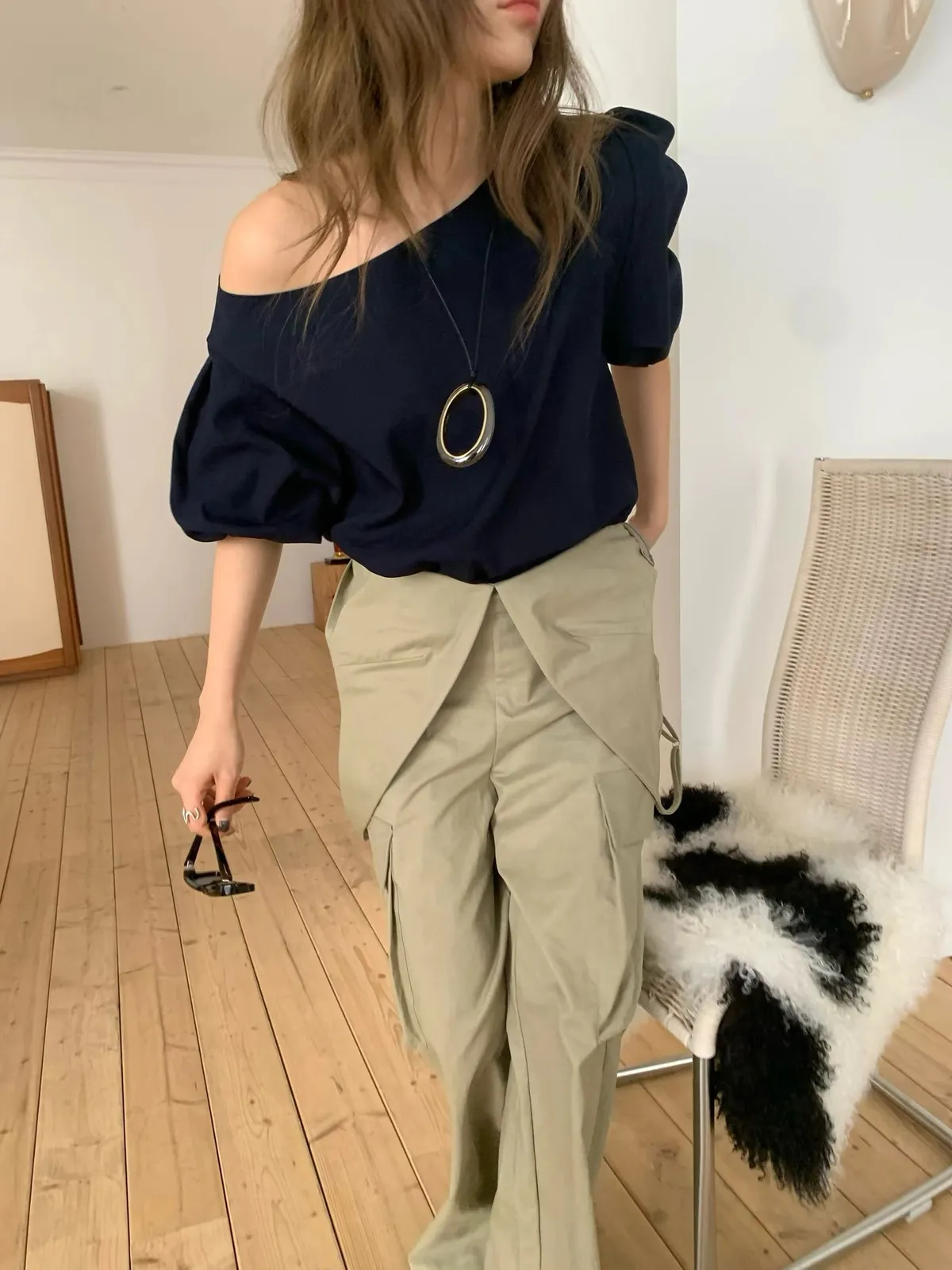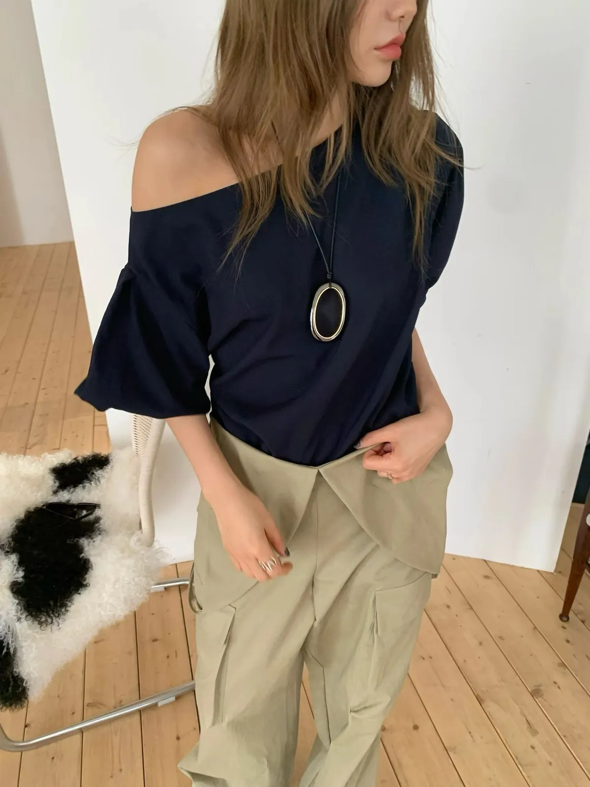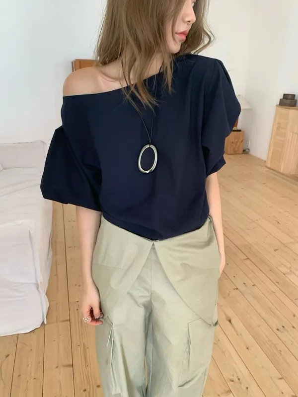 26ES38 泡泡袖船領上衣 2色