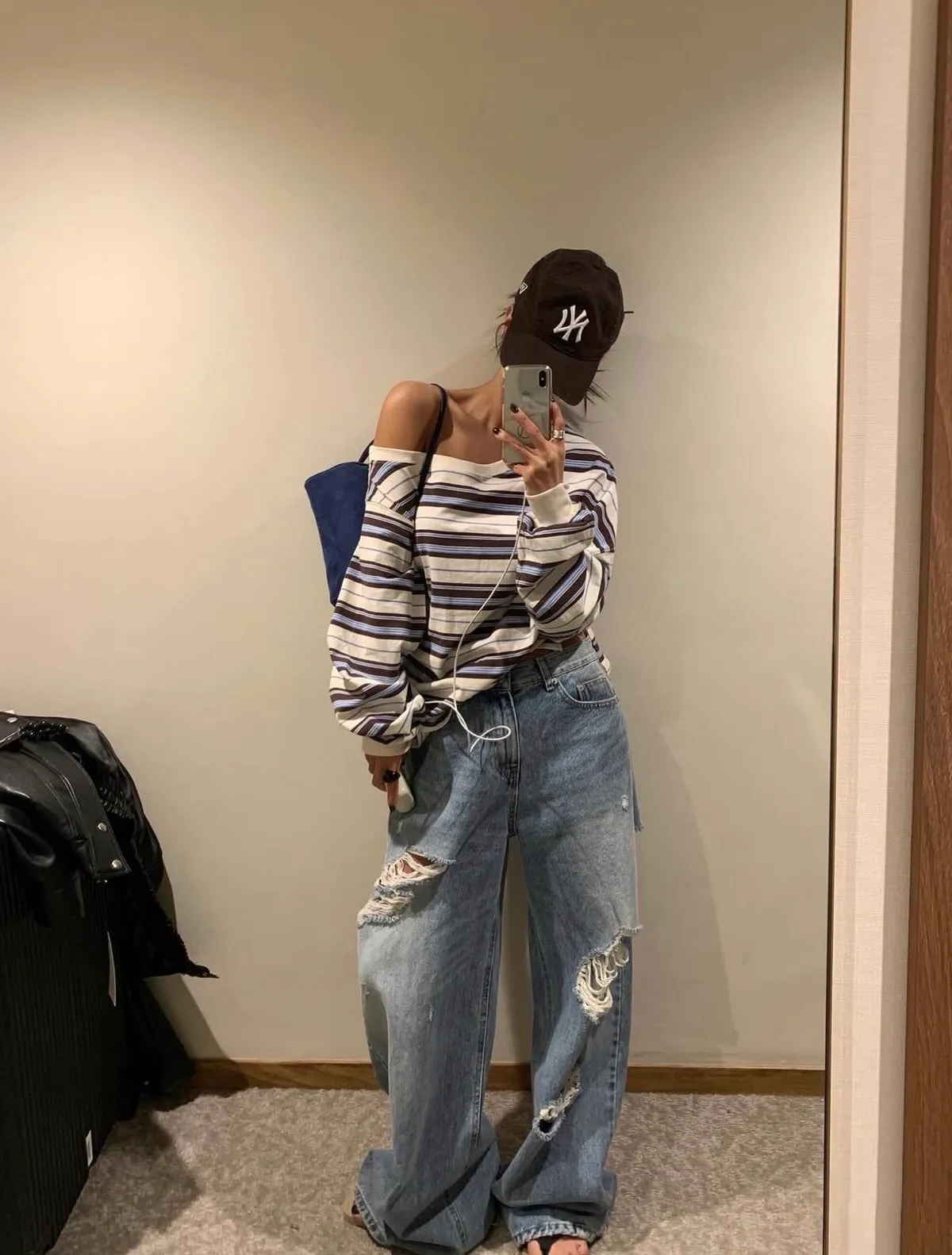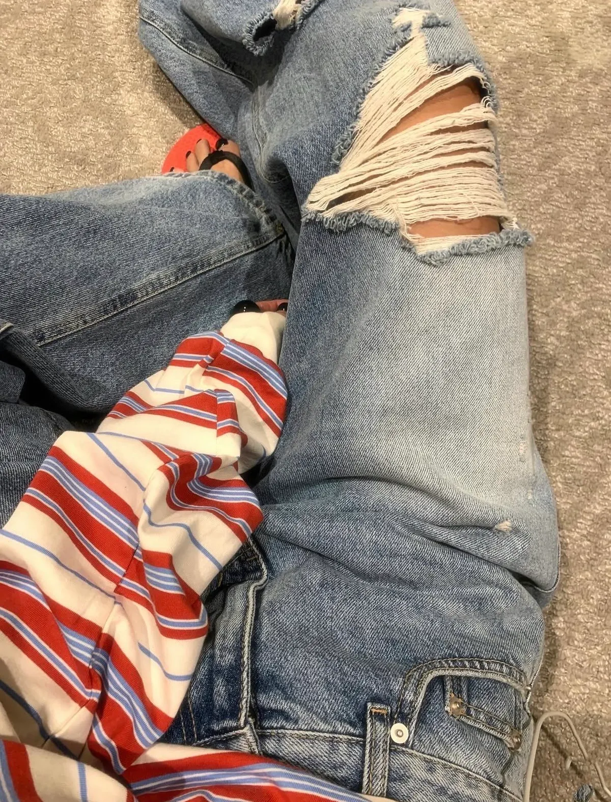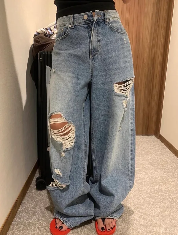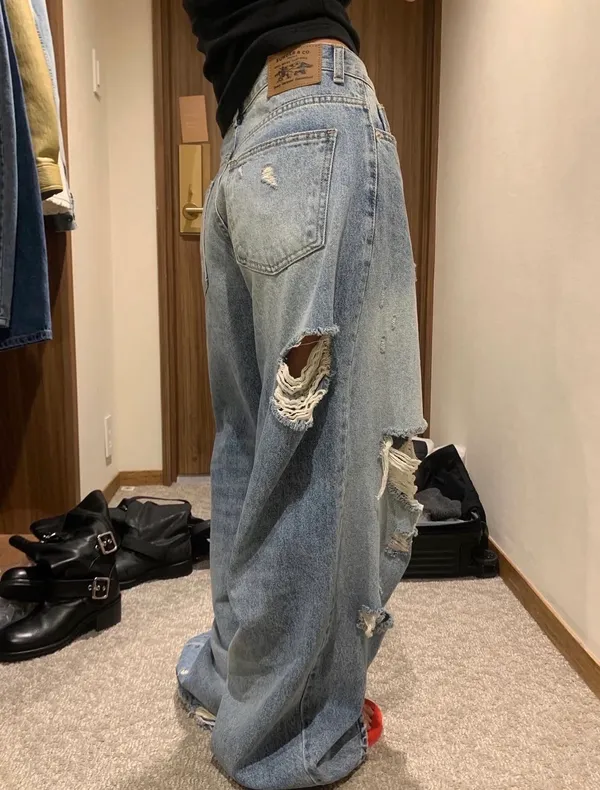 26ES40 洗色大割破壞牛仔長褲 SML