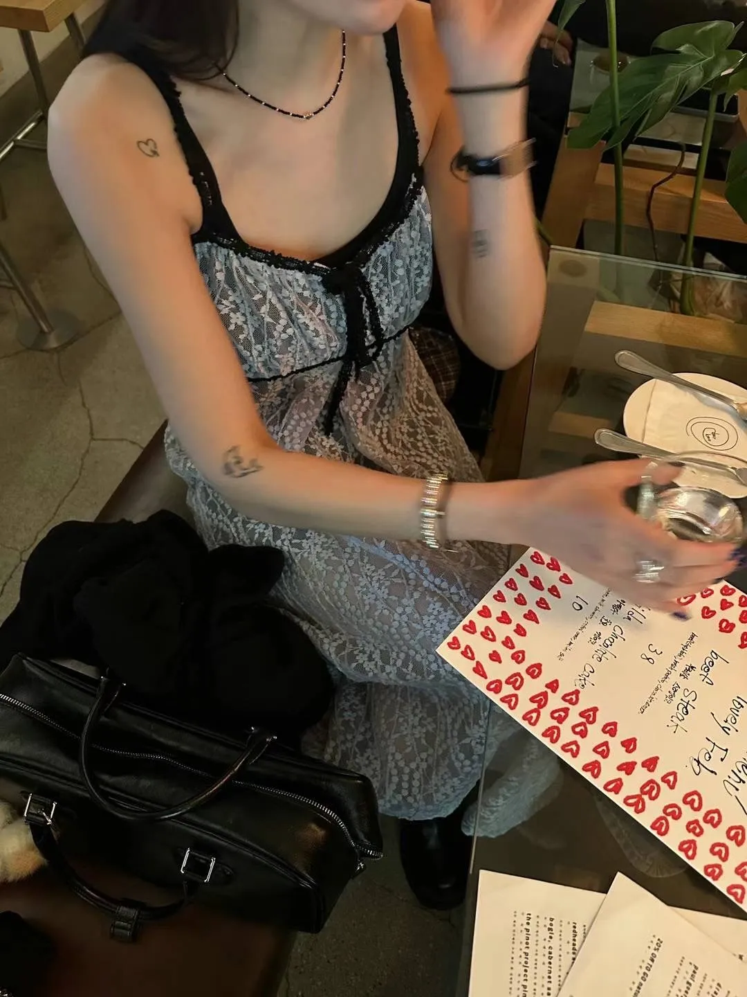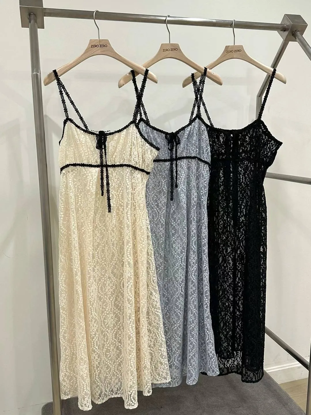 AD005 神美!!重工透視蕾絲連身背心裙 3色
