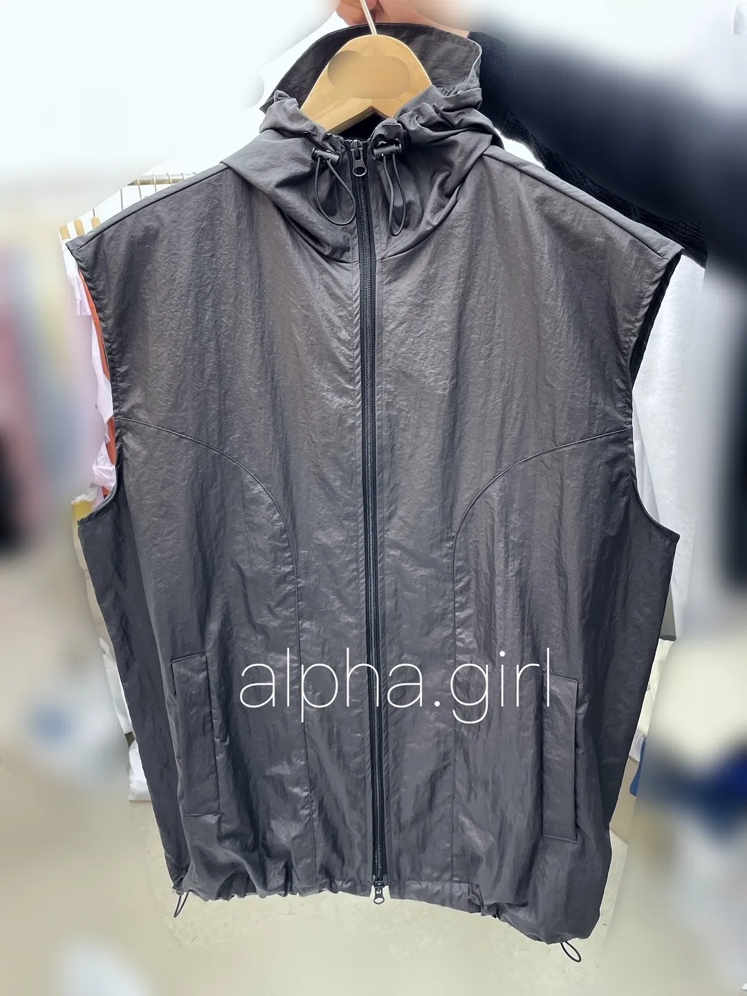 BS061 (男裝)薄防風刷刷料連帽背心外套 2色