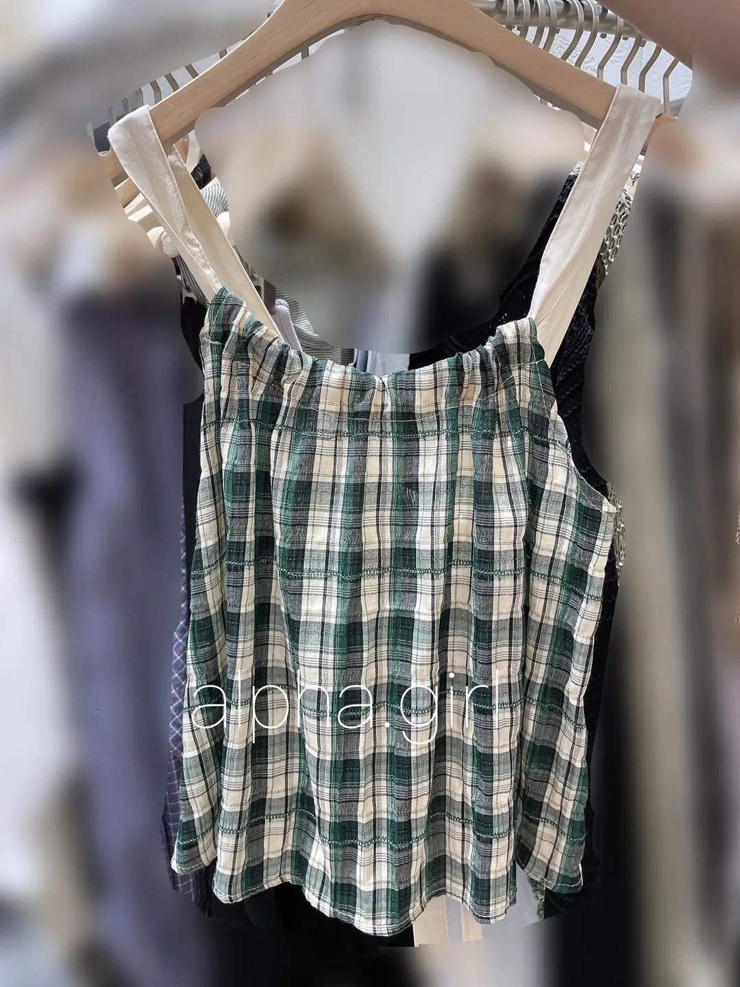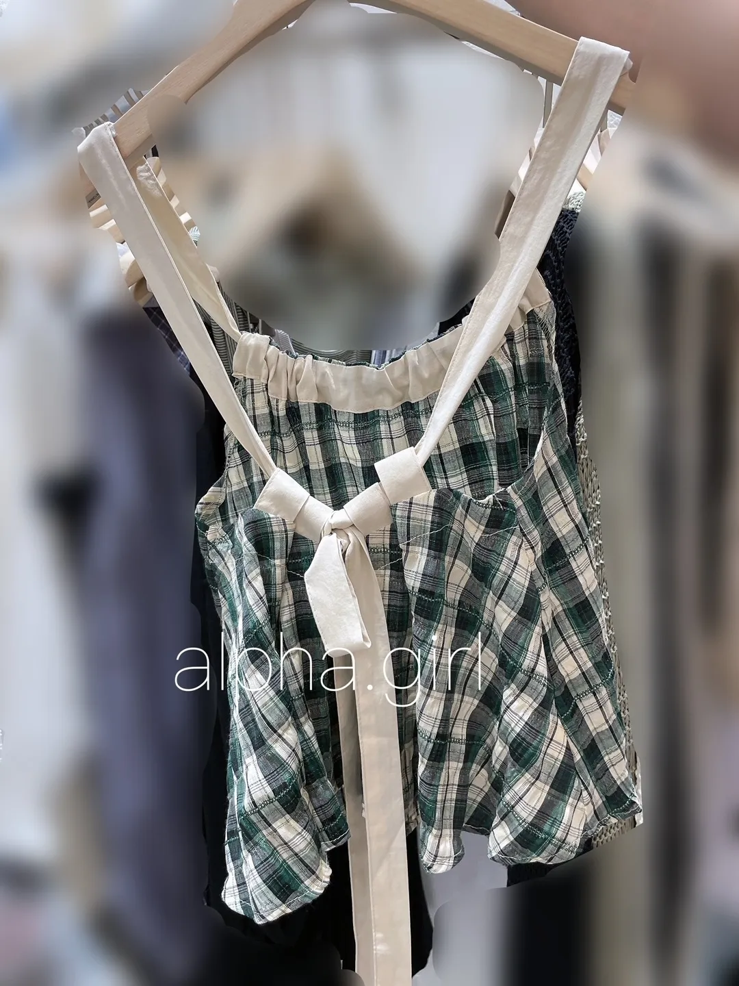 CS027 格紋後綁帶蝴蝶結襯棉背心 2色
