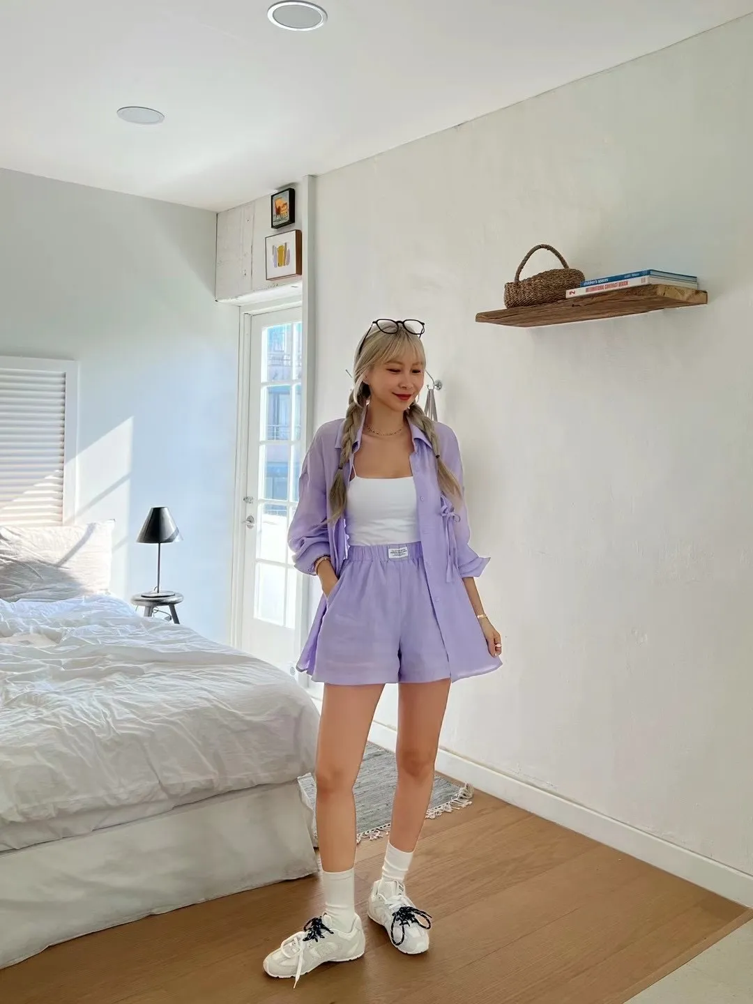 DK013 透透ploy涼感鬆緊高腰小標短褲 4色