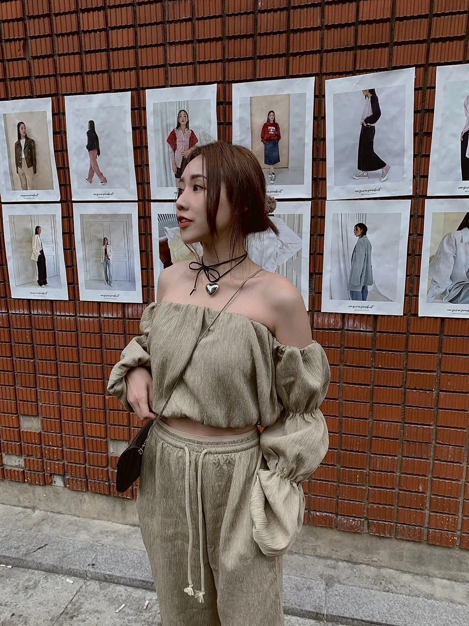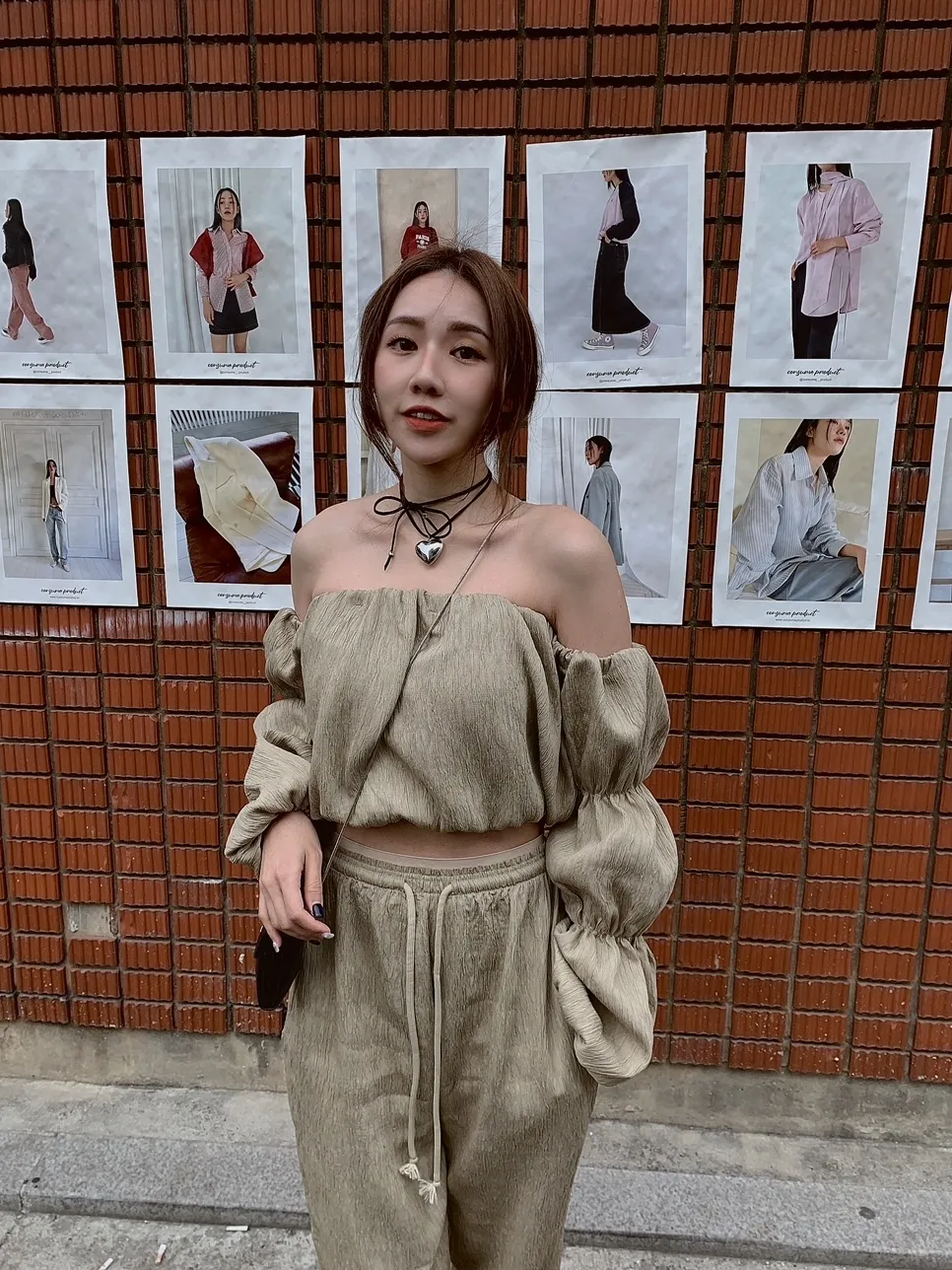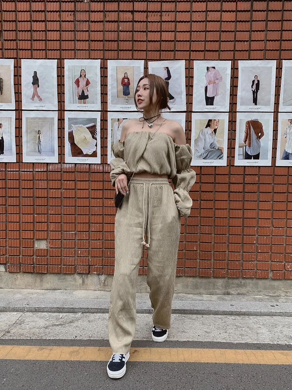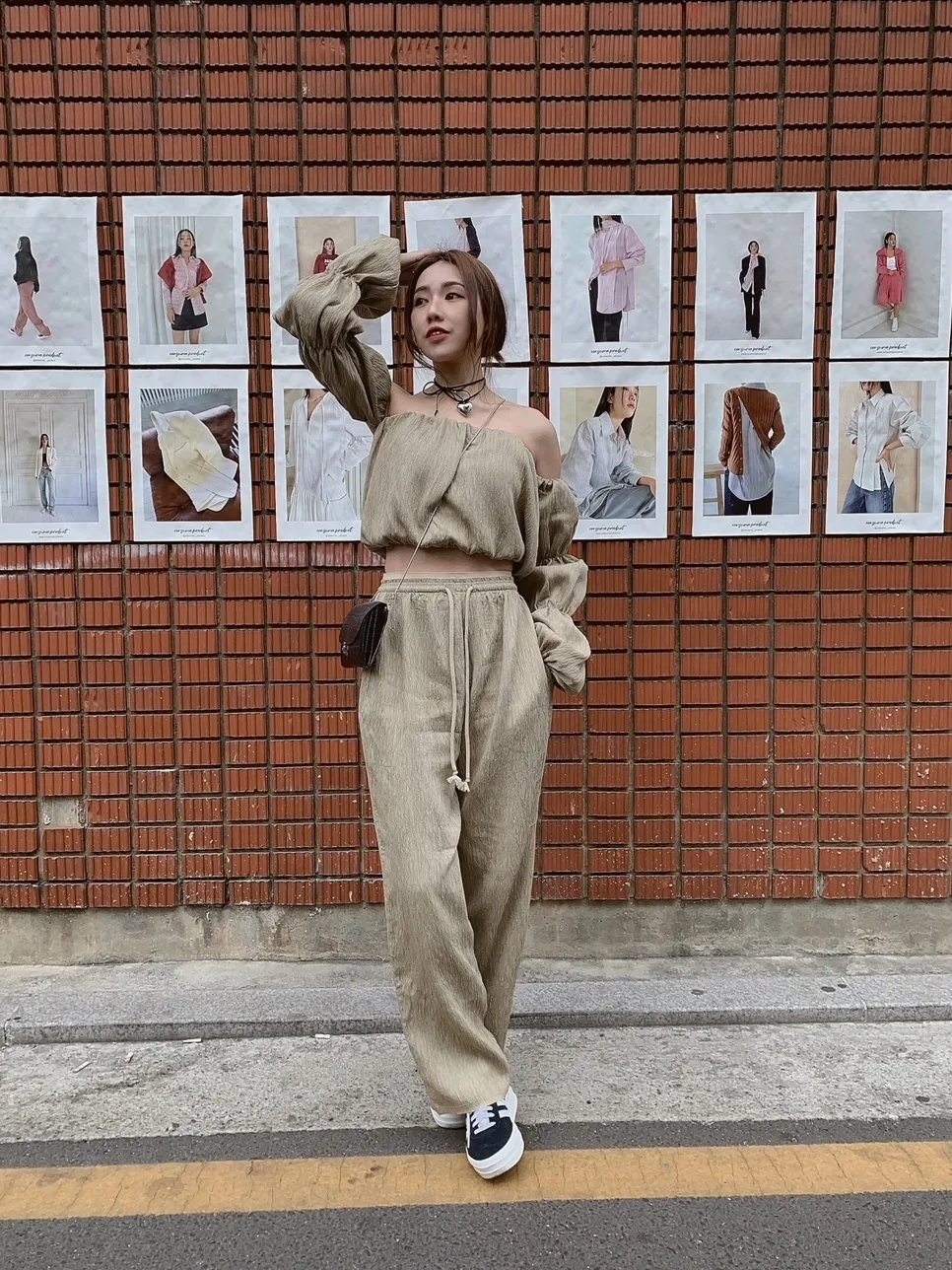 DS39 皺皺涼感平口上衣+下身長褲 SET組