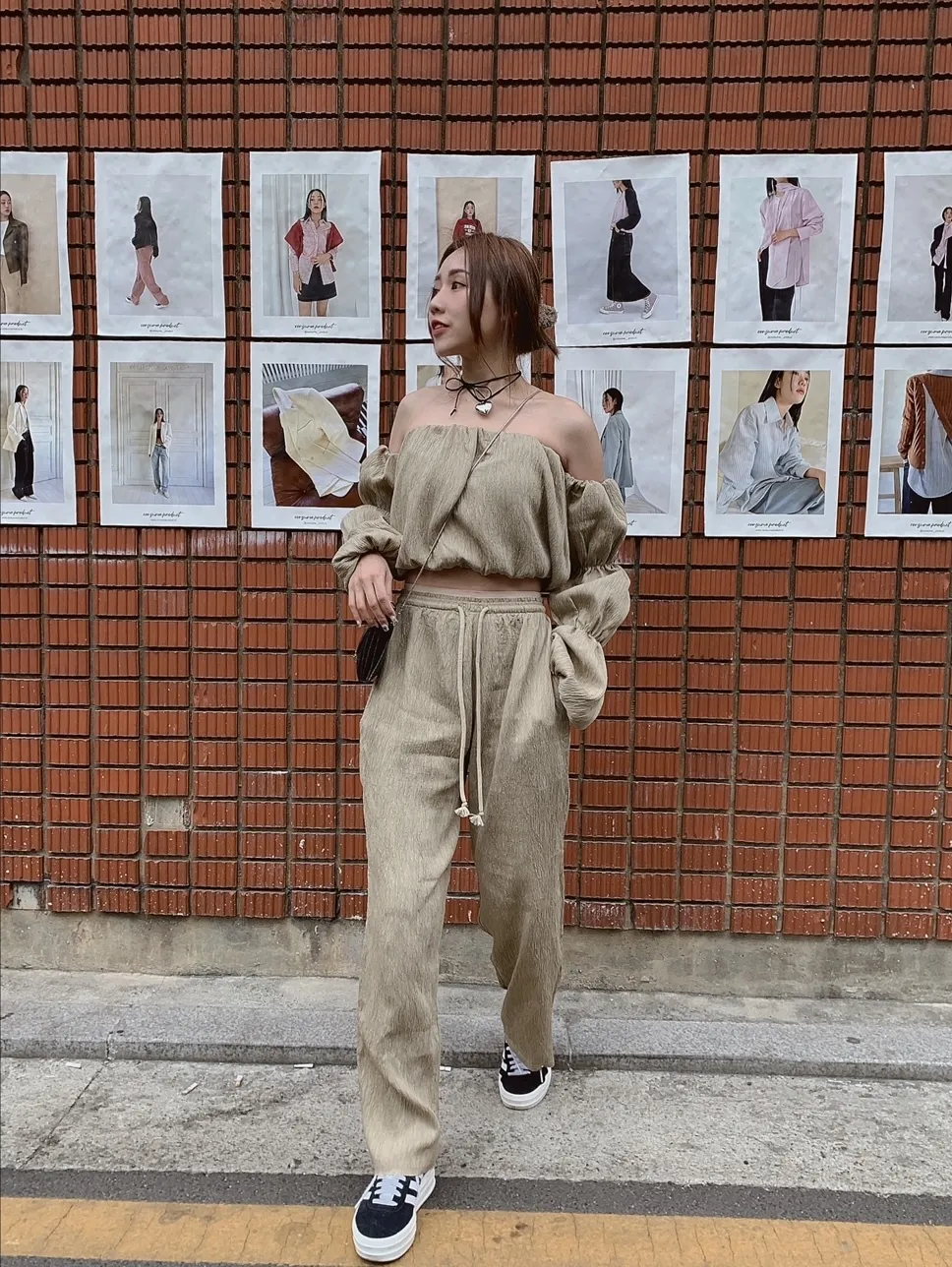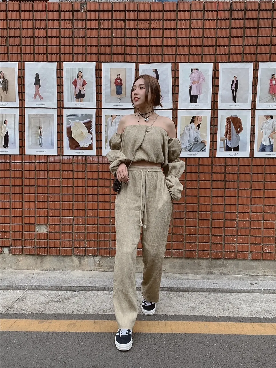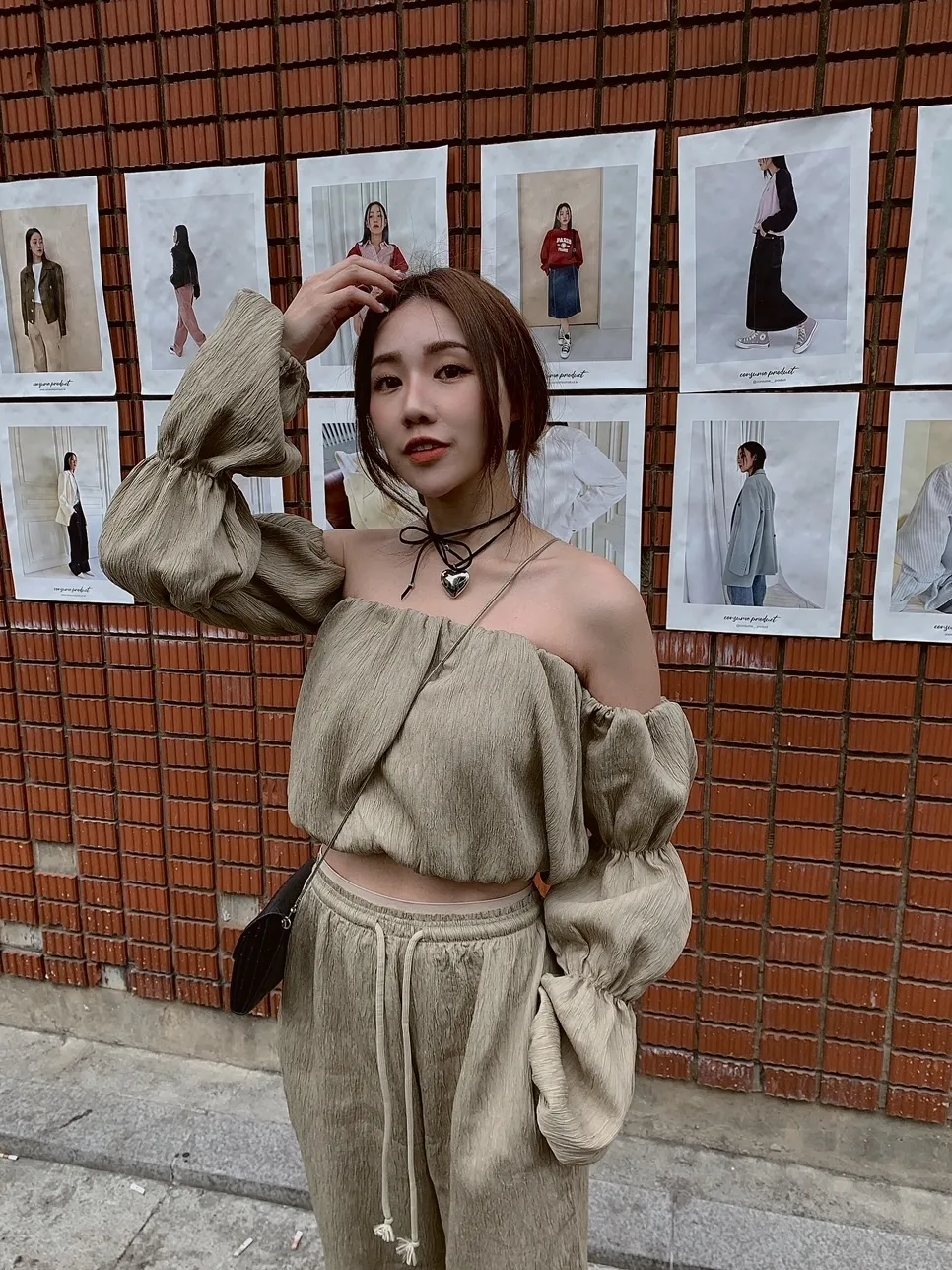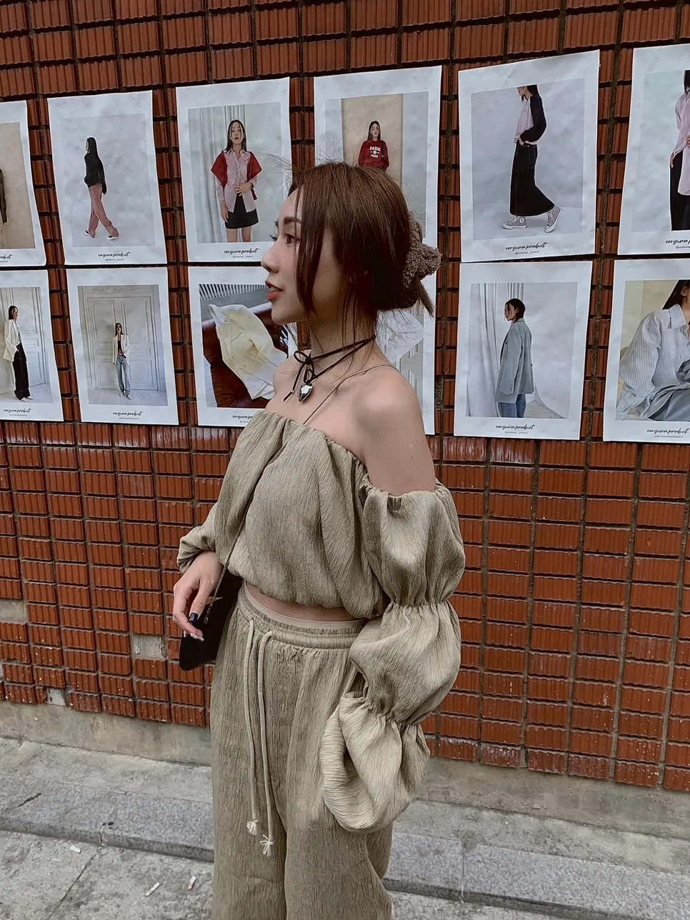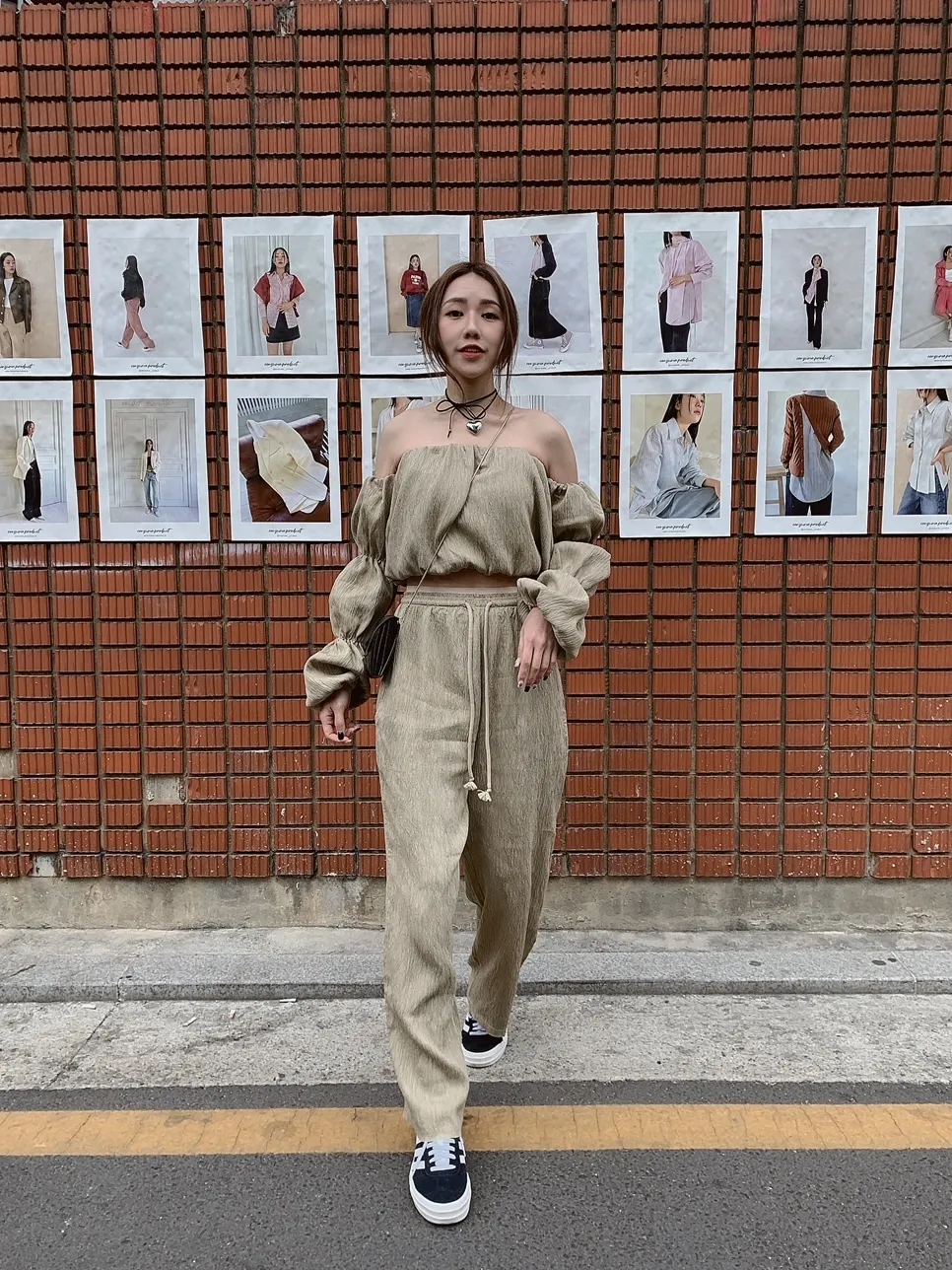 DS39 皺皺涼感平口上衣+下身長褲 SET組