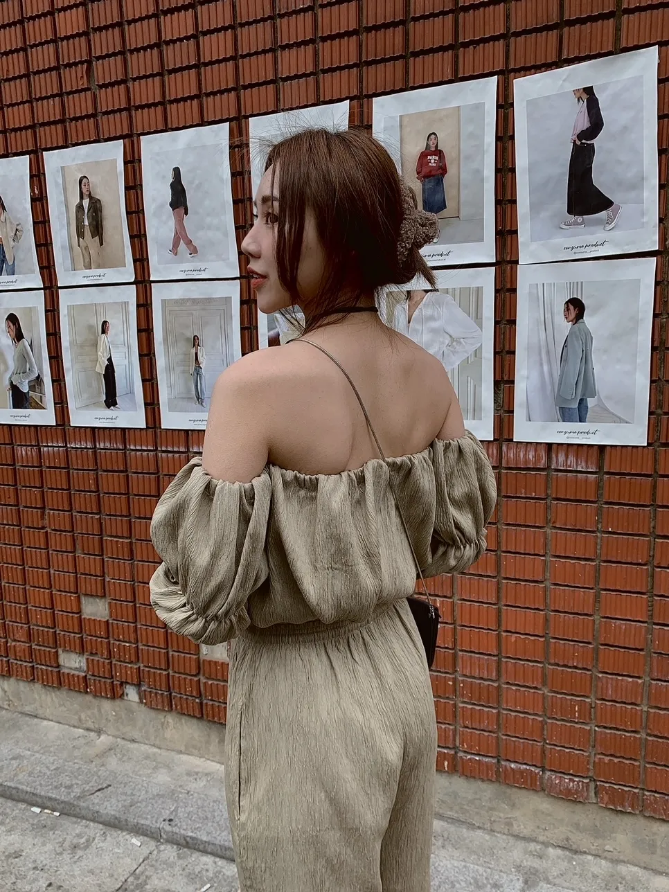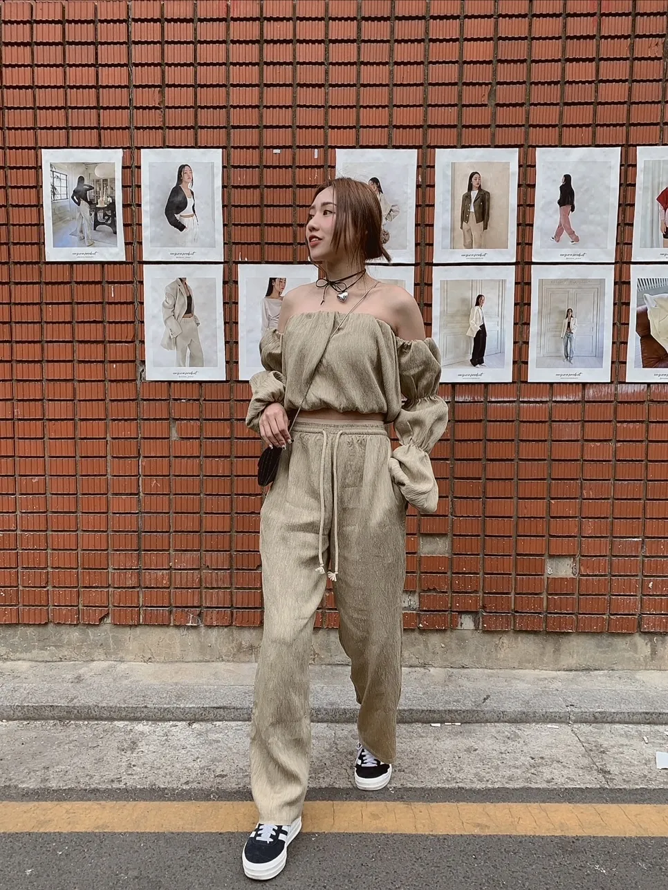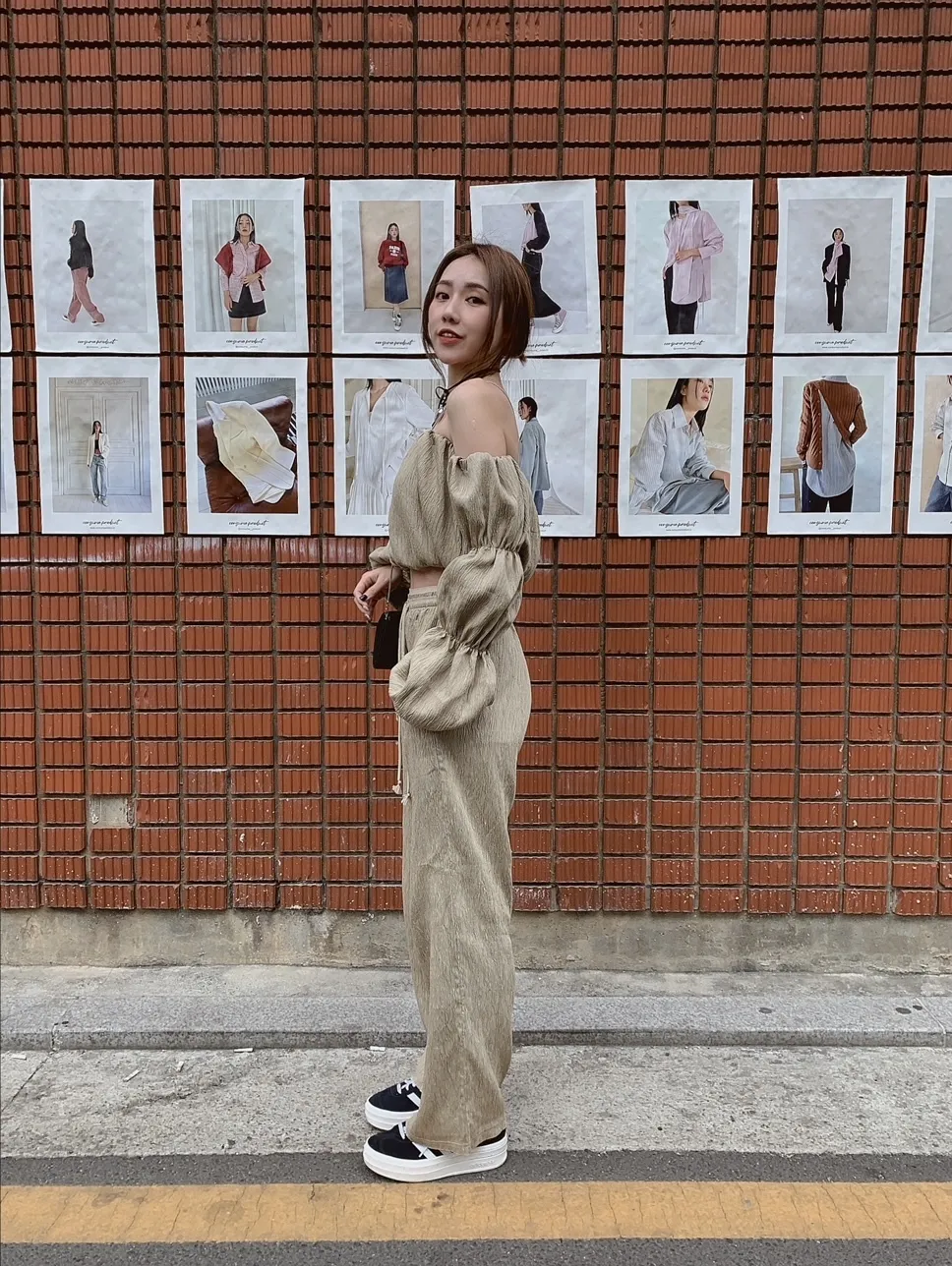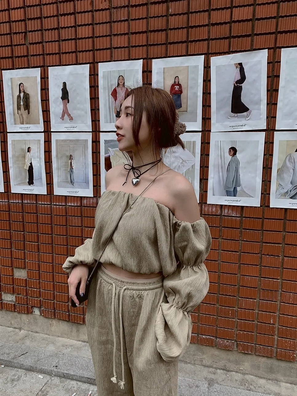 DS39 皺皺涼感平口上衣+下身長褲 SET組