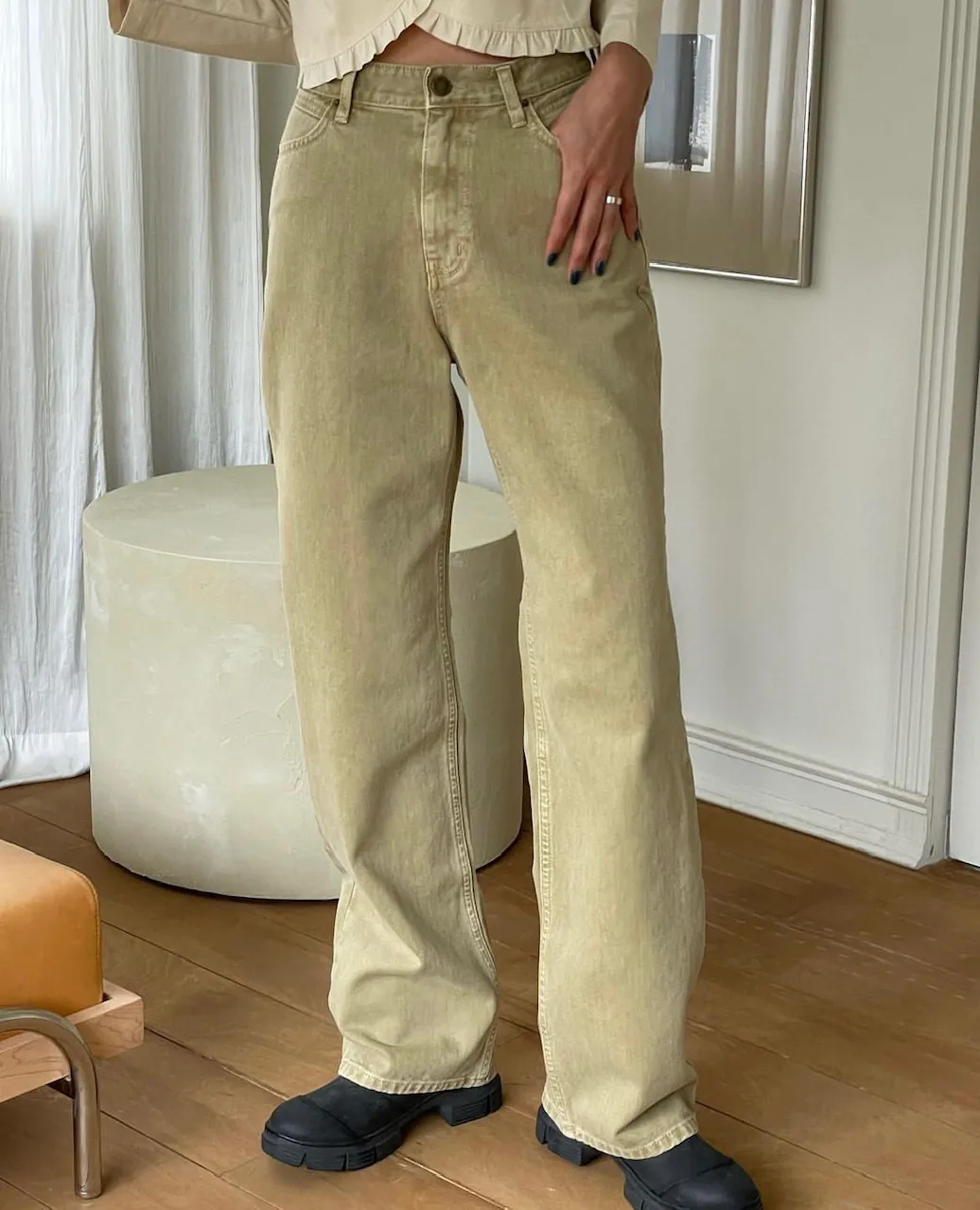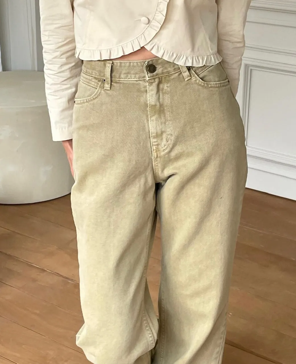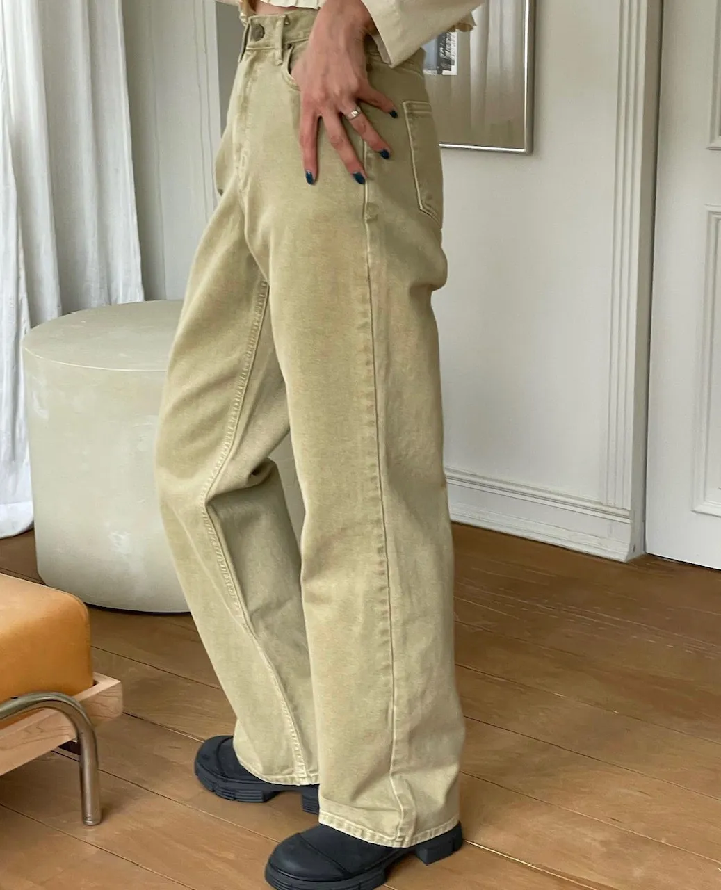 GB06 洗舊斜紋直筒長褲 2色 SML