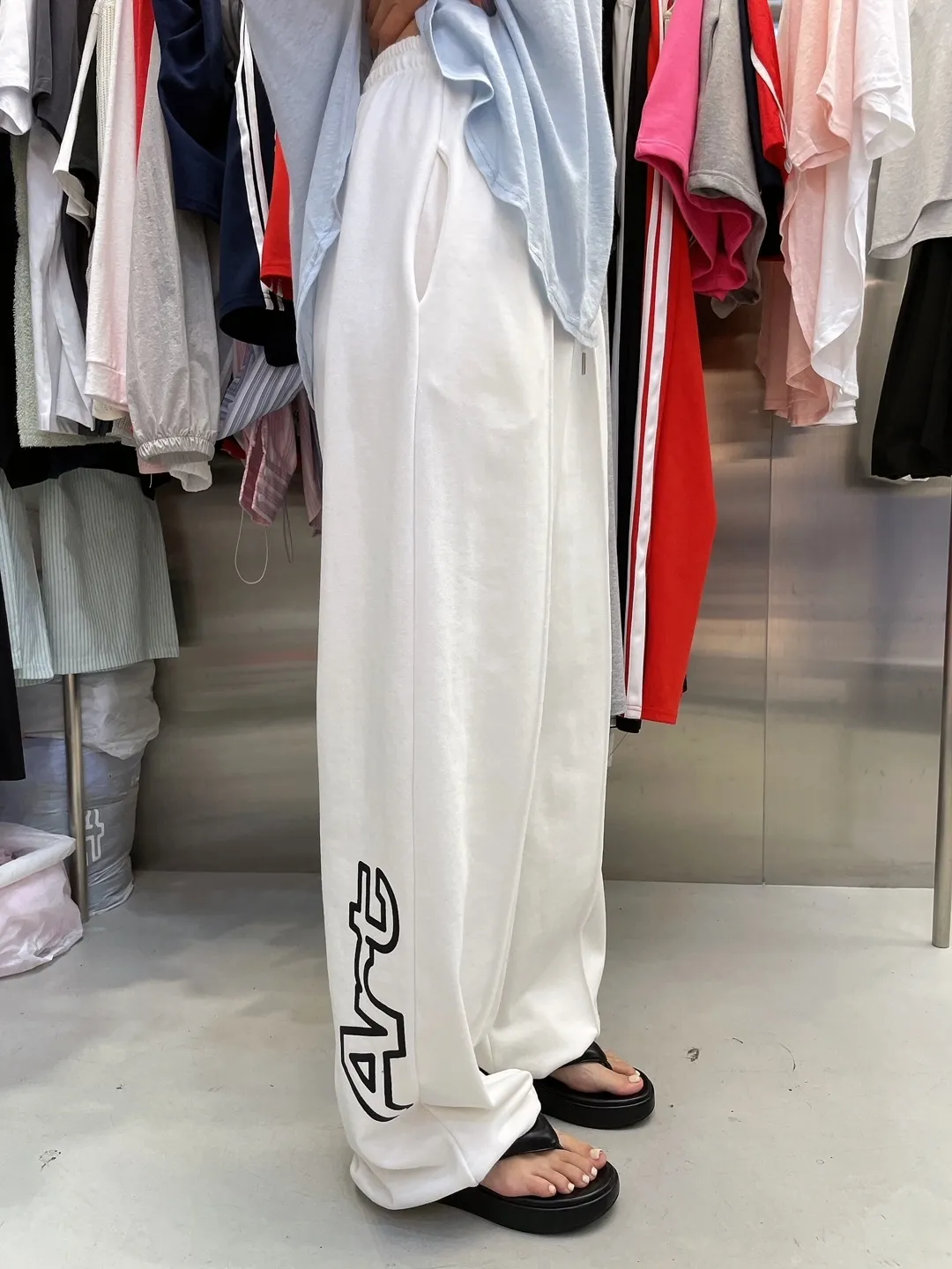GD022 sale獨家款)褲腳英字薄毛巾兩穿縮腳長棉褲 3色