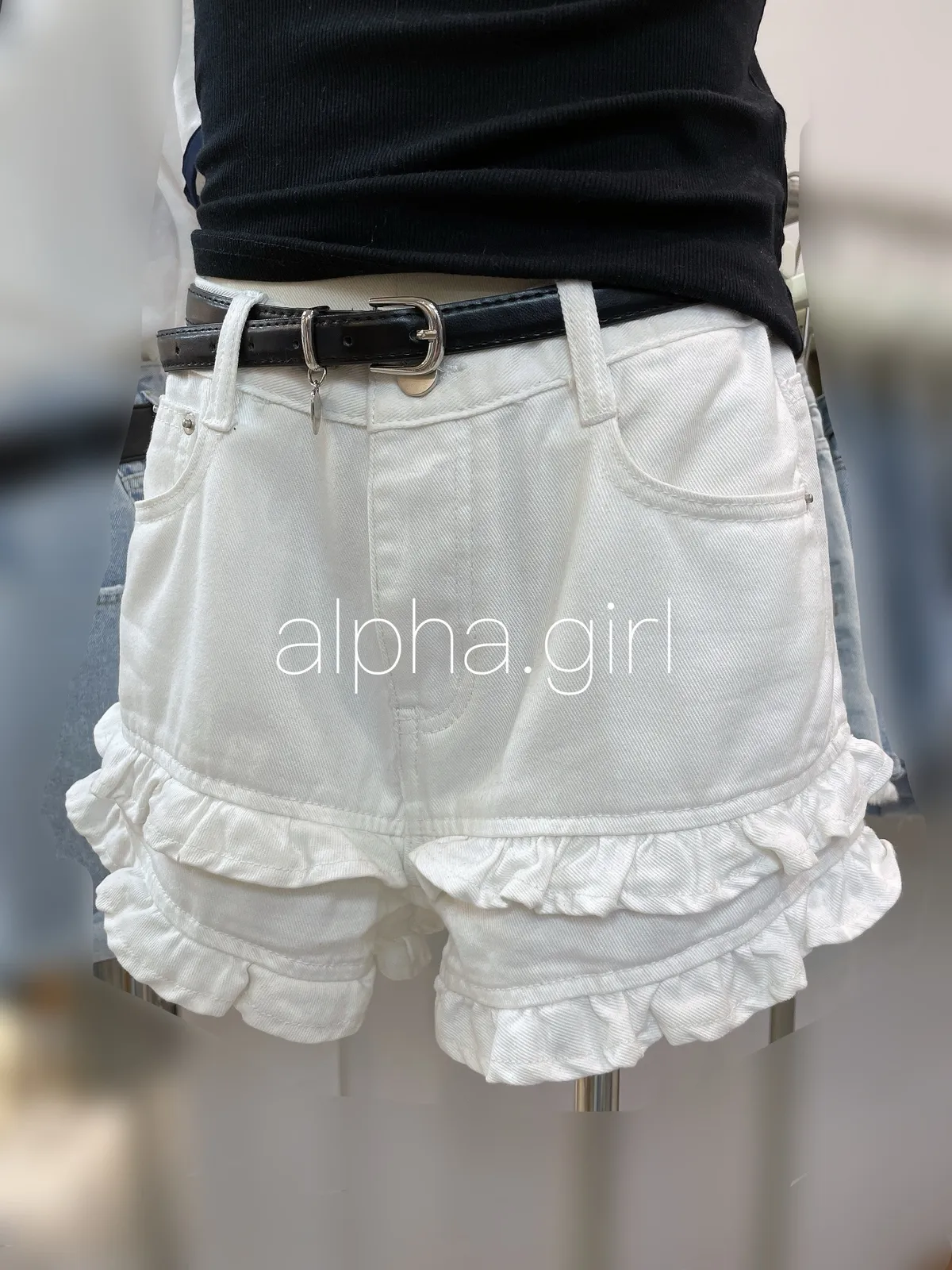 GFS20 (廣州場)中低腰可愛雙荷葉牛仔短褲 3色 SMLXL