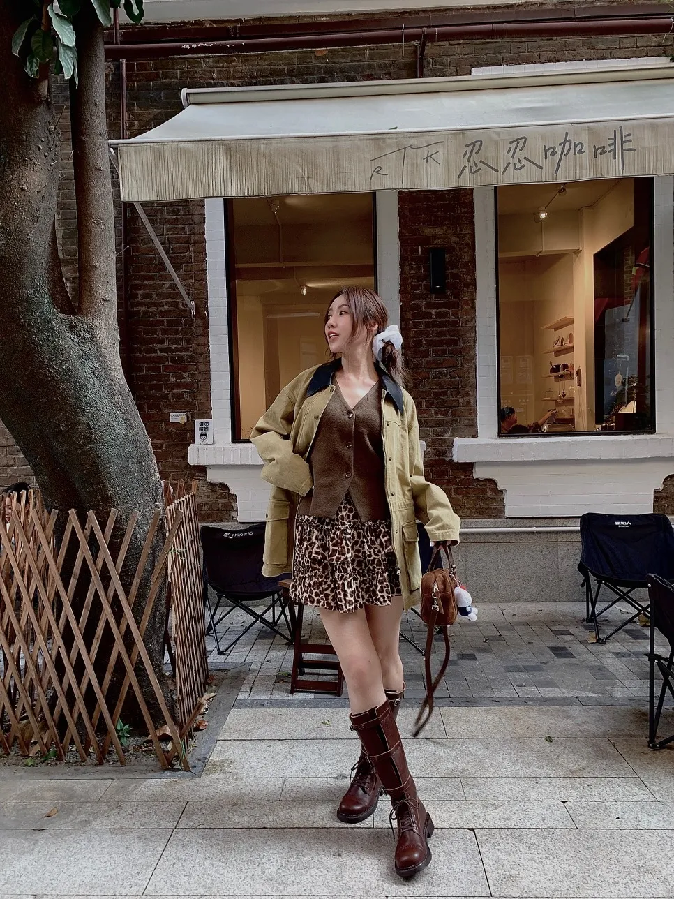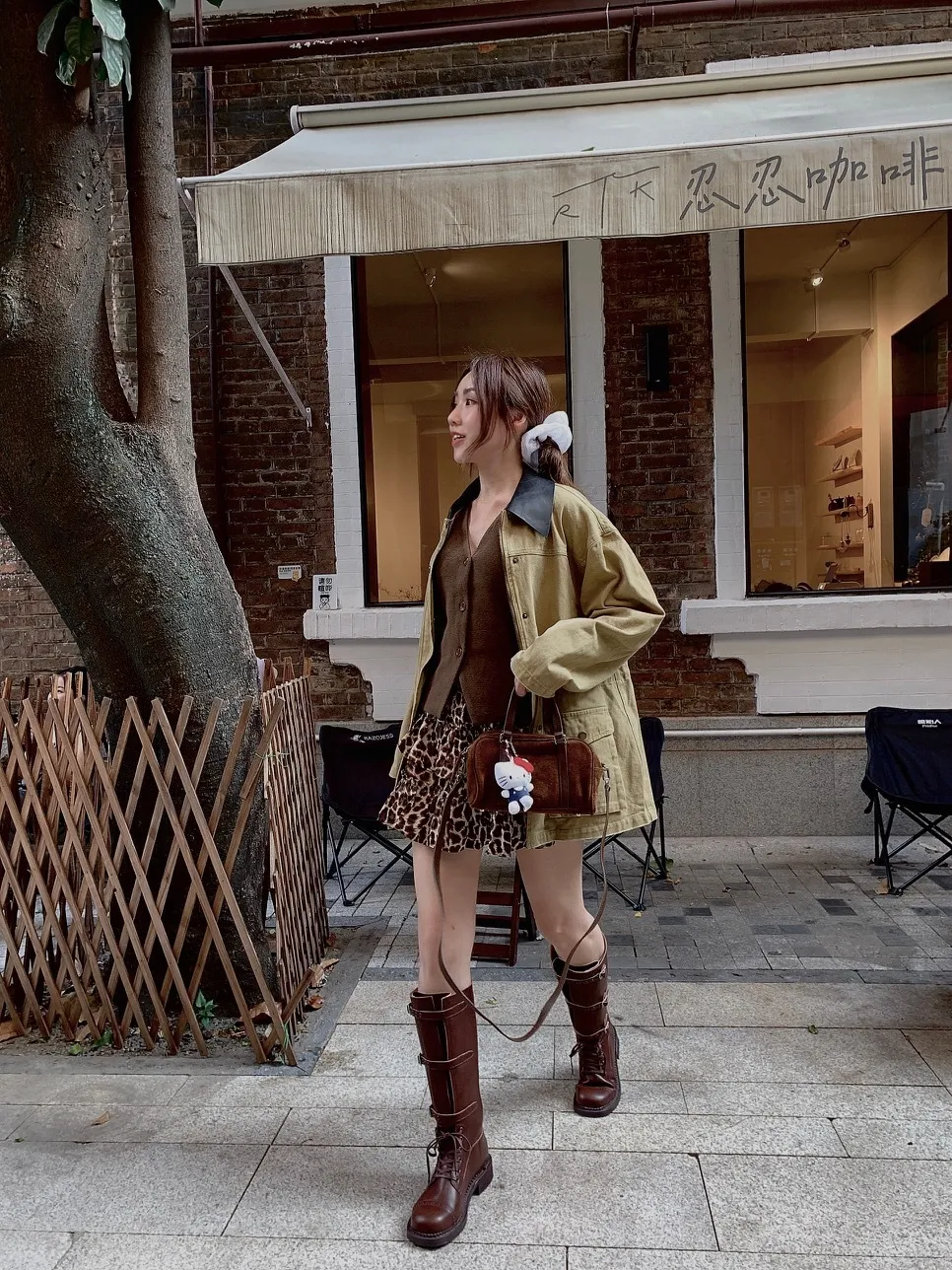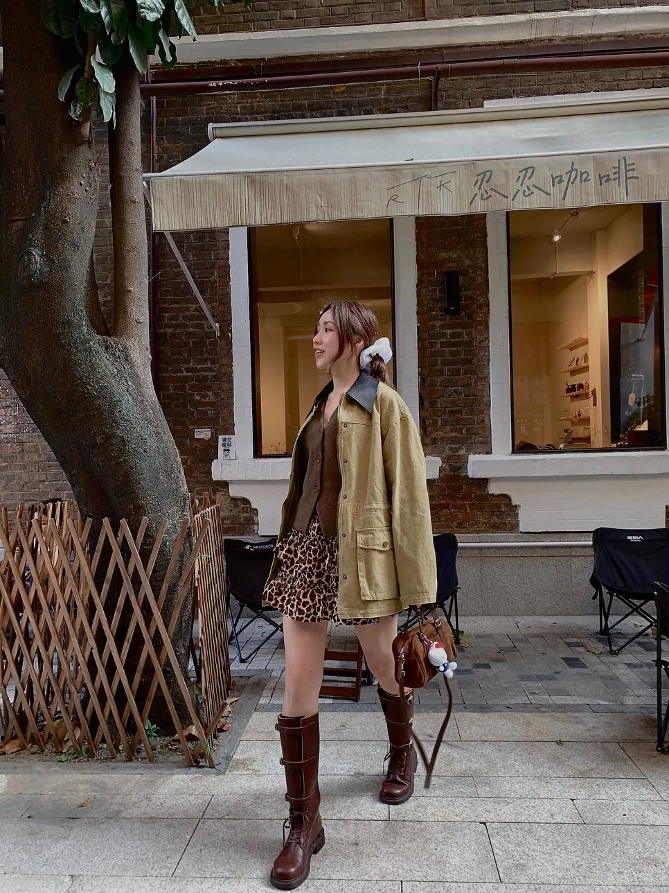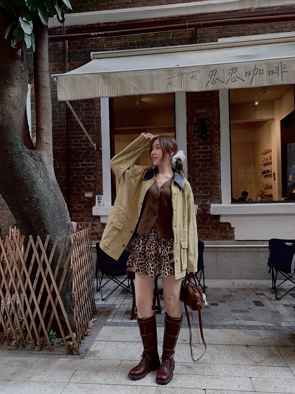 GIS03 廣州場)今年必買)洗色斜紋內縮腰拼接皮領中長版外套 SM