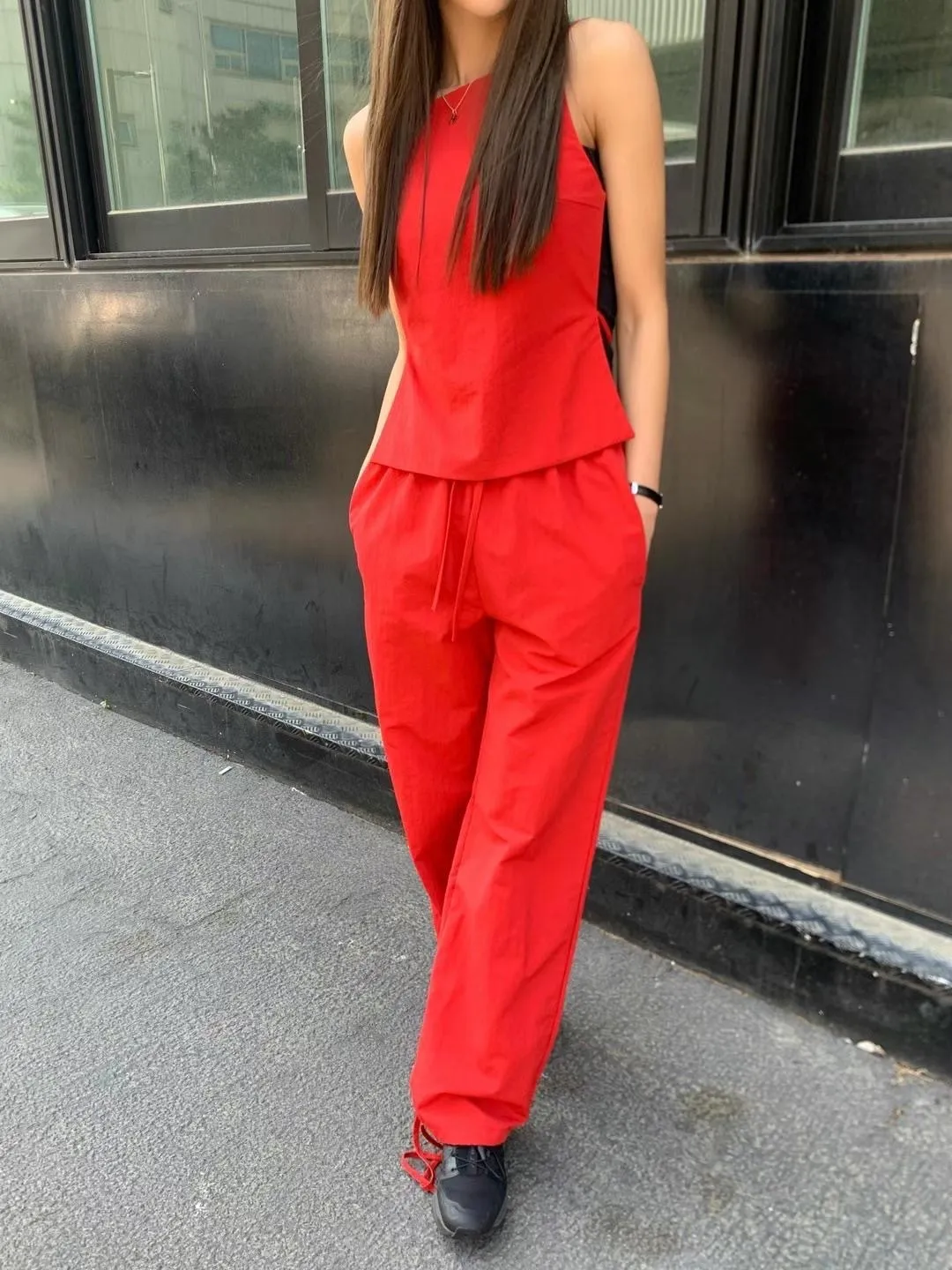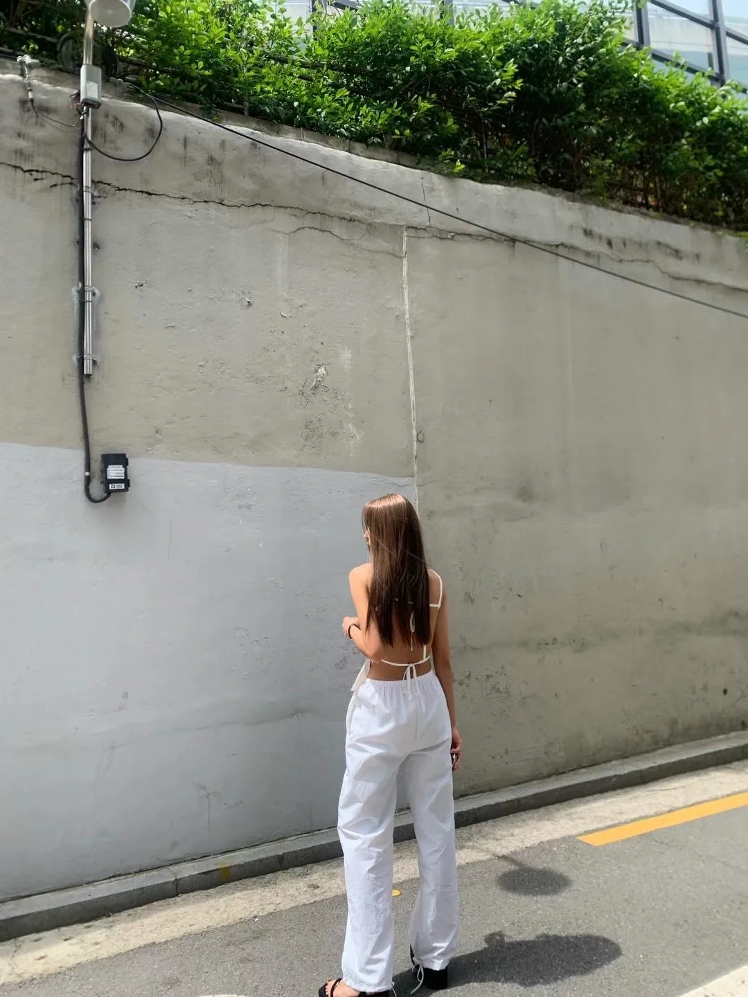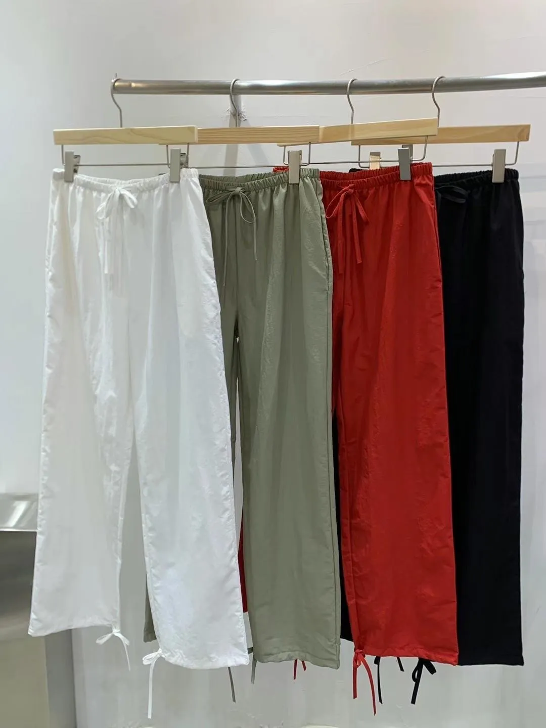 GK07 綁帶風衣滑料鬆緊長褲 4色