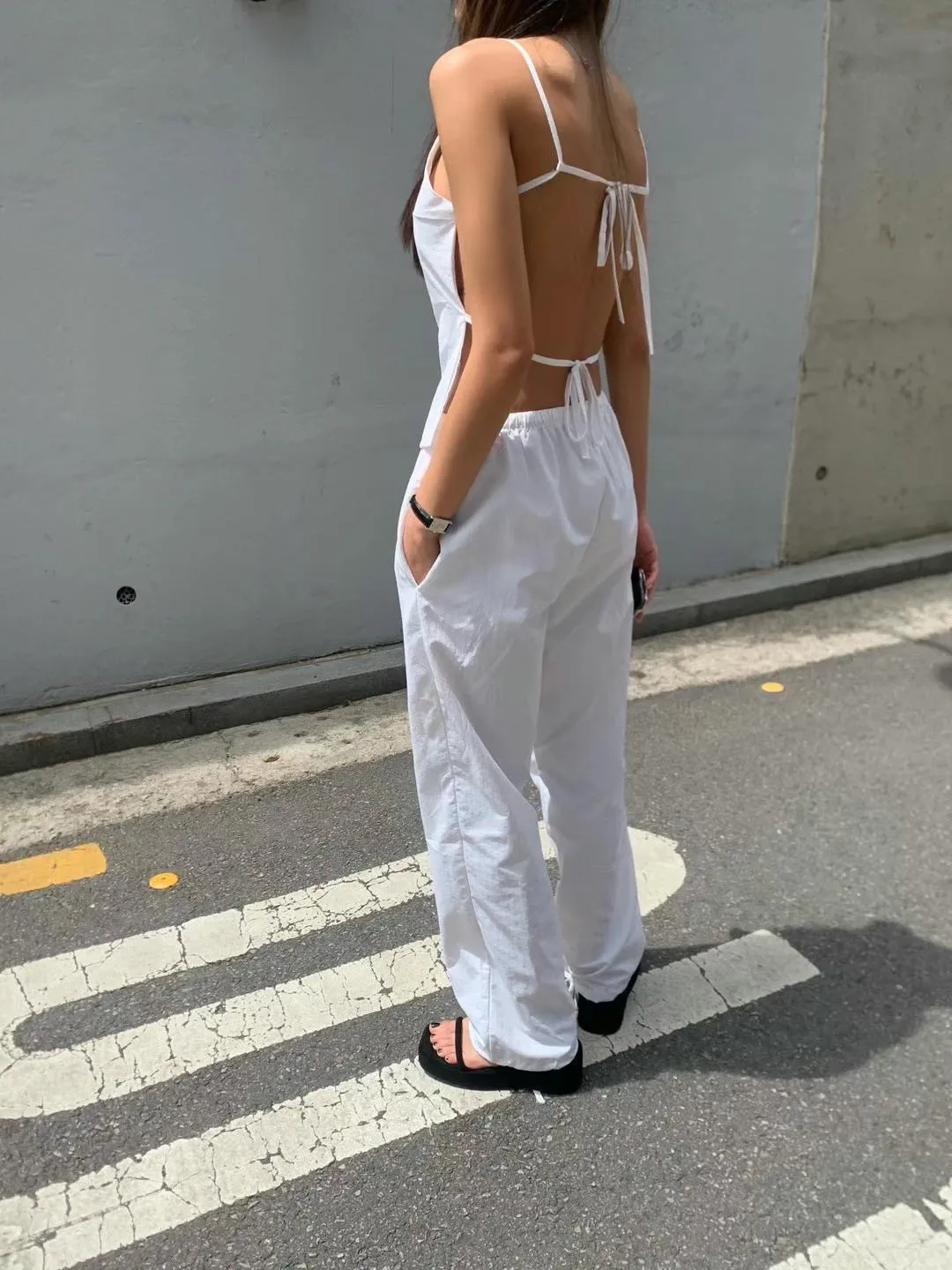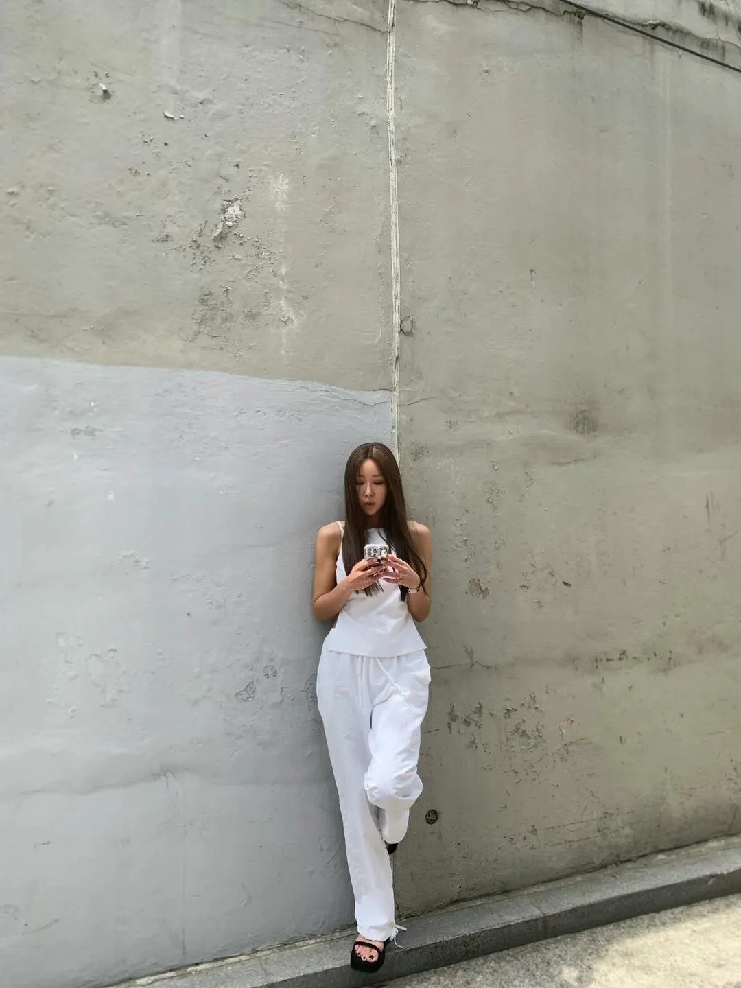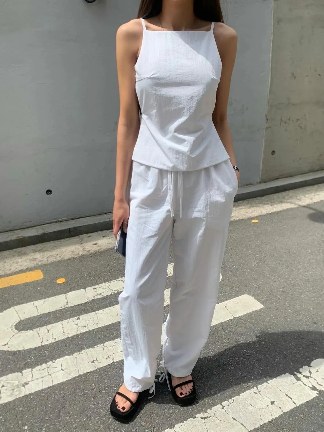 GK07 綁帶風衣滑料鬆緊長褲 4色