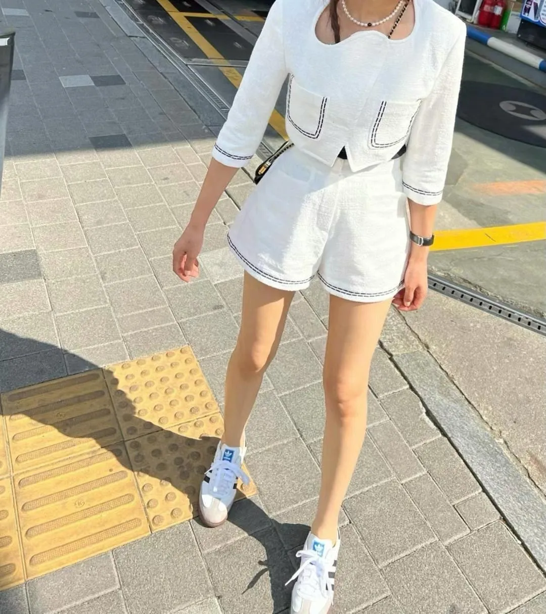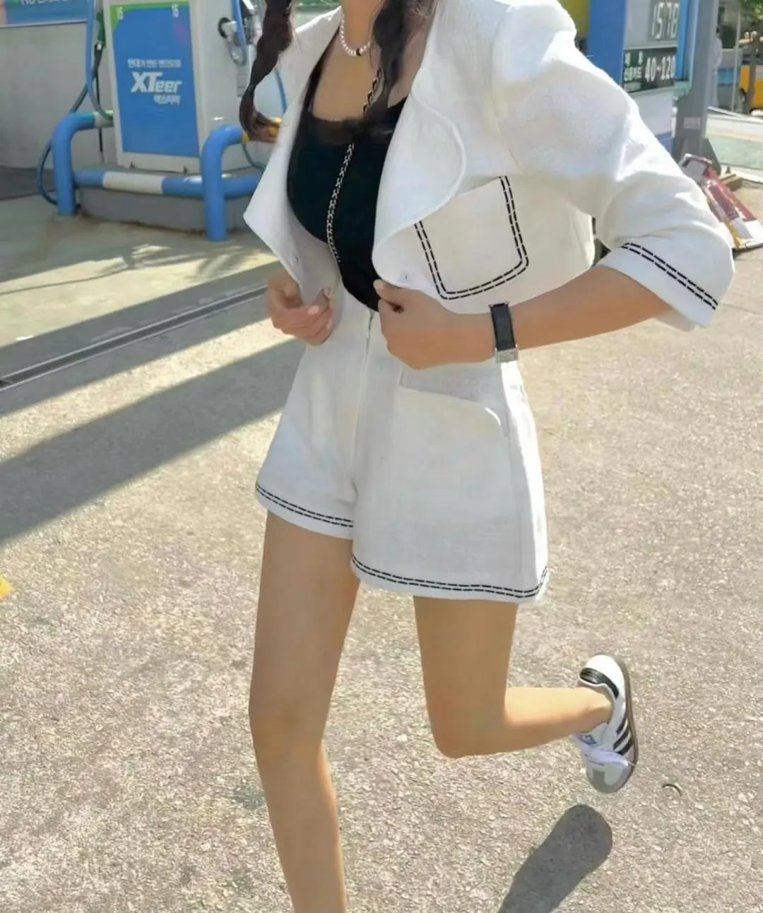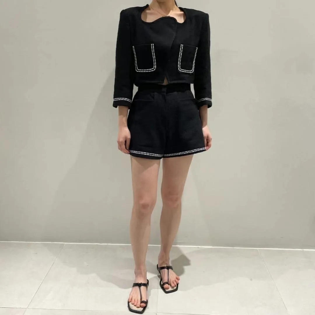 HC09 棉麻香香撞色明線短西褲 2色 SM