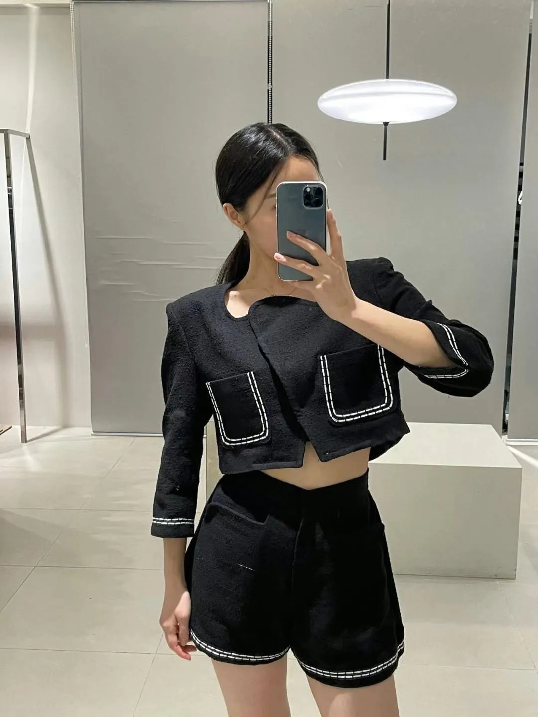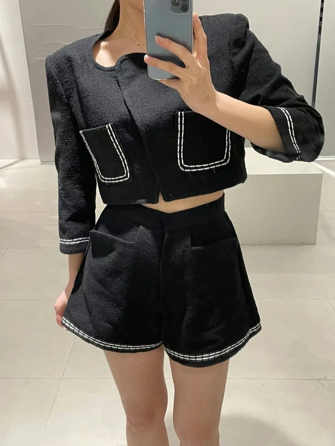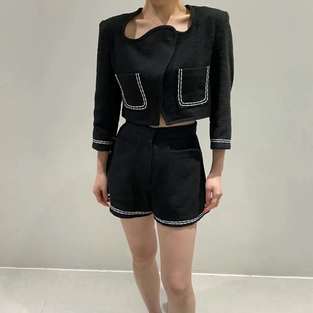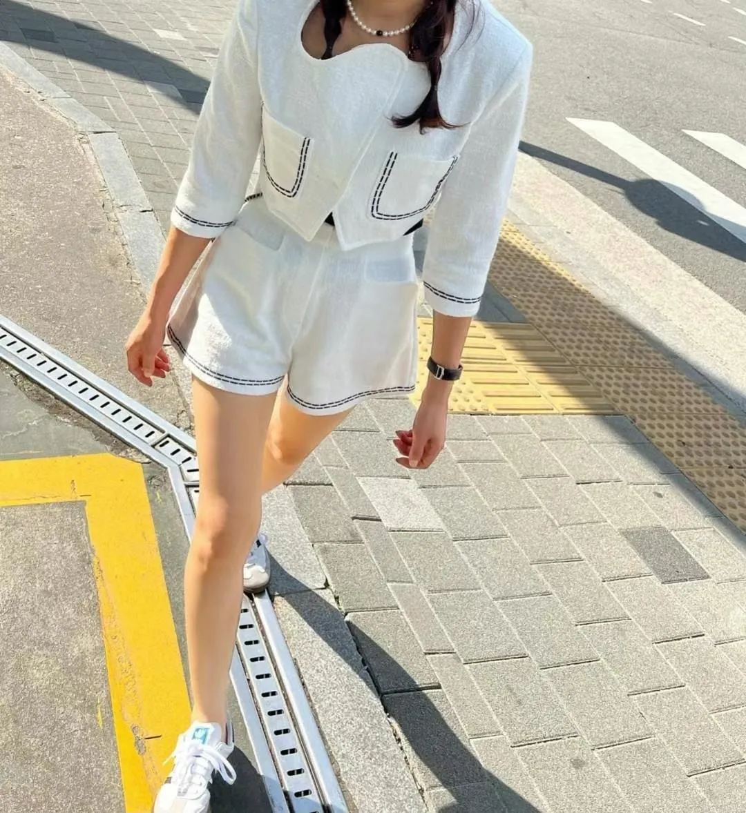 HC09 棉麻香香撞色明線短西褲 2色 SM