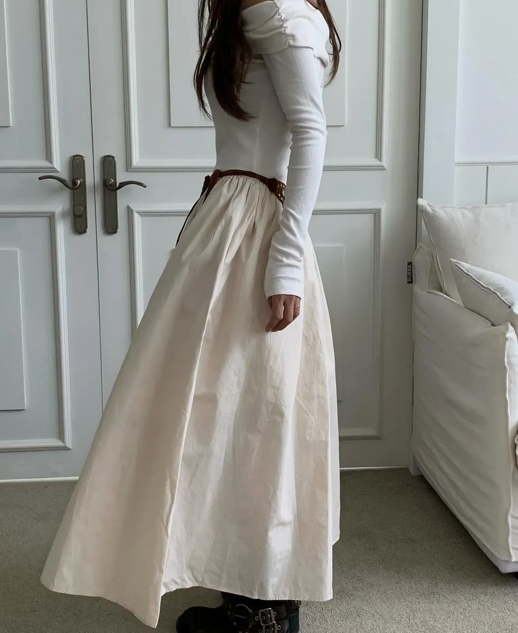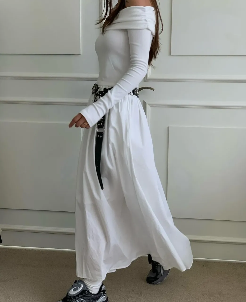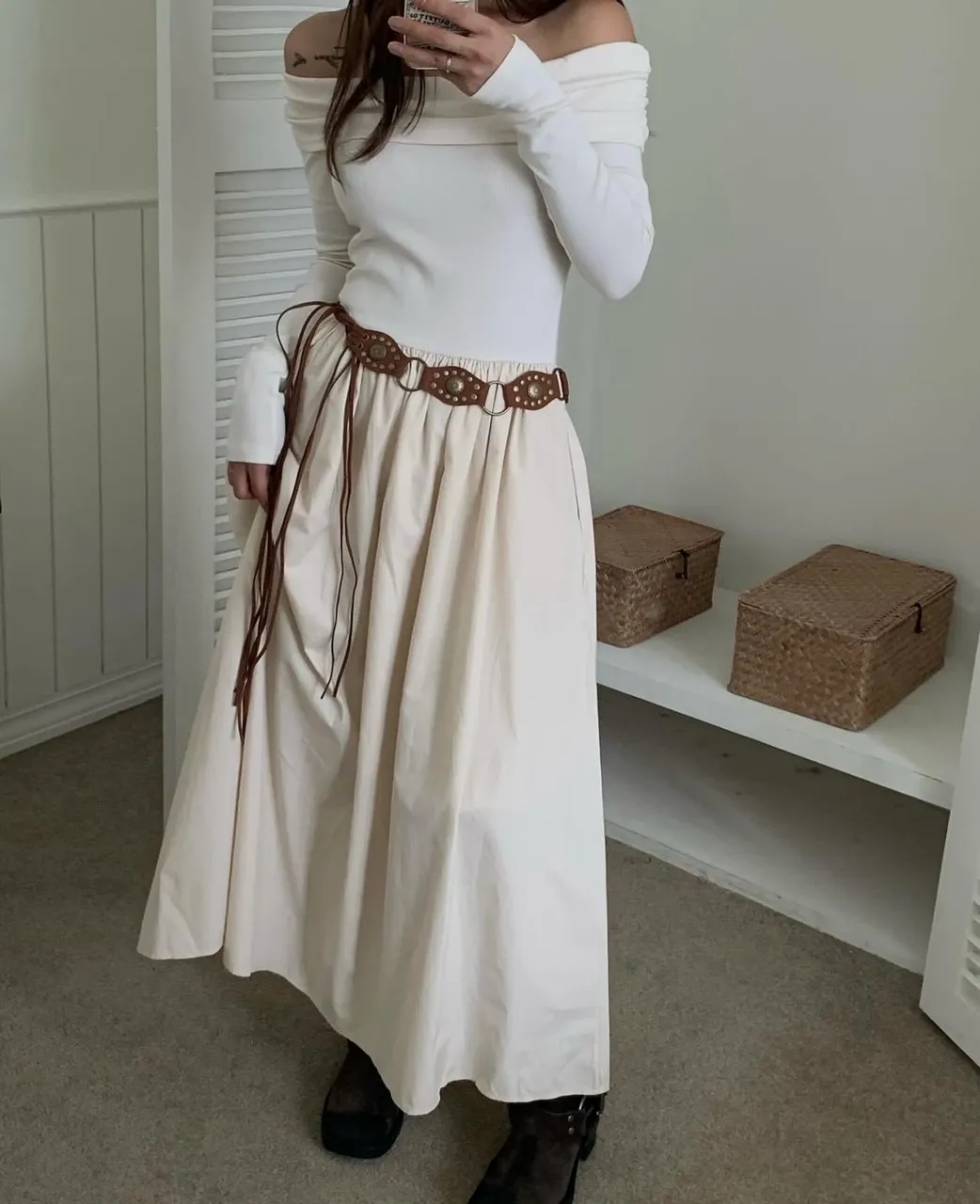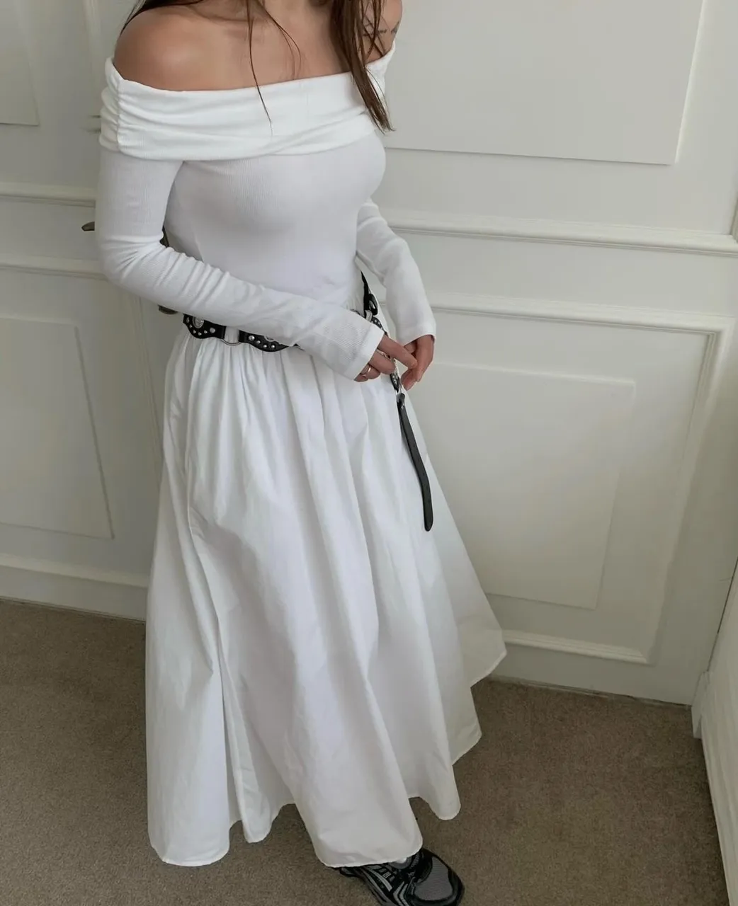 HI005 堆堆一字領拚荷葉連身長洋裝 3色