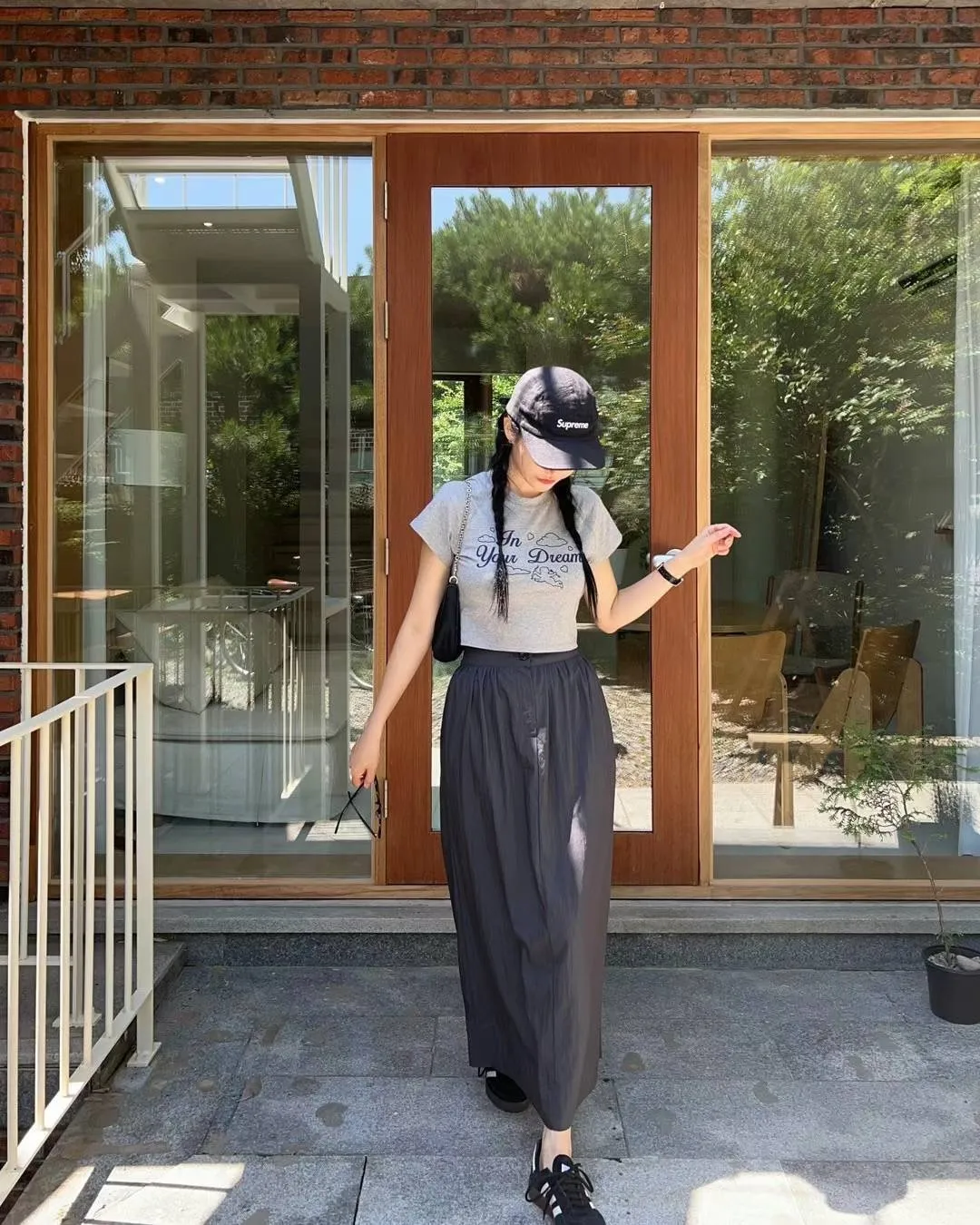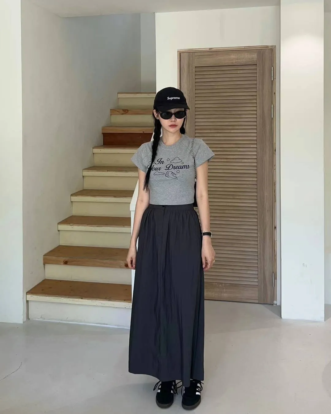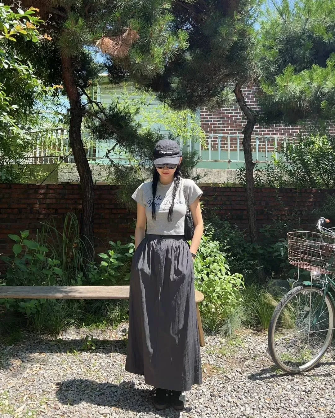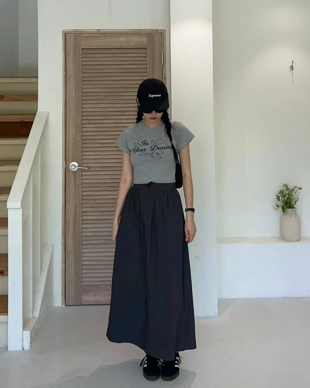 HR05 打摺後鬆緊滑料量感半身長裙 2色