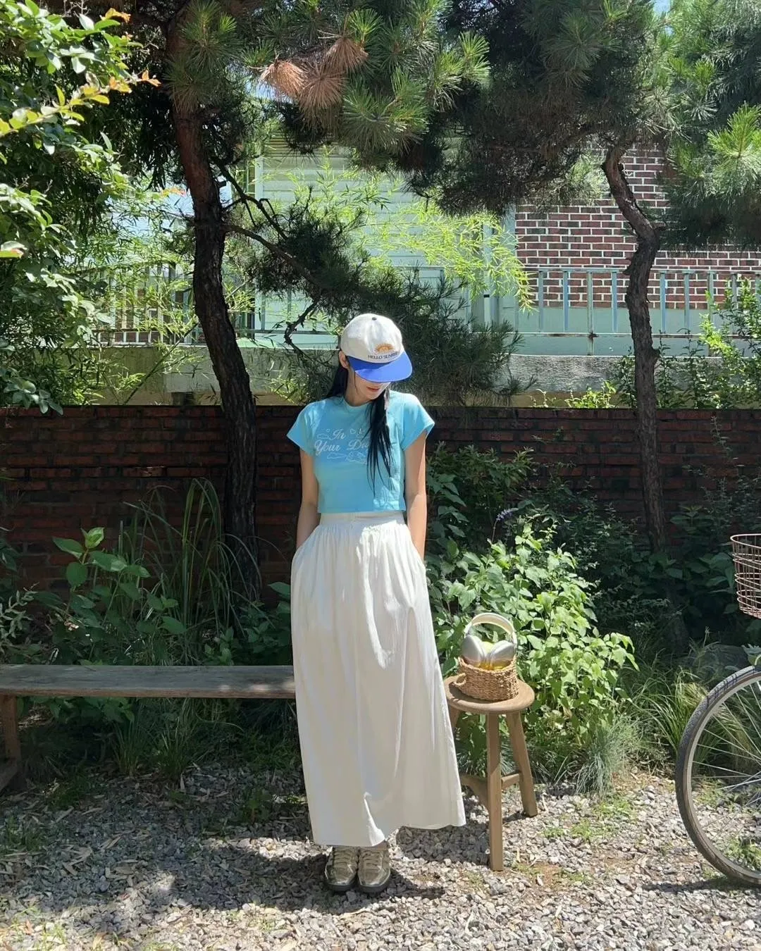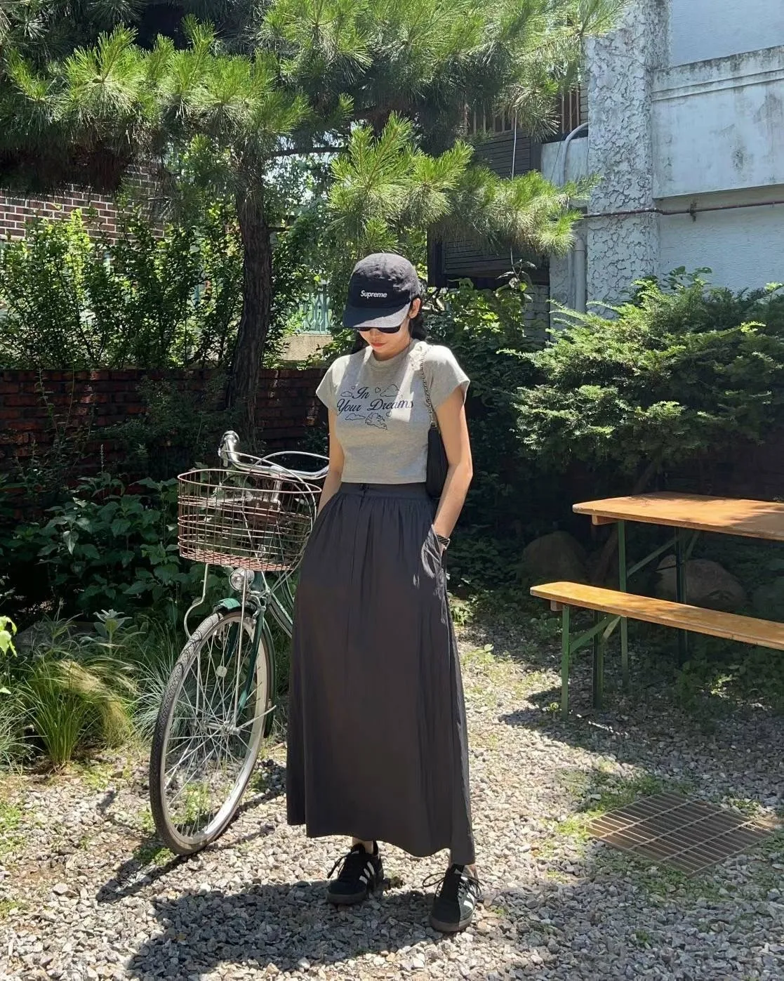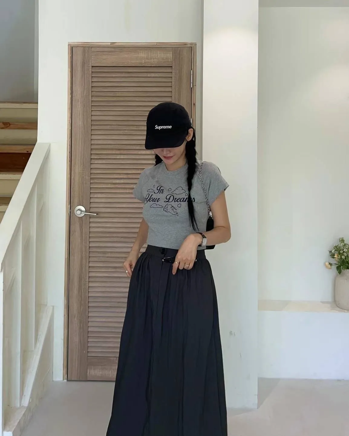 HR05 打摺後鬆緊滑料量感半身長裙 2色
